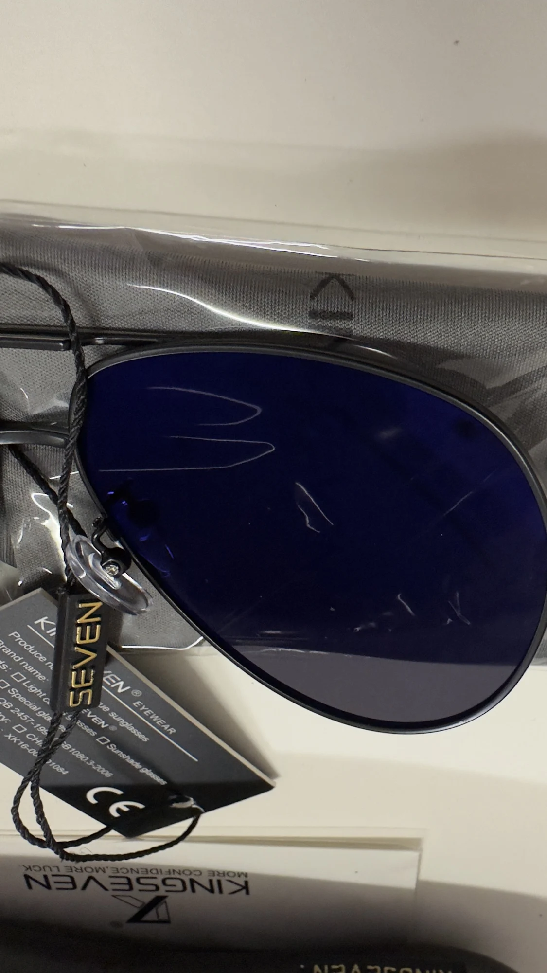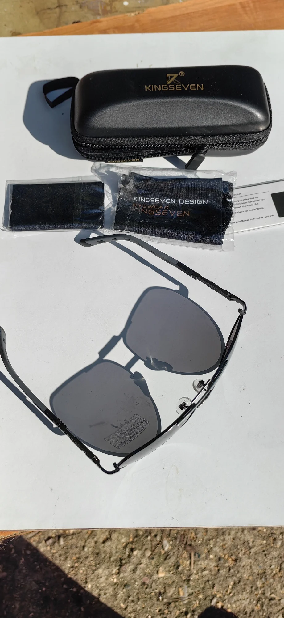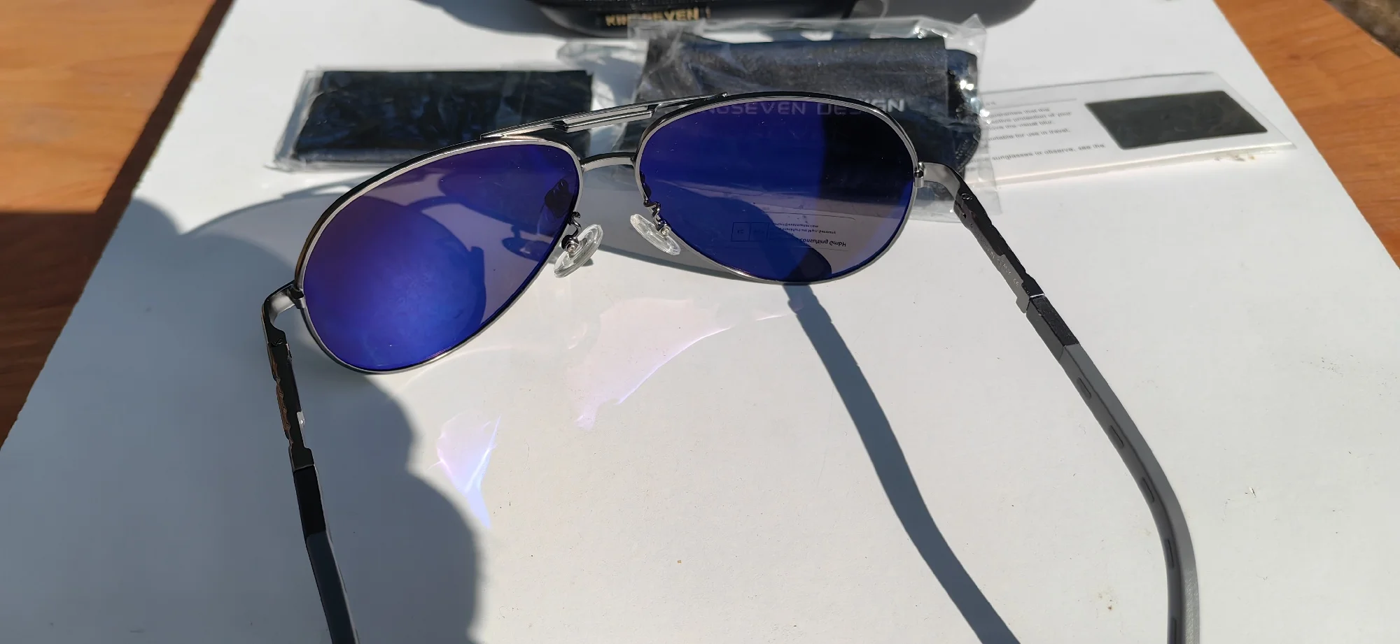 Я ожидал хорошее качество, но от очков просто в восторге. До них носил 7 лет настоящие Police, за 300$. Просто решил проверить на качество Kingseven. Свои 12$ они точно стоят. Куплю ещё пару разных, чтобы всегда были под рукой. Главное, поляризацию имеют. Сидят стильно. Чехлы в комплекте. Ну даже если я их год проношу, еще 2 штук это еще 2 года. Блин, реально в наших ТЦ такие за 50-100$ продают. Скорость доставки поражает: дней 10 и прямо в офис занес курьер посылку! Сегодня моим Police устрою ритуальное погребение. Поцарапанное стекло протру в последний раз..