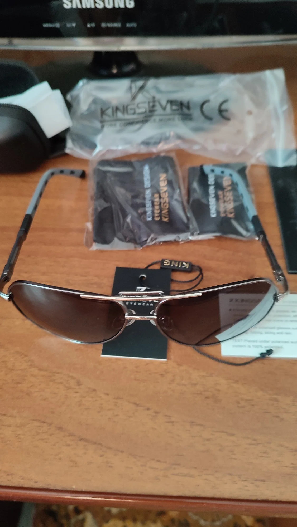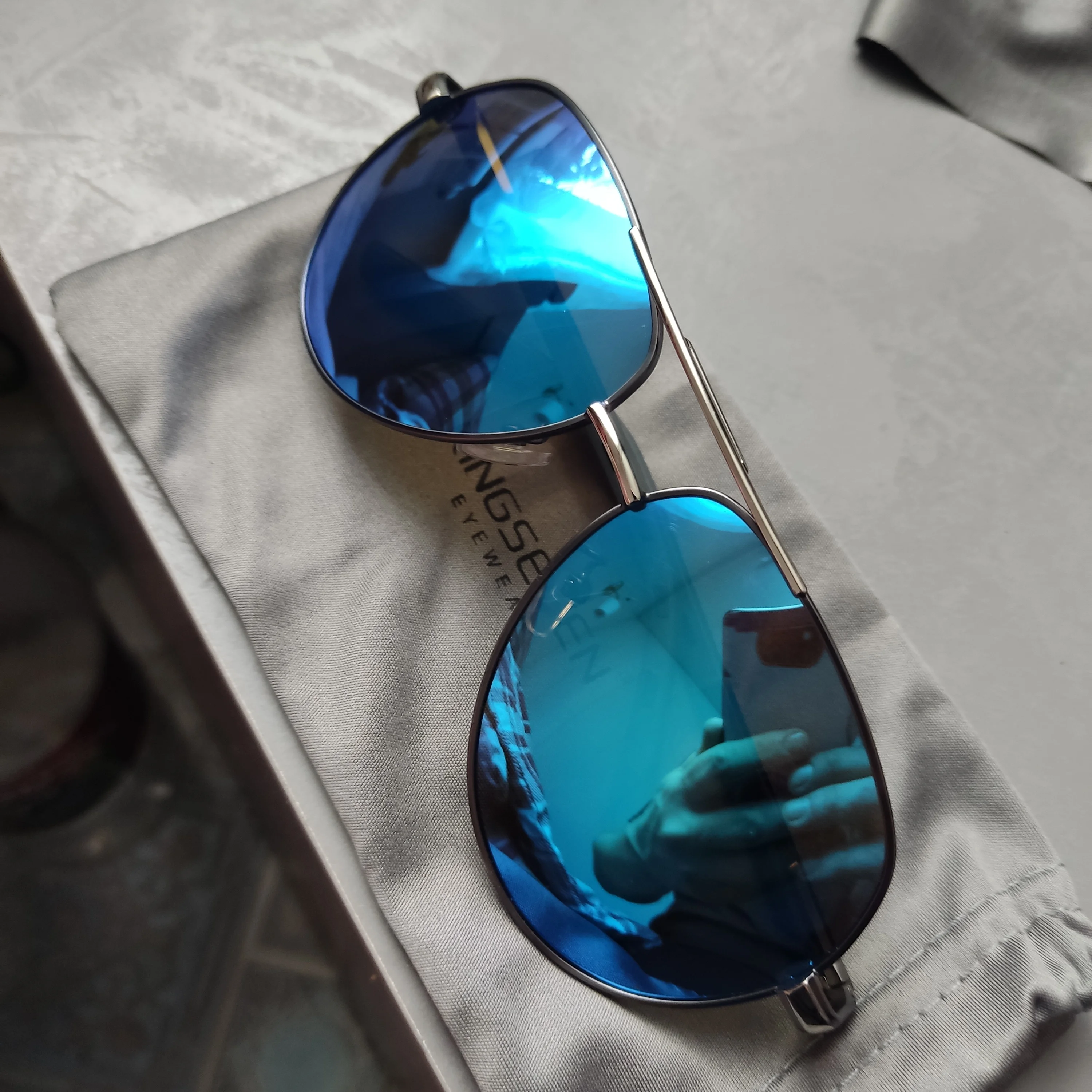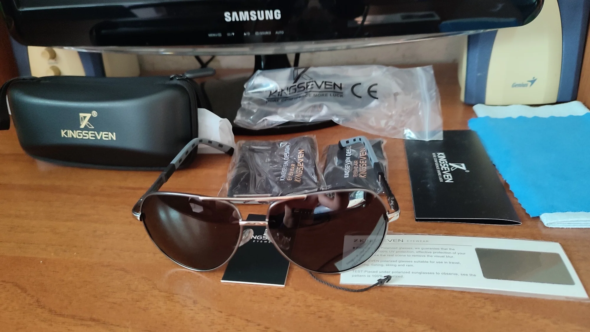 Я ожидал хорошее качество, но от очков просто в восторге. До них носил 7 лет настоящие Police, за 300$. Просто решил проверить на качество Kingseven. Свои 12$ они точно стоят. Куплю ещё пару разных, чтобы всегда были под рукой. Главное, поляризацию имеют. Сидят стильно. Чехлы в комплекте. Ну даже если я их год проношу, еще 2 штук это еще 2 года. Блин, реально в наших ТЦ такие за 50-100$ продают. Скорость доставки поражает: дней 10 и прямо в офис занес курьер посылку! Сегодня моим Police устрою ритуальное погребение. Поцарапанное стекло протру в последний раз..