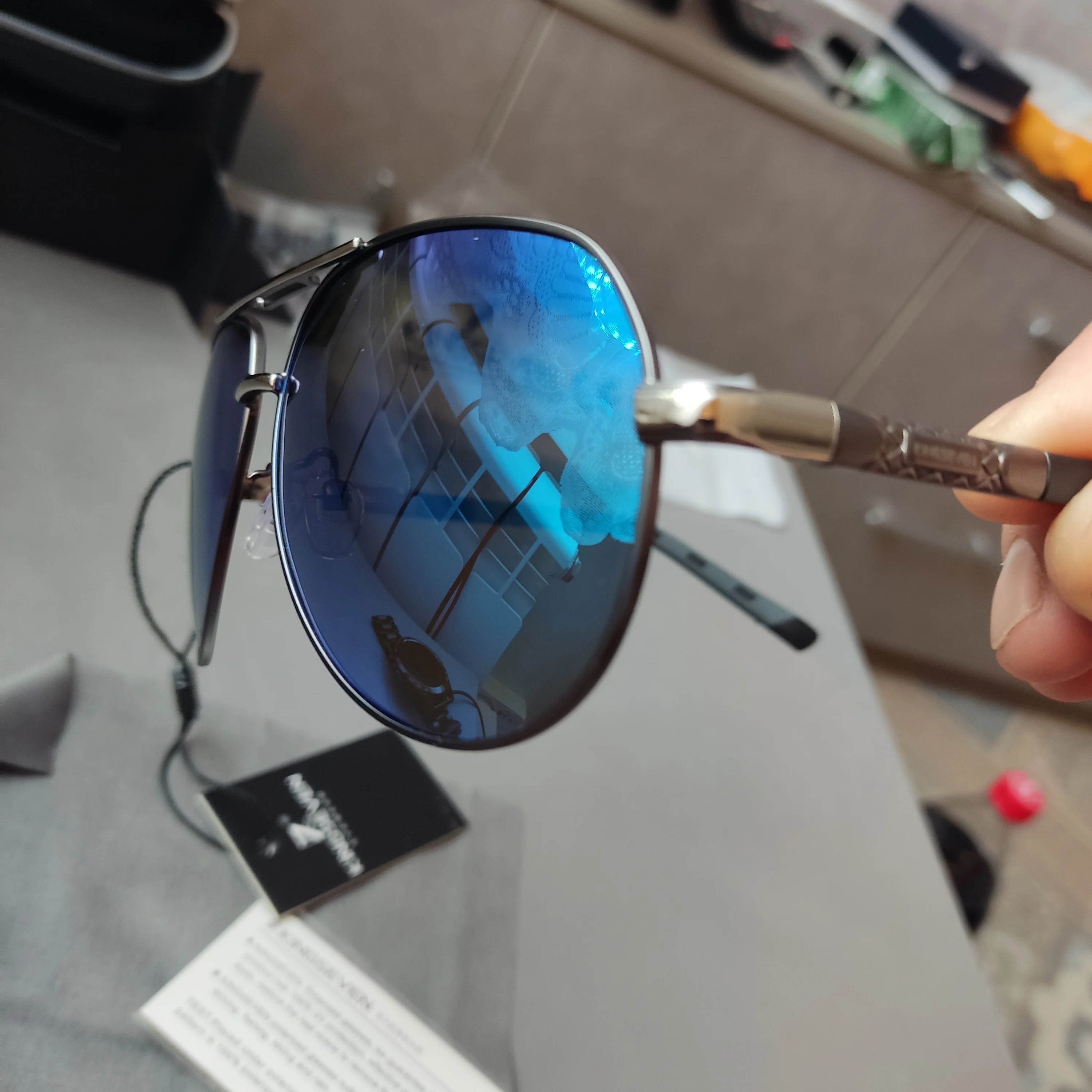 Хорошие очки. Закос под Авивторы. Богатая комплектация: очечник, тряпичный чехол, салфетка, тест на поляризацию. Имеется заметная поляризация. По мне, достаточно удобные, 6 часов ехал за рулём, не устал от них. Но есть большой, даже огромный минус - с внутренней стороны имеется зеркальное напыление, в случае боковой засветки сильно бликуют. Линзы пластик, похож на поликарбонат. Если не допускать бокового засвета, то нормально.igor k. 13 сентября 2023