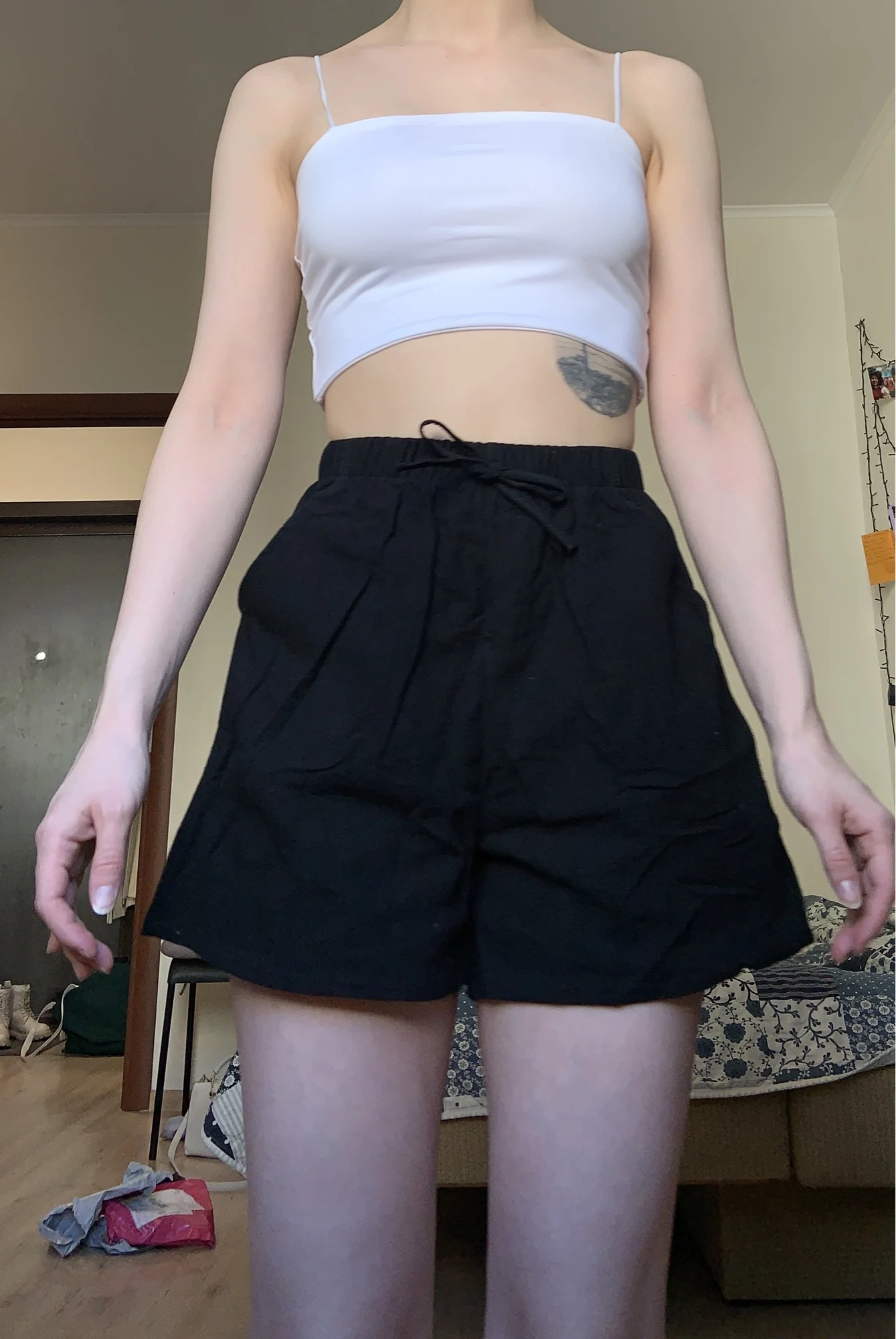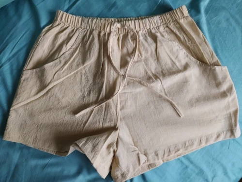 Получила шорты. Продавец их позиционирует как цвет хаки, я бы сказала бежевые. На свои ОТ73 ОБ95 взяла М, подошли как раз. Сами шорты очень тоненькие, легкие, с карманами, на резинке, спереди шнурочек ничего не утягивает, посто пришит.