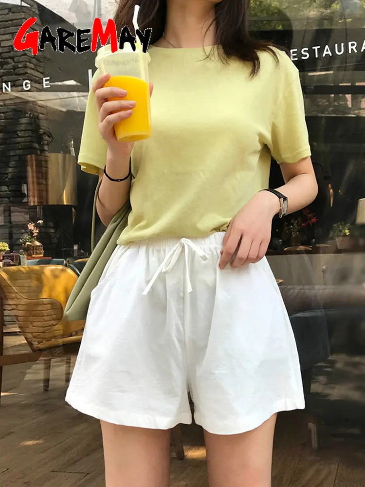 GareMay женские льняные хлопок шорты бежевые