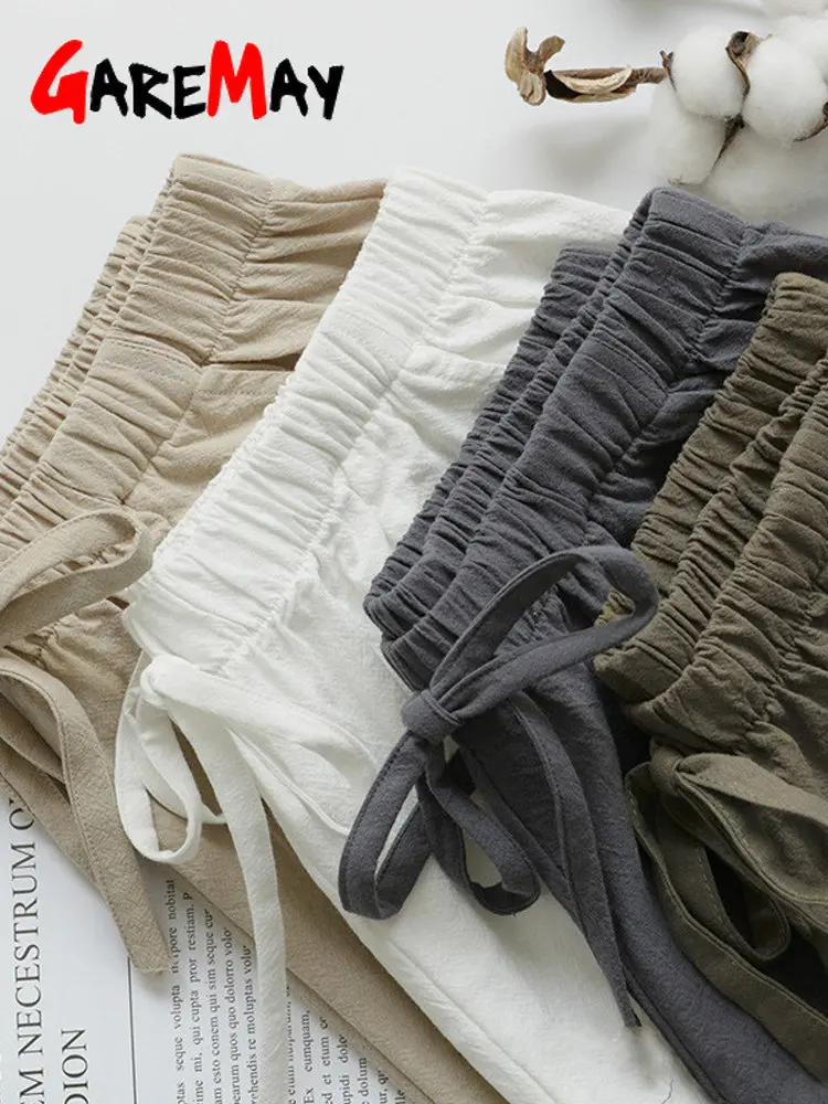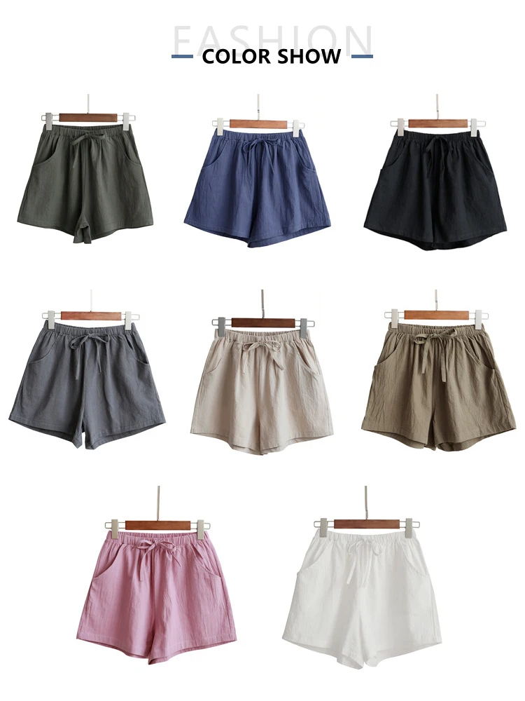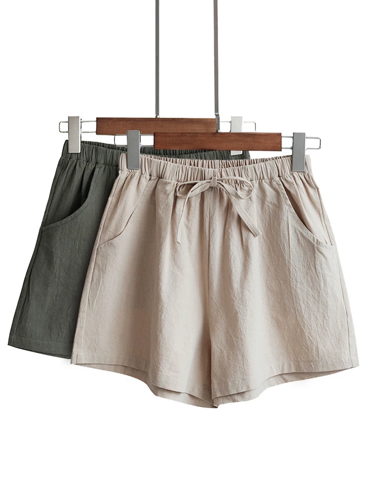 2023 New Hot Summer Casual Cotton Linen Shorts Women Home High Waist Shorts...