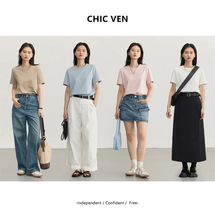 CHIC VEN Women's Tees Basic O Neck Short Sleeve Pullover T-shirt for Woman...