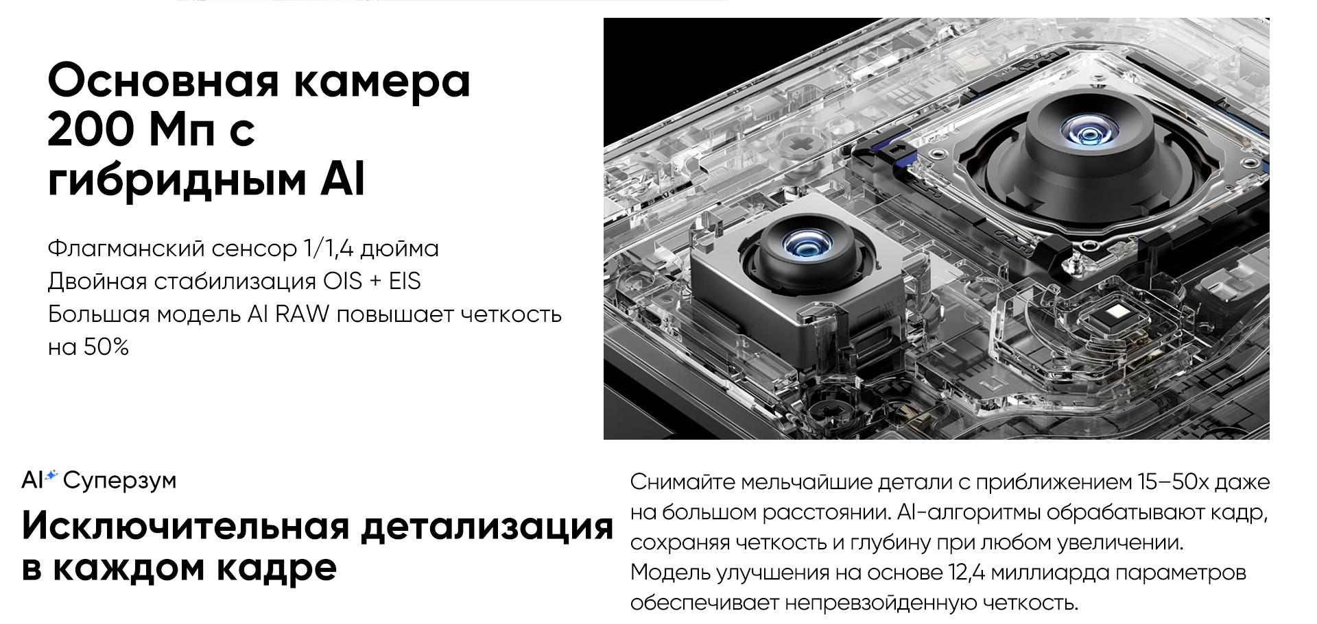 1) Сверхчеткая система аль-камеры на расстоянии 200 МП