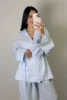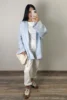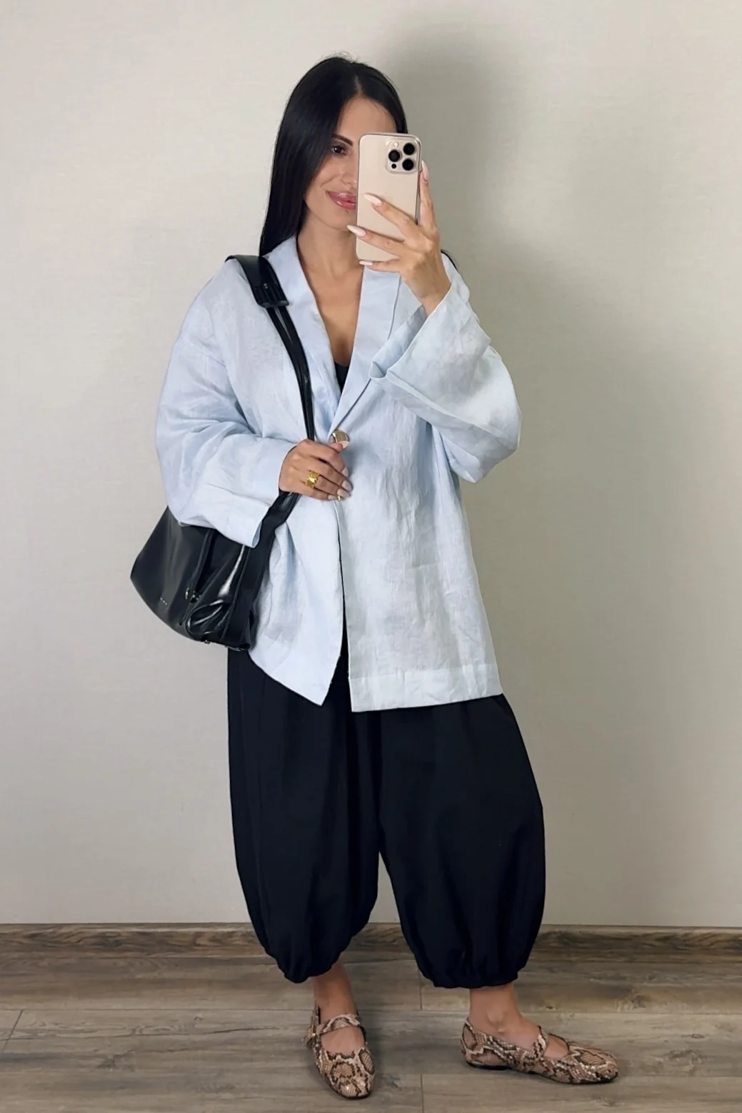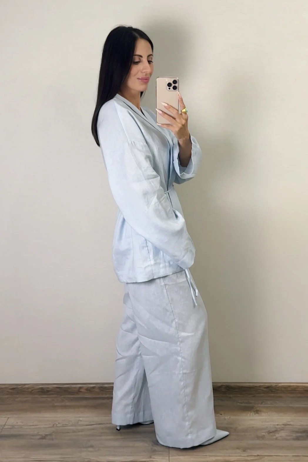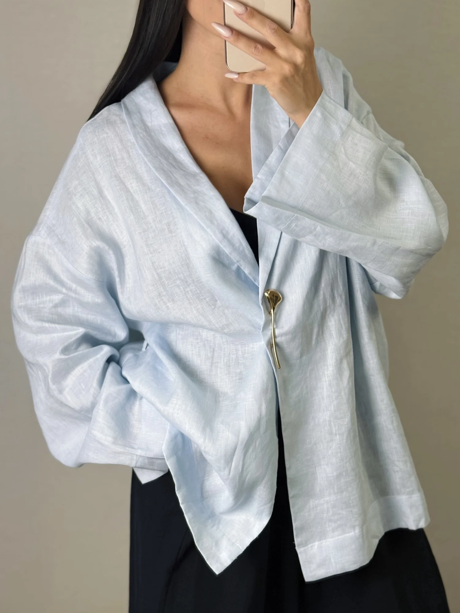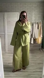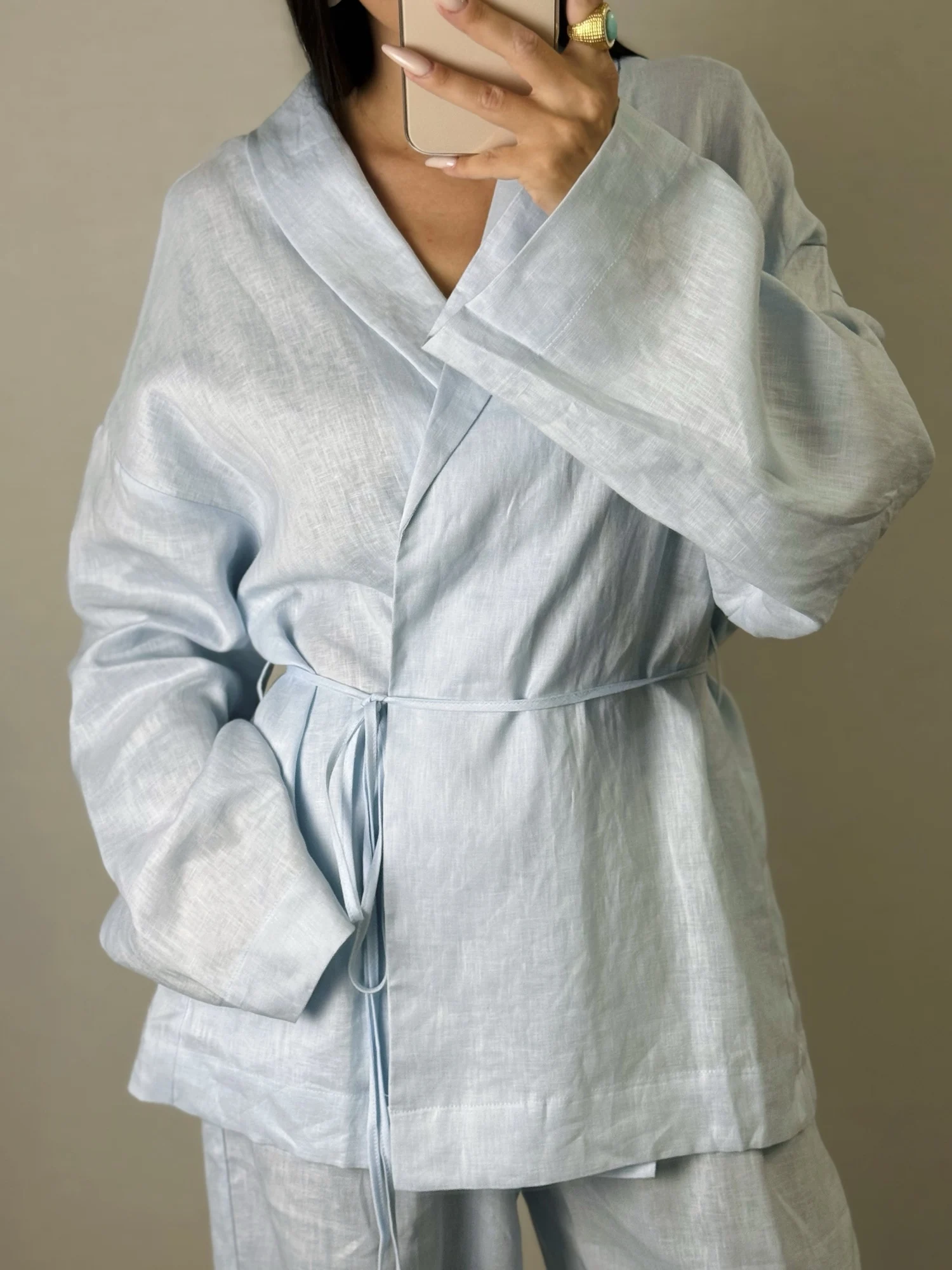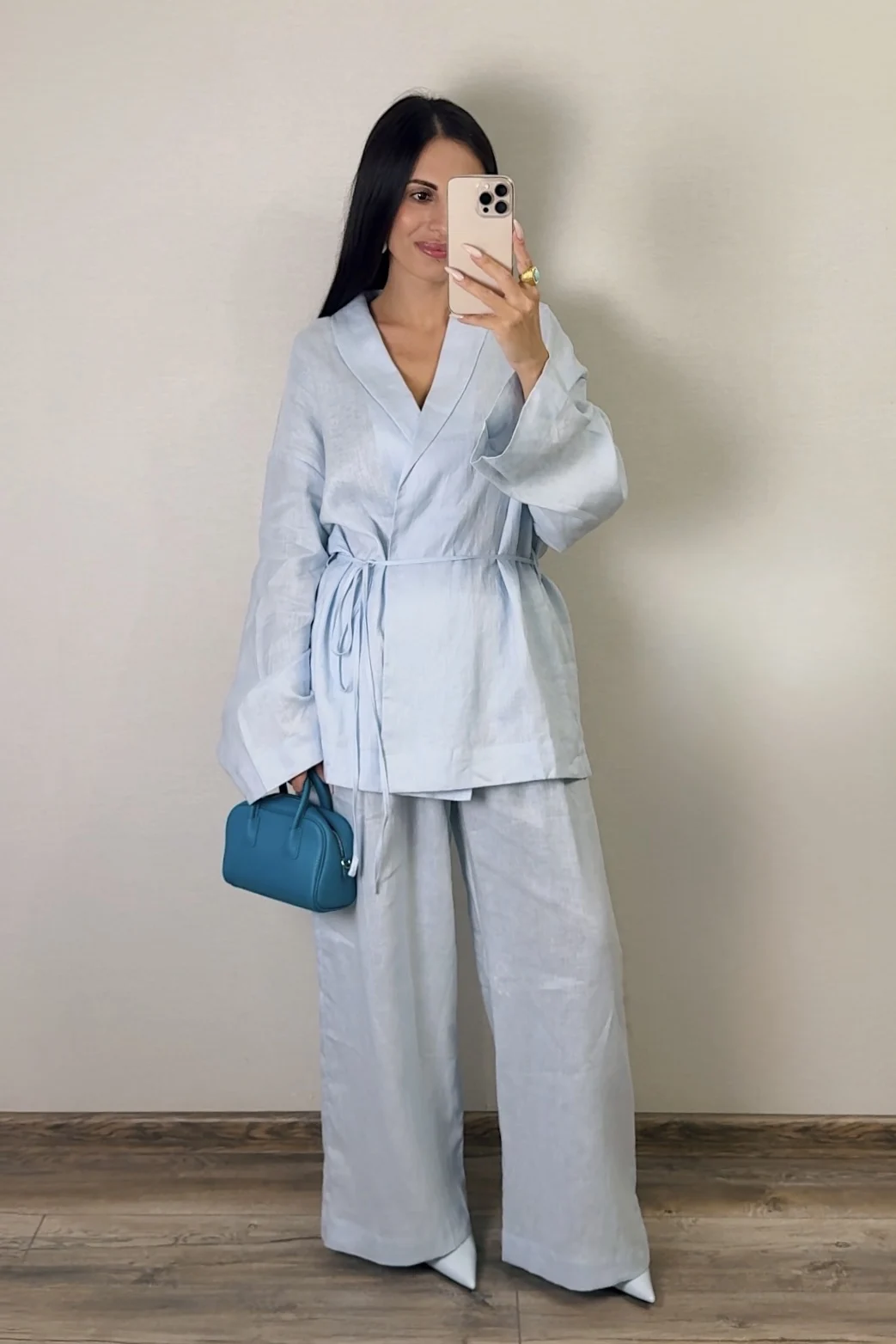 Прекрасный костюм из 100% льна. В этот раз я перед отпариванием попшикала водой на ткань, так материал стал чуть более податлив для глажки. Но в процессе съемки все равно помялся😅ну я по крайней мере, пыталась. В любом случае, нужно свыкнуться с тем, что лен мнется, а значит нужно получать удовольствие от того, что он мятый и кто знает, тот не осудит) Давайте по порядку: материал мягкий, не колкий, к телу комфортный. С льняными вещами у меня случилась такая же любовь, как и с шерстью: изначально я не очень понимала в чем кайф. Но в итоге, все сошлось: в нем супер приятно находиться и не нужно переживать за то, что ты ходишь в мятой одежде. На рост 158, параметры 92-66-90 размер М сел идеально, хотя изначально все вещи в этом магазине идут на более высокий рост. Это очень похожий костюм на воише, но не за 24000. Там модель брюк еще короче, чем тут. Мне же штаны подошли отлично, даже с каблуками. Имейте в виду, что они должны быть укороченными и на более высокий рост. Но я все равно очень довольна. У рубашки есть две петли для тканевого ремешка , который идет с костюмом. Никаких пуговиц нет. Рубашка мне очень длинная, особенно в рукавах, но я люблю оверсайз , потому для меня это только плюс. Брюки с эластичной резинкой, есть боковые карманы. Ну что ж , никто из нас не отличается уникальностью снежинки, потому все скупили эти знаменитые броши, а значит будем все в них😁 ну а коль она у меня есть, то как и в оригинальном костюме российского бренда, тоже прицепила на кимоно. Девочки, берите , если хотите получить шикарный костюм за сущие копейки. (По сравнению с нашими брендами). Мне комплект очень понравился и я в восторге. Самое главное, что он подходит ко всем последним моделям из магазина, даже где в составе 40% лен и 60% хлопок