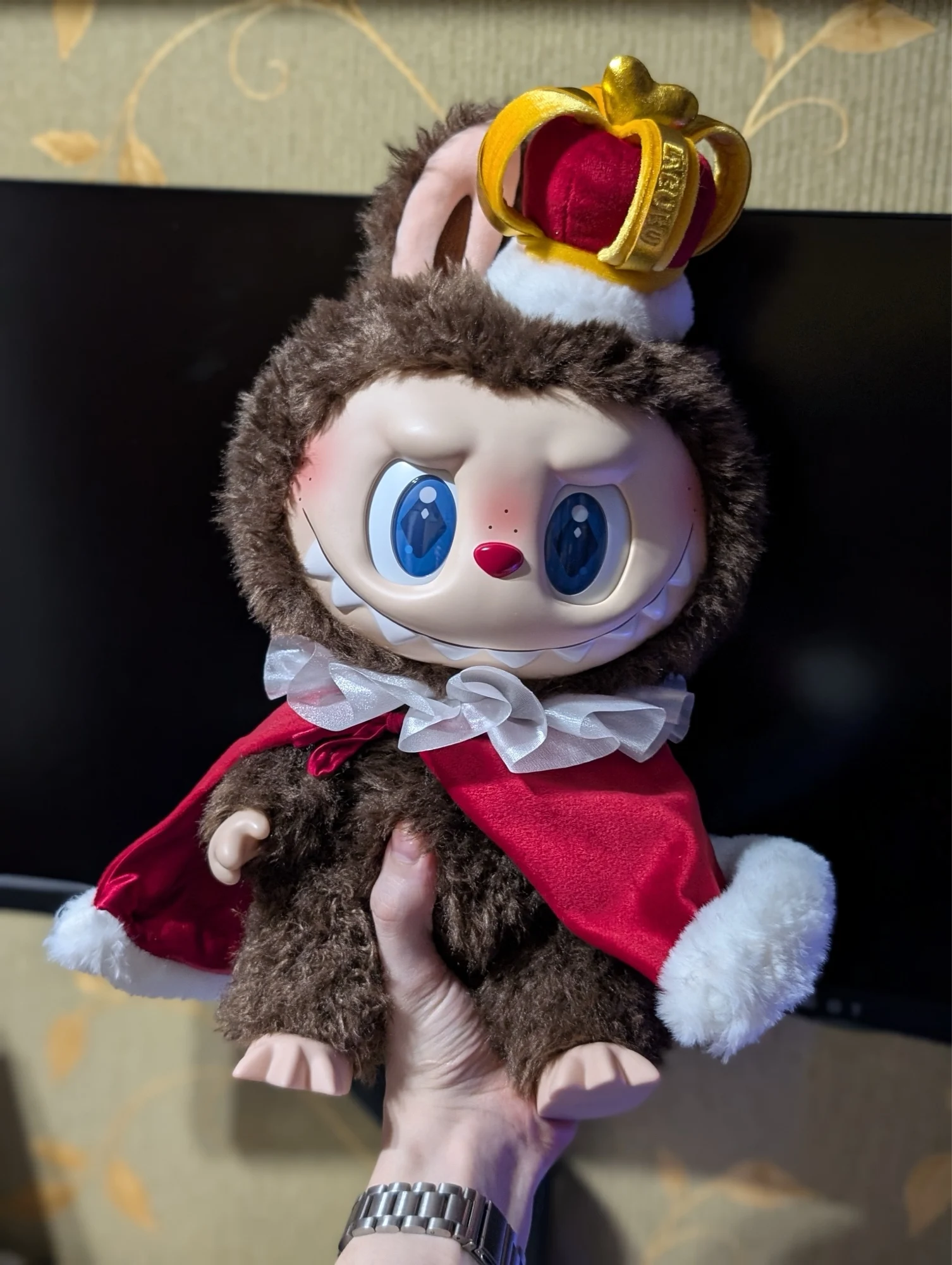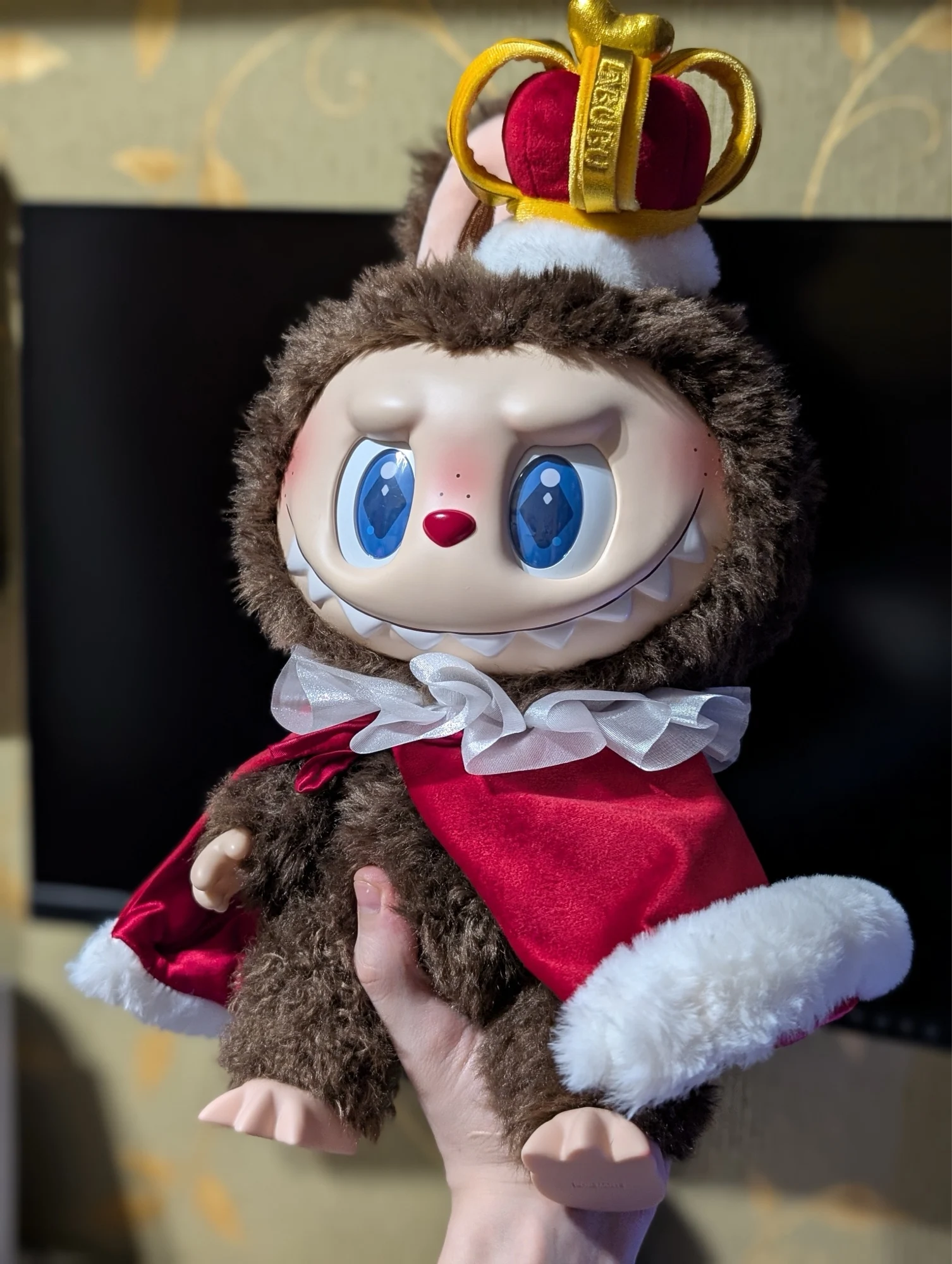 лабубу прекрасен. двигаются глаза, лапки, снимается вся одежда кроме короны. есть бархатистая коробочка для колец. жалко только что он сшит не из единой ткани, шерсть вставлена прядками как на куклахшарлотта T. 9 июля 2025