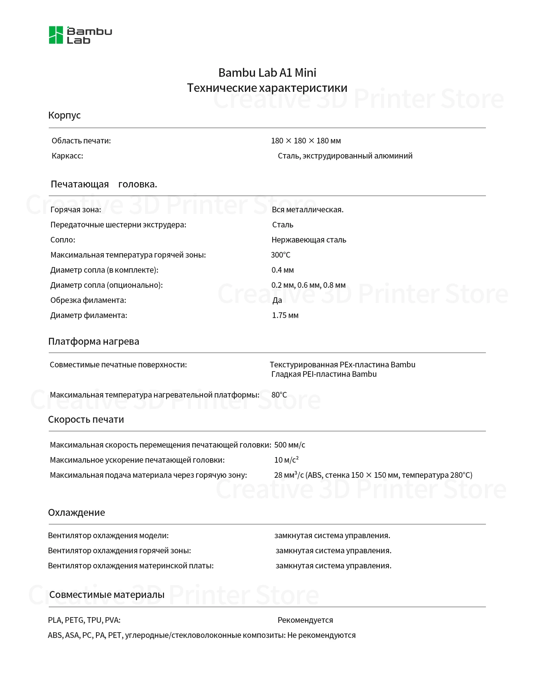 - Скорость печати:500 mm/s