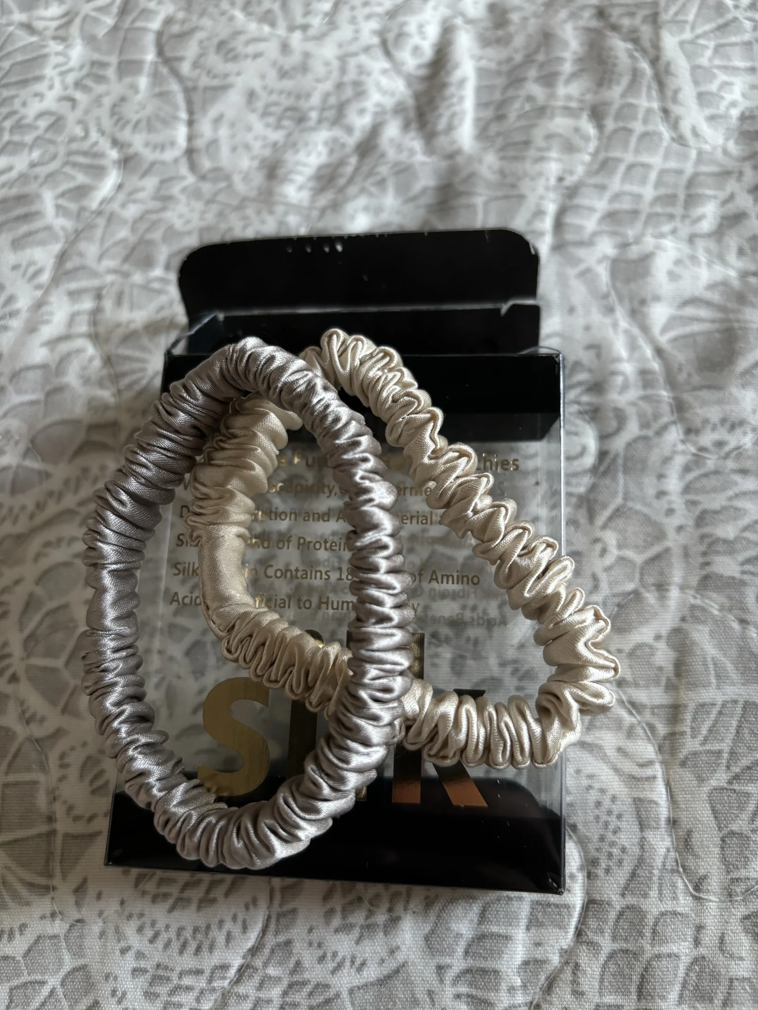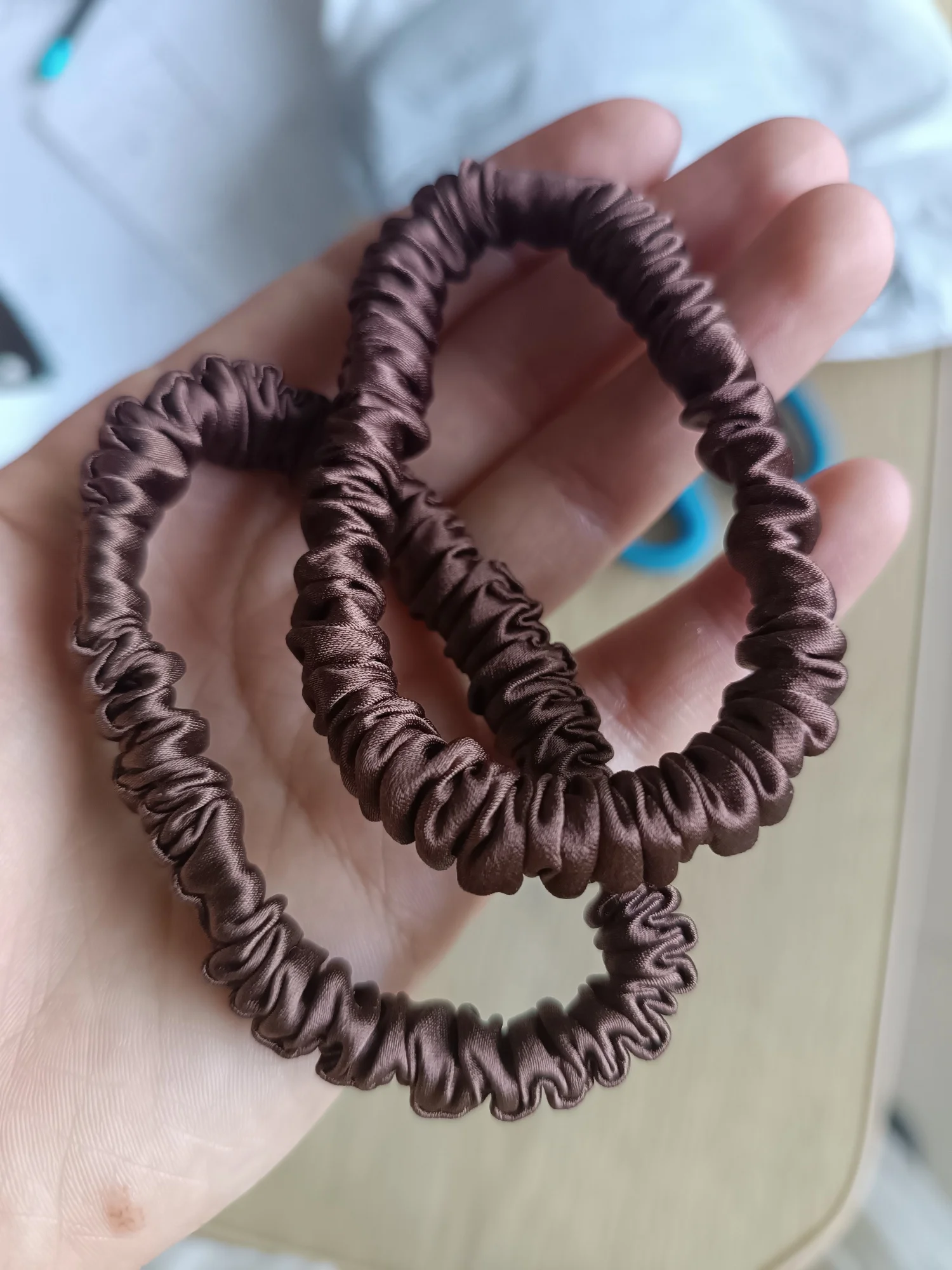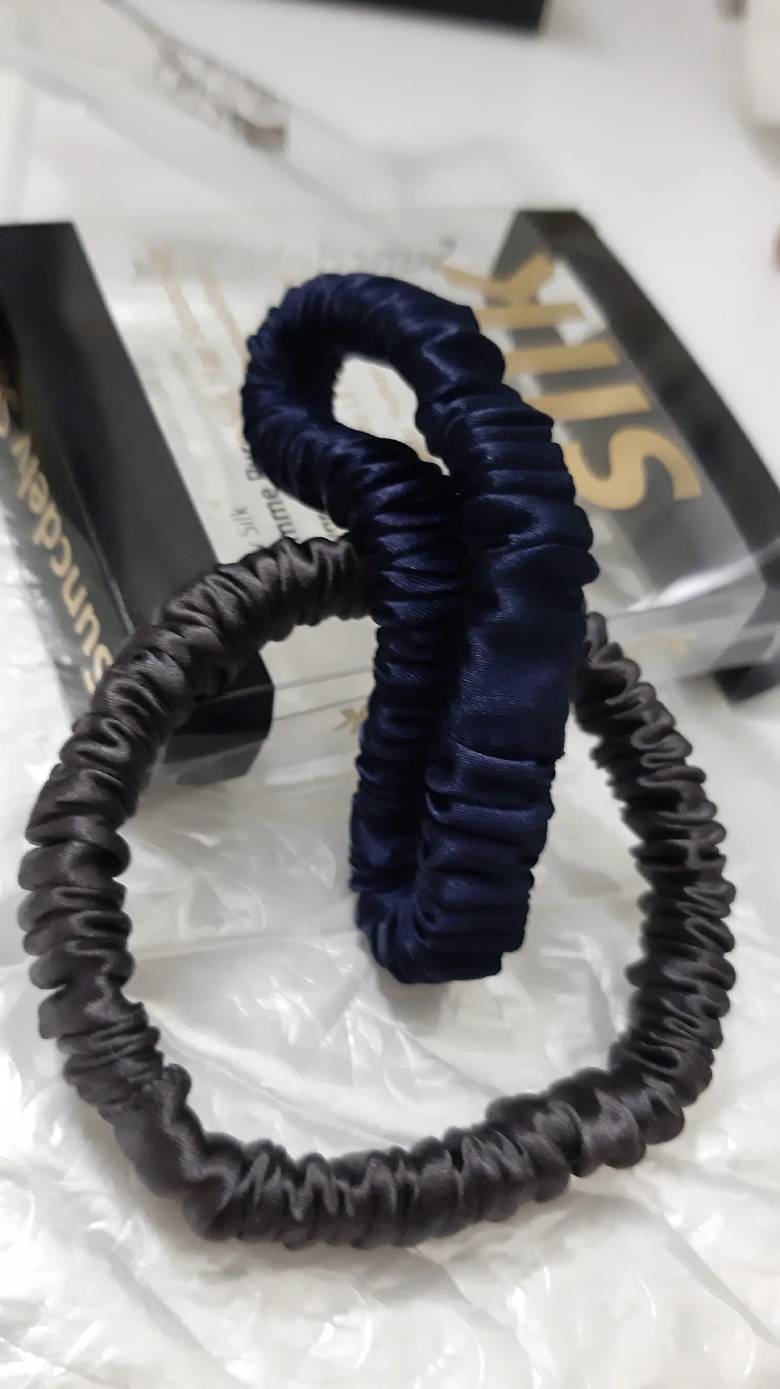 Резинки классные, такие как на фото, красивые и удобные. На не слишком густые, тонкие волосы в три оборота держат отлично и смотрятся хорошо, не соскальзывают.. Приятно держать их в руках, ощущение натурального шелка. Хочу заказать ещё в других цветах. И хотелось бы больше разнообразных наборов из разных цветов. Именно эти узкие резинки очень удобны.
