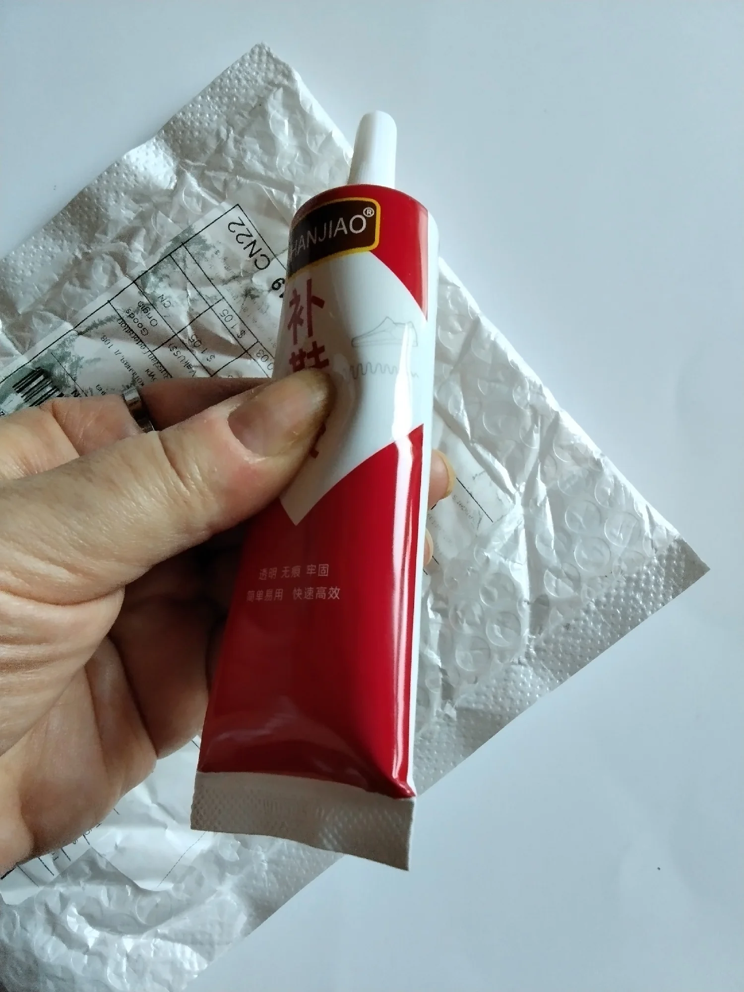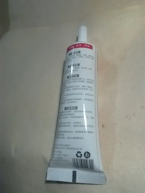 Доставка 29 дней с момента заказа, до получения на почте(по отслеживанию 22 дня). Упаковано в конверт с внутренней пупыркой. Тюбик обмотан рулоном пупырки. Надписи на китайском. Булькает, по звуку консистенция жидкой сметаны. Вес 34 грамма. Всё целое, без протечек.