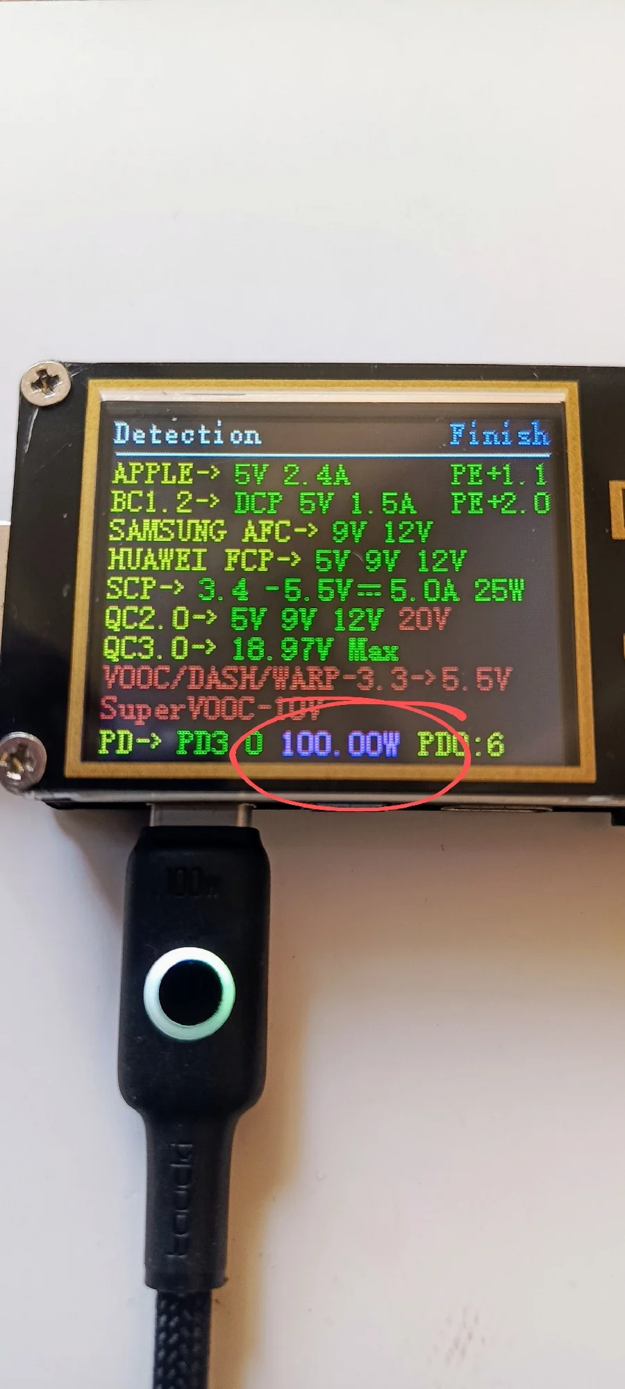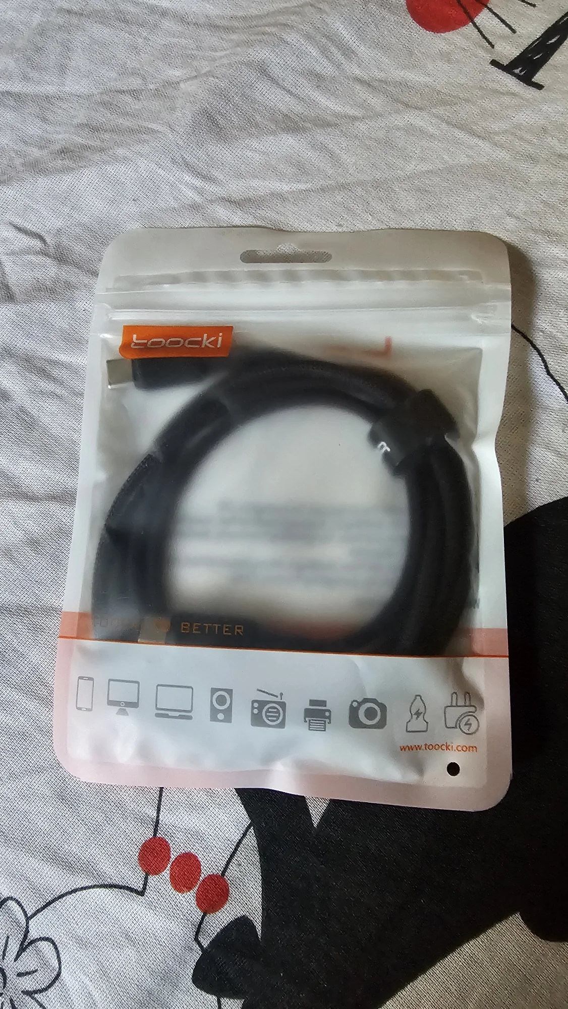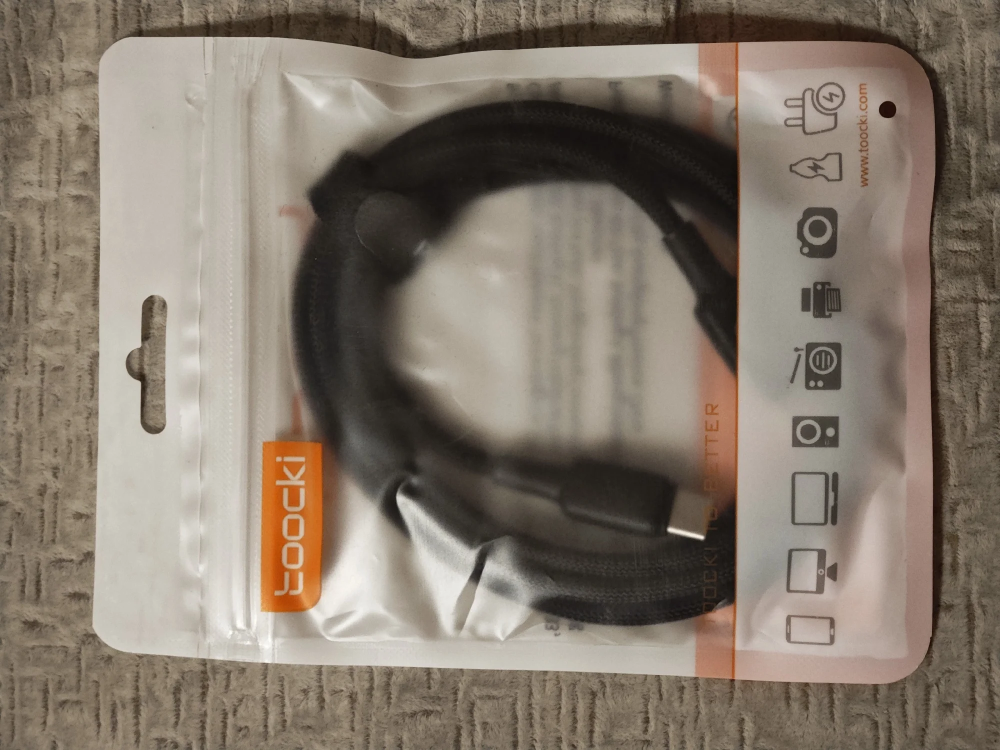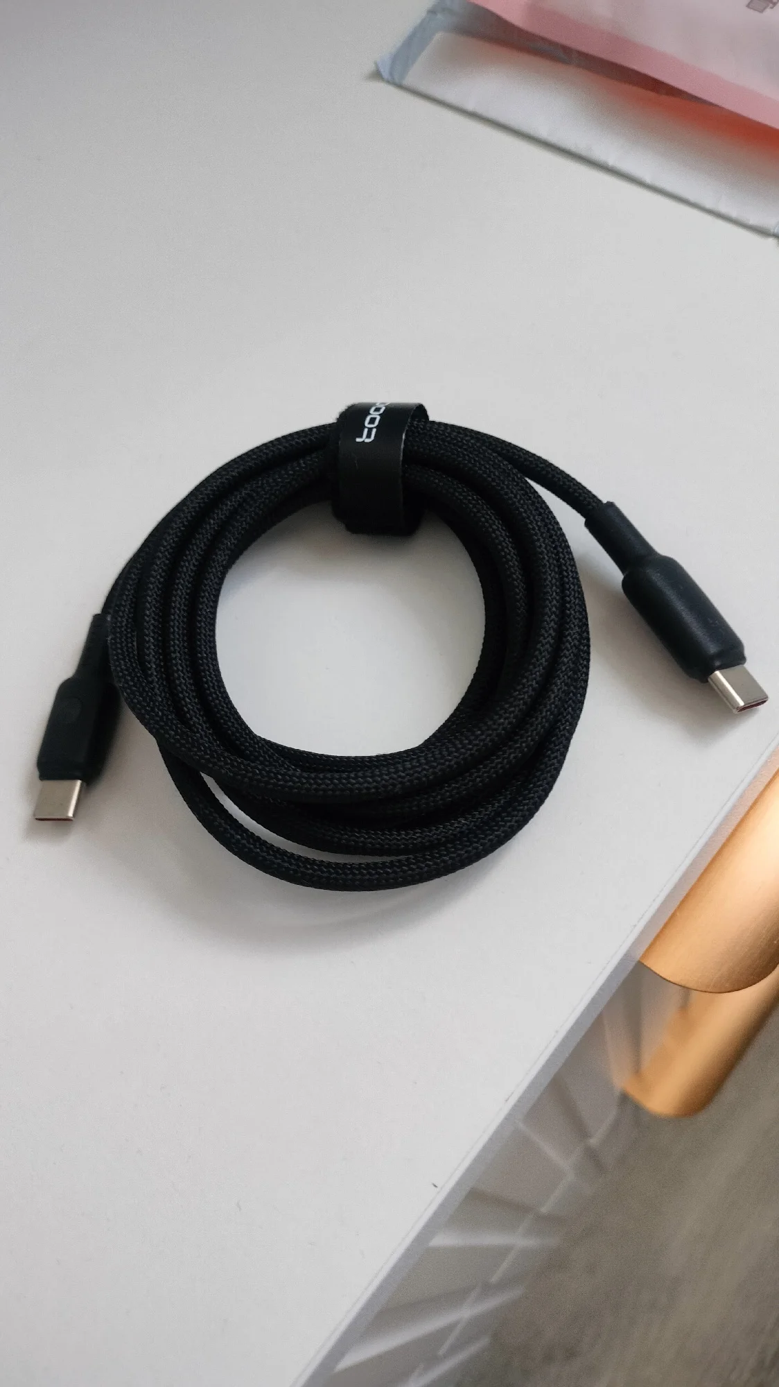 Достался мне за 197 рублей. За эти деньги - это просто подарок. Как всегда отличный провод от toocki (я про себя называю "ту́чки") Заказываю далеко не первый раз и никогда не было накладок с этой фирмой. 100W поддерживает. Е-маркер наличиствует. Тканевая оплётка и прикольный многоцветный мерцающий индикатор в виде кольца. Длина 1,2 метра. Короче красота. Был бы еще силикон... )))