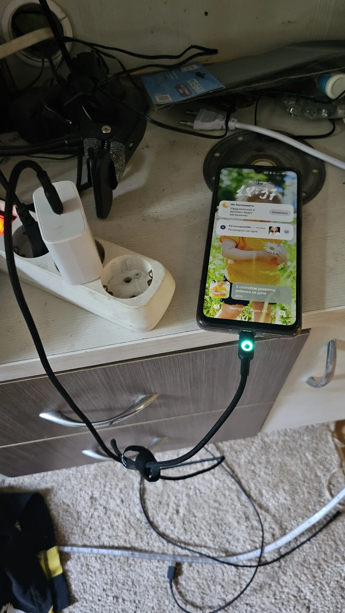 отличный кабель для зарядки. на одном конце светодиод к разноцветным горит