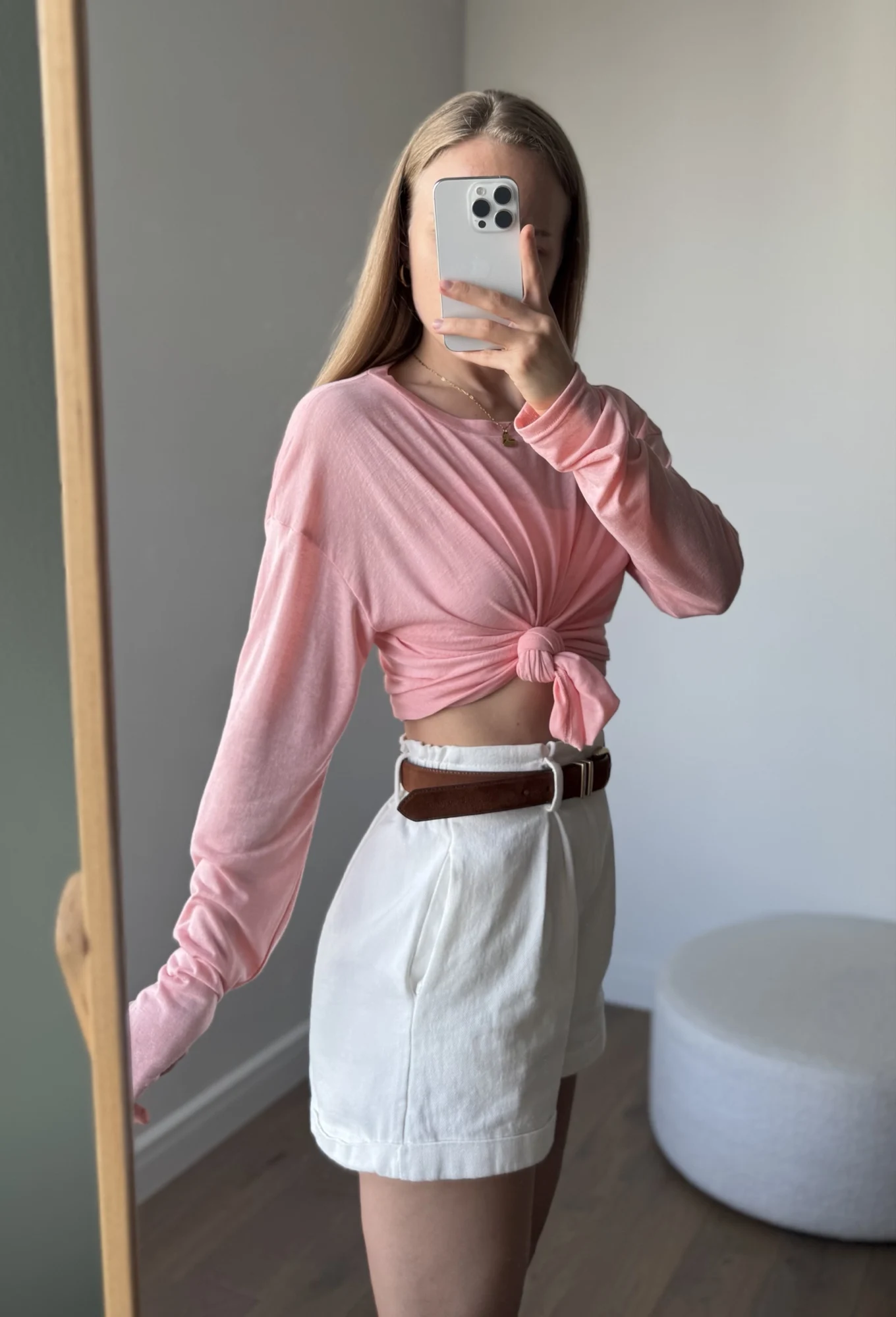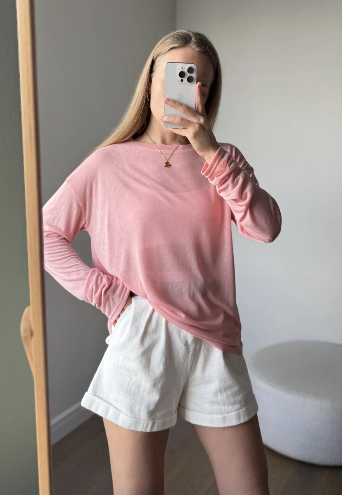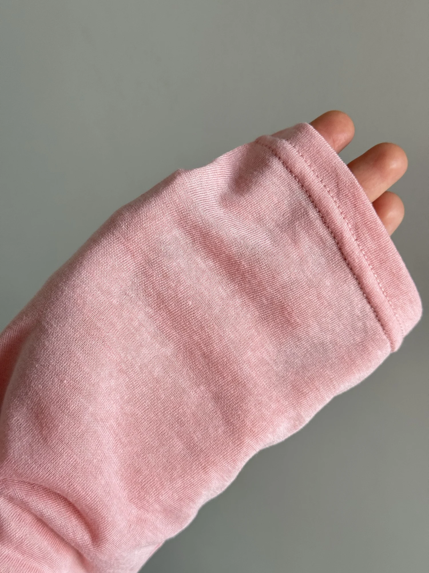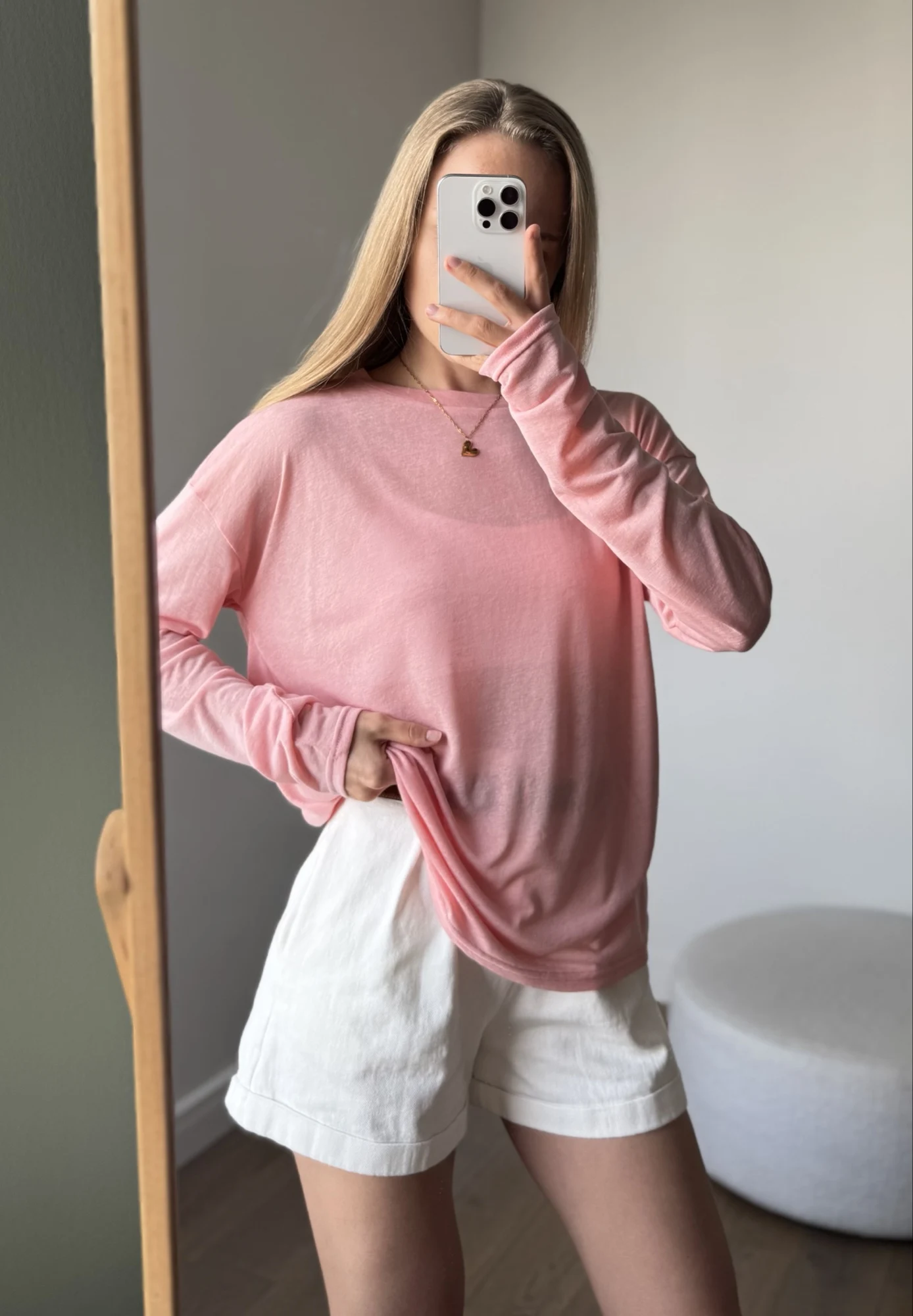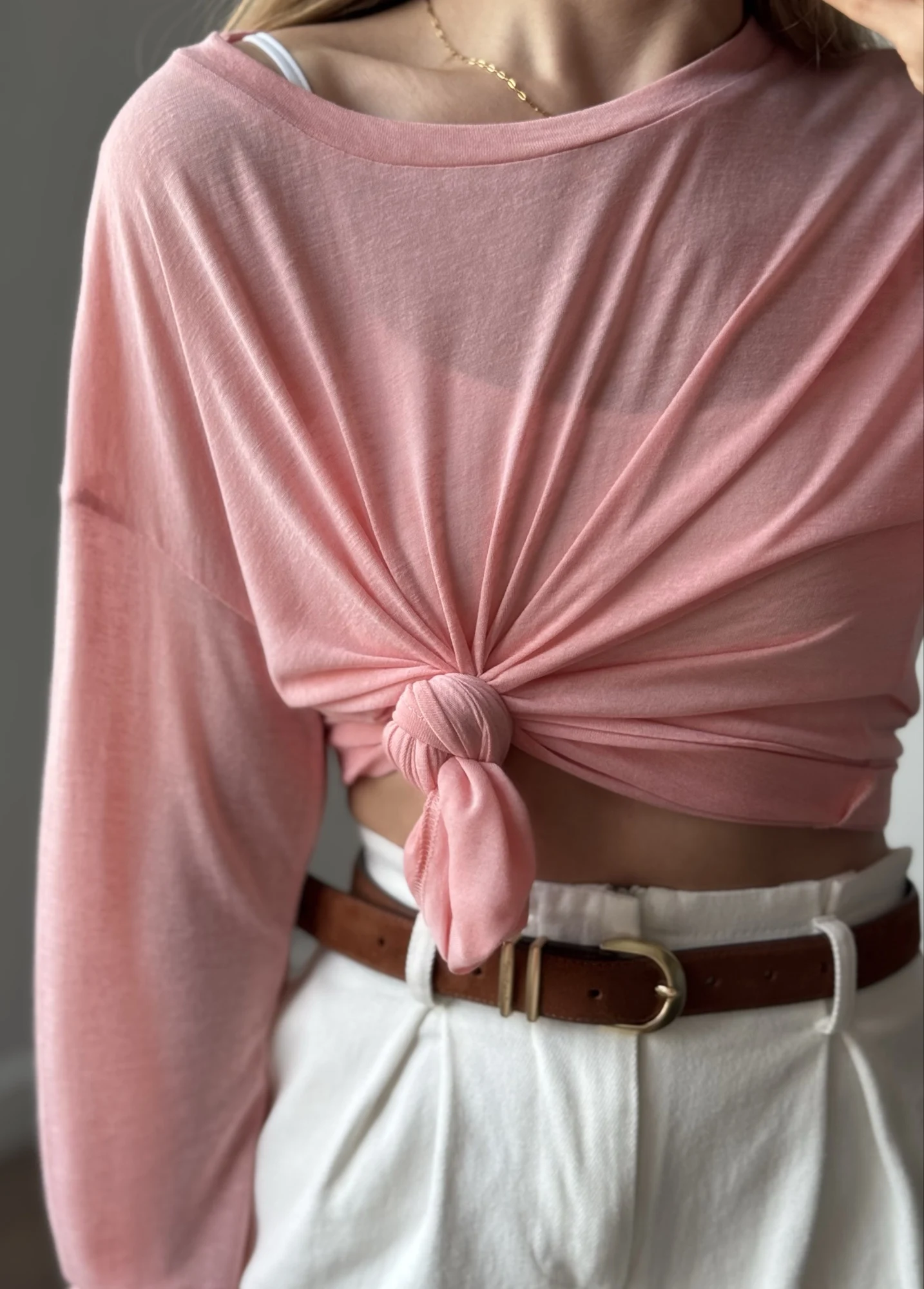 Полупрозрачный розовый лонгслив На свои параметры 80/63, рост 165 я взяла размер М. Лонг сел свободно, подойдёт и на параметры больше моих В составе 30% вискозы и 70% полиэстера. Материал легкий и комфортный.