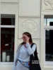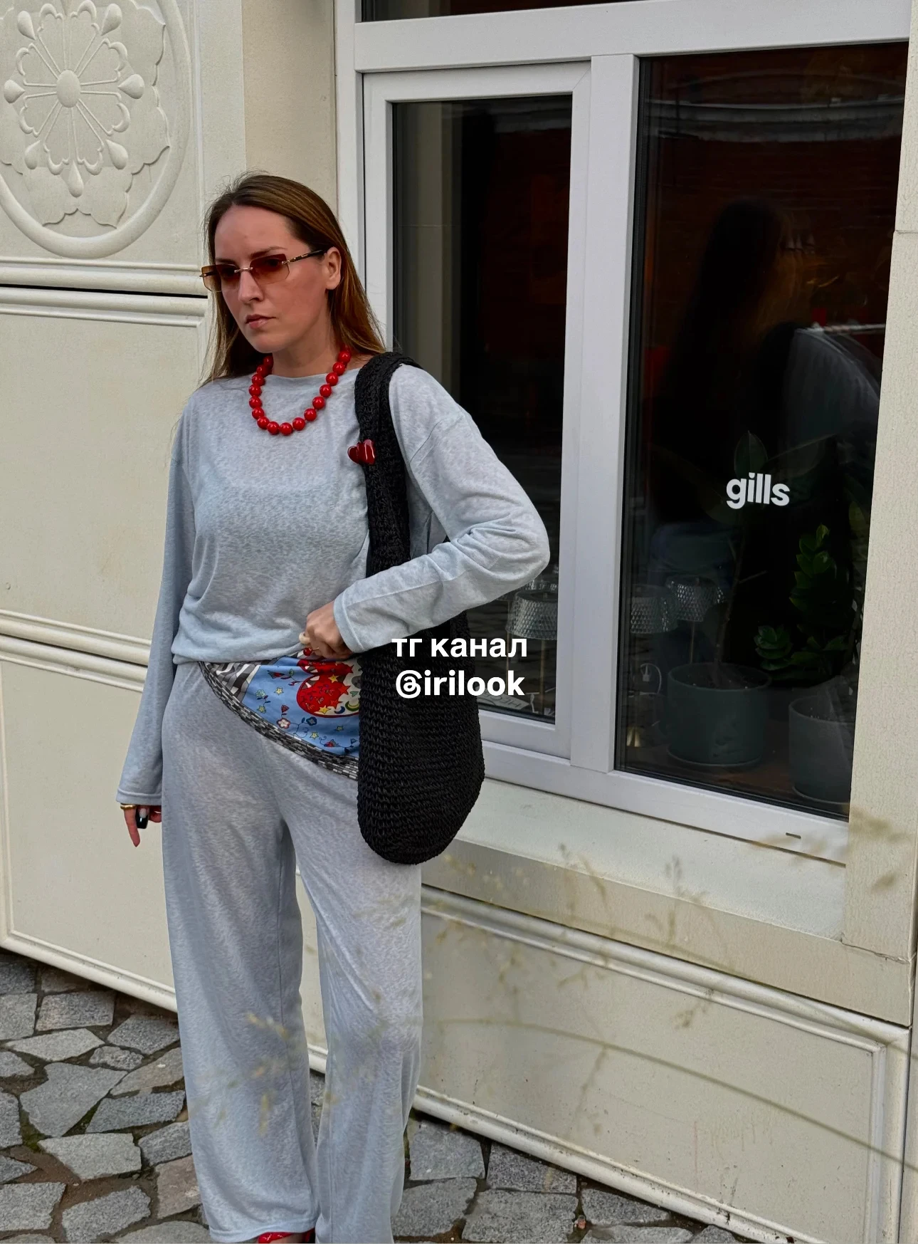 очень клевый костюм! я себе взяла в двух цветах, но успела отфоткать только голубой. материал приятный на ощупь, в нём не холодно и не жарко, идеальный вариант для московского лета, погода у нас в этом году максимально переменчивая. на рост 168 длина брюк отличная, но вот посадка немного странноватая, как будто бы слишком высокая, на талии их носить не получится. на моем канале можно посмотреть видео-обзор и детальную распаковку в двух цветах. на мне, кстати, всё с али, включая все аксессуары