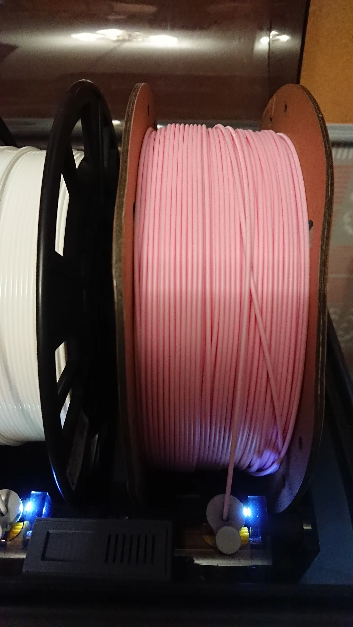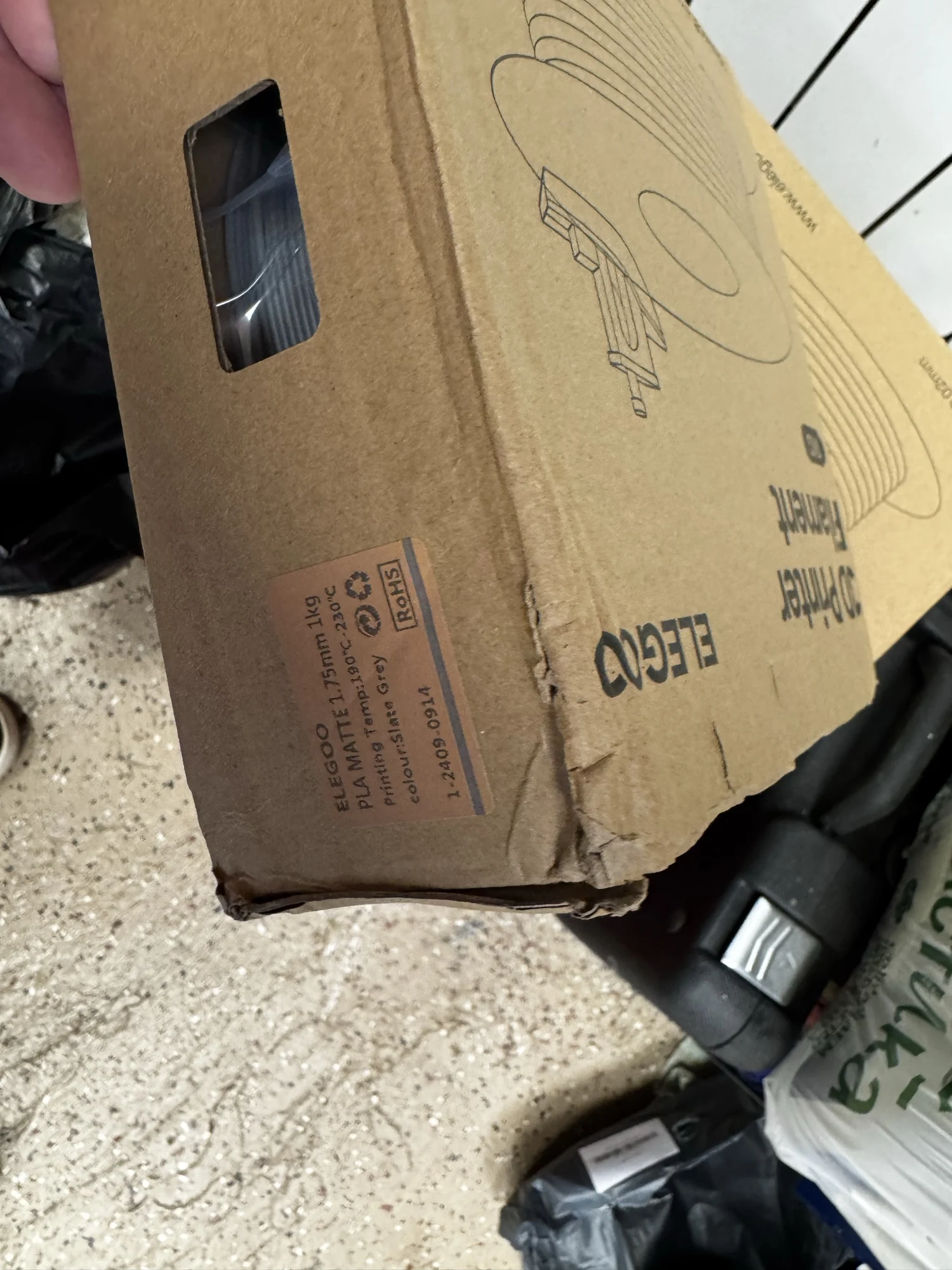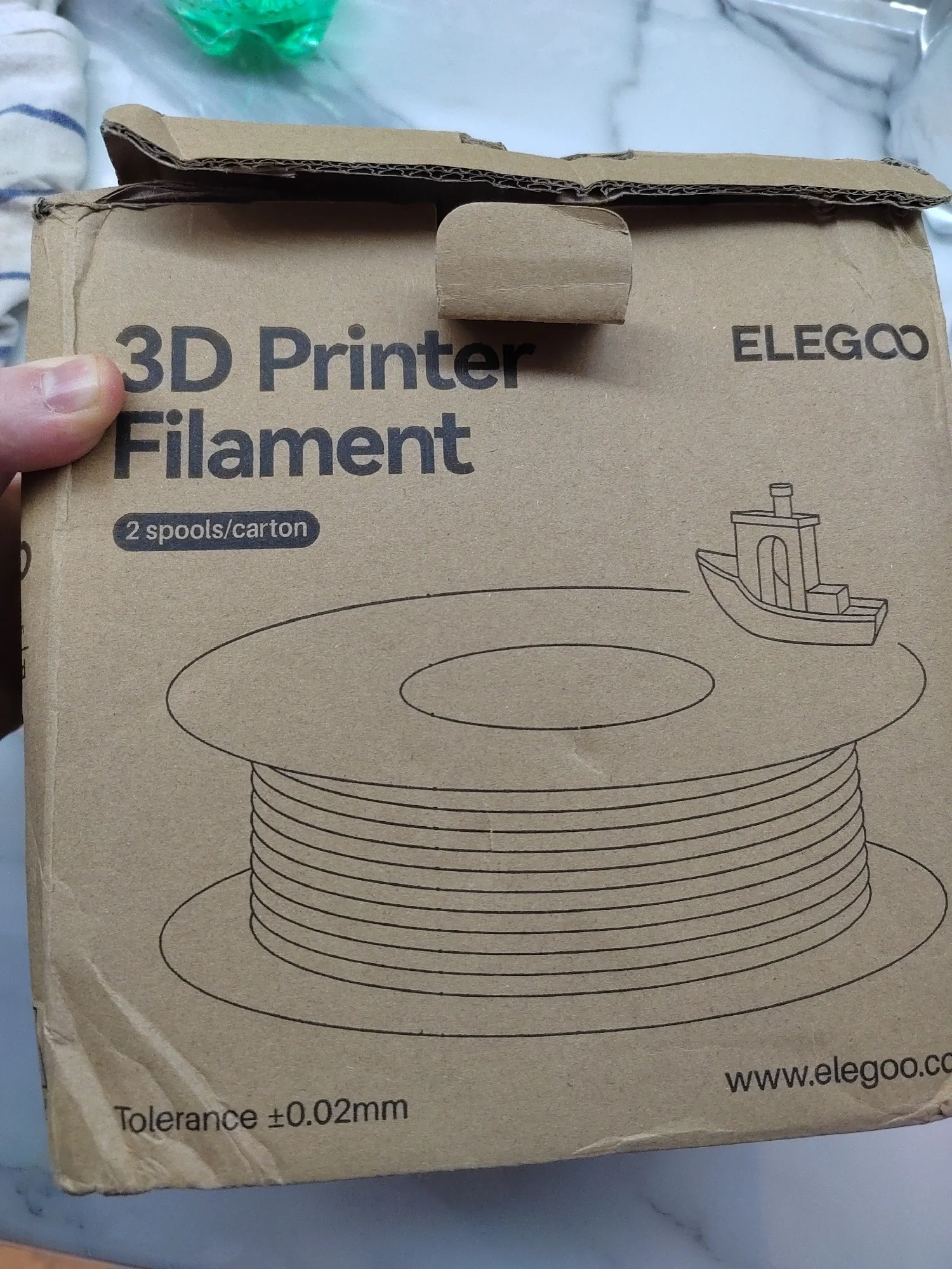 заказал два белых - пришел серый и чёрный. Не заказывайте такие пачки - пересорт. На коробке нет опознавательных наклеек о цвете. Скорее всего покупка такой коробки с двумя катушками - рандом. Решил попробовать взять в такой коробке и вот тебе презент на новый год. Так что не заказывайте такой "комбо". Стандартные коробки приходят с заказанными цветами - все отлично. Этот пластик потом куда нибудь использую. А белый придется заказывать по одной коробке.