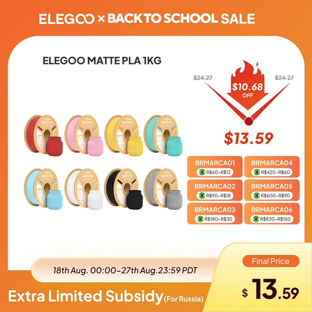 Красивая матовая отделка ELEGOO MATTE PLA производит красивое матовое, глянцевое и гладкое покрытие, в результате чего напечатанный объект с практически невидимыми линиями слоев.