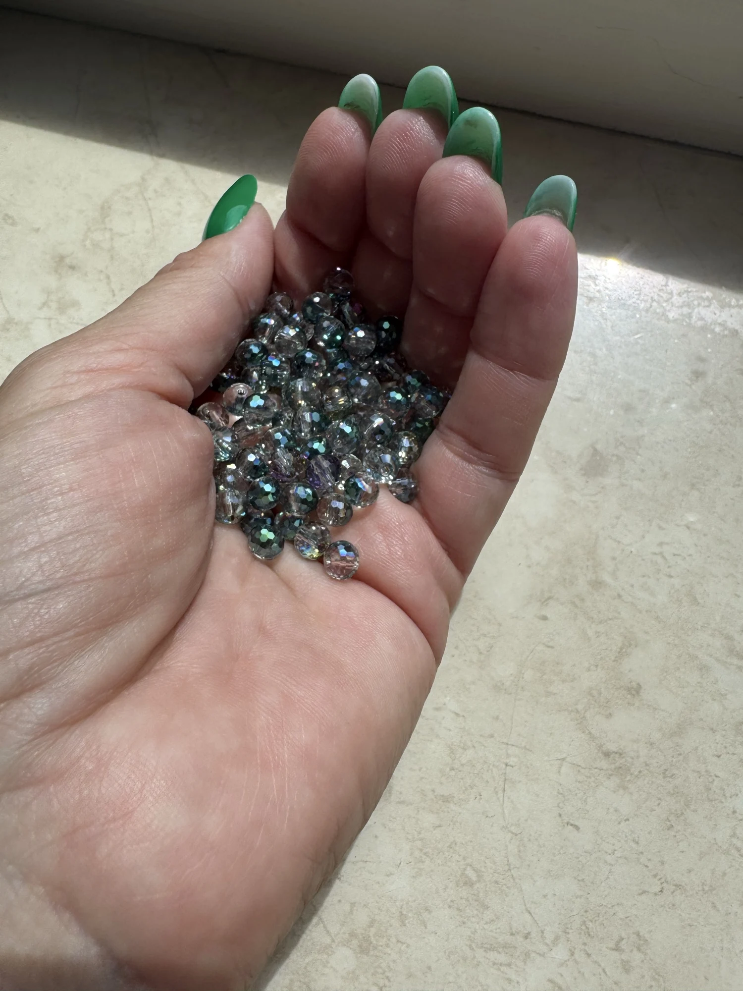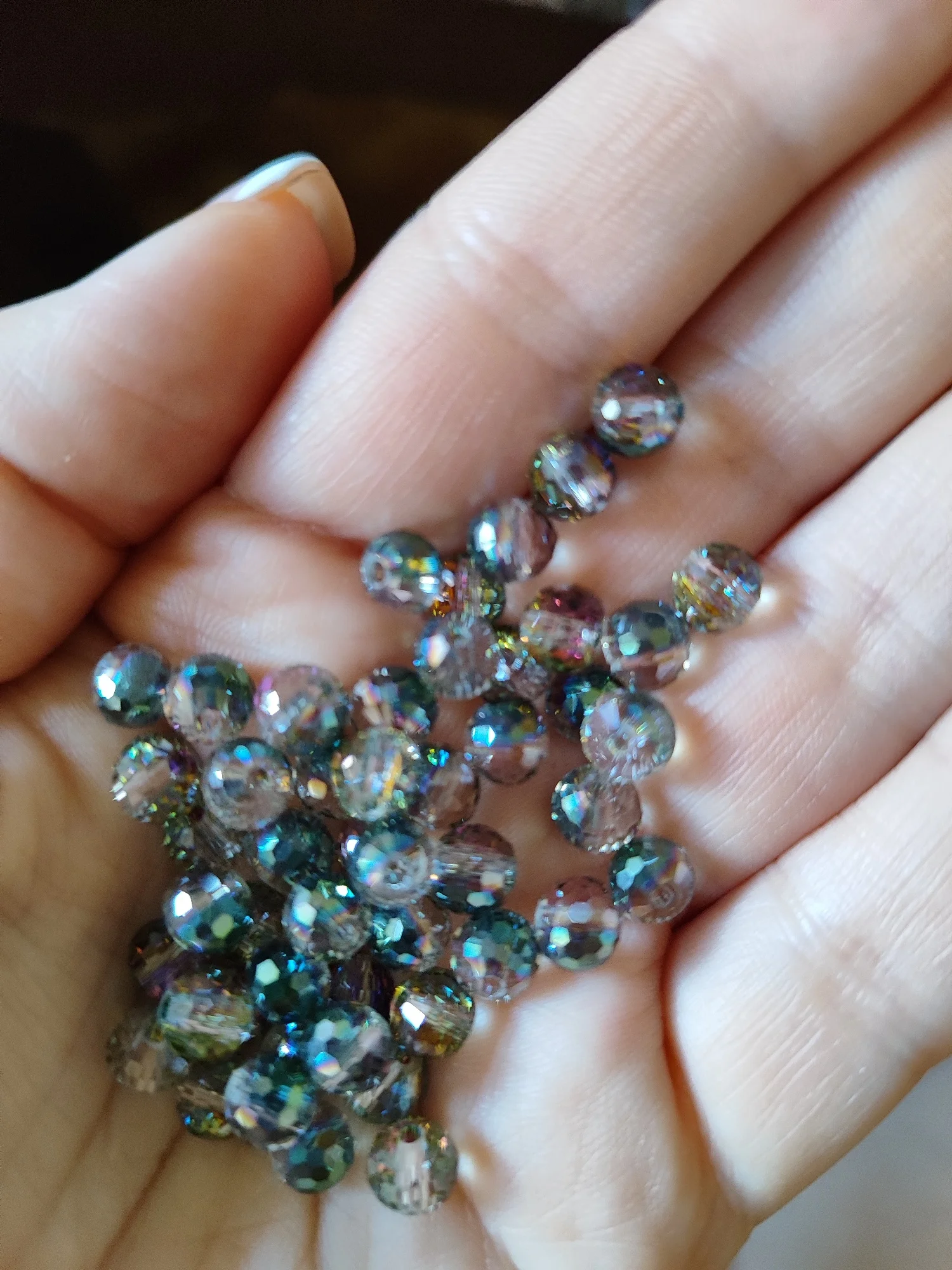 очень красивые бусины переливаются, основной цвет как морская волна, а повернёш и синим отливает и с боку блёстки коричневые, мне понравились, были хорошо упакованы, посылка немного задержалась в пути.TATIANA V. 13 июня 2025