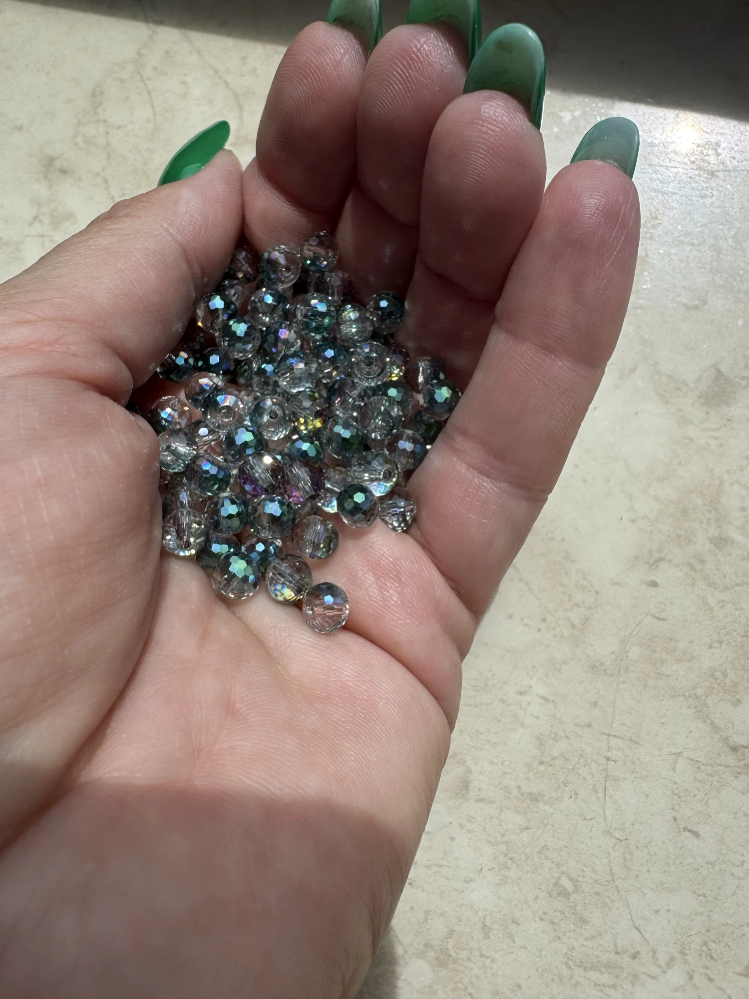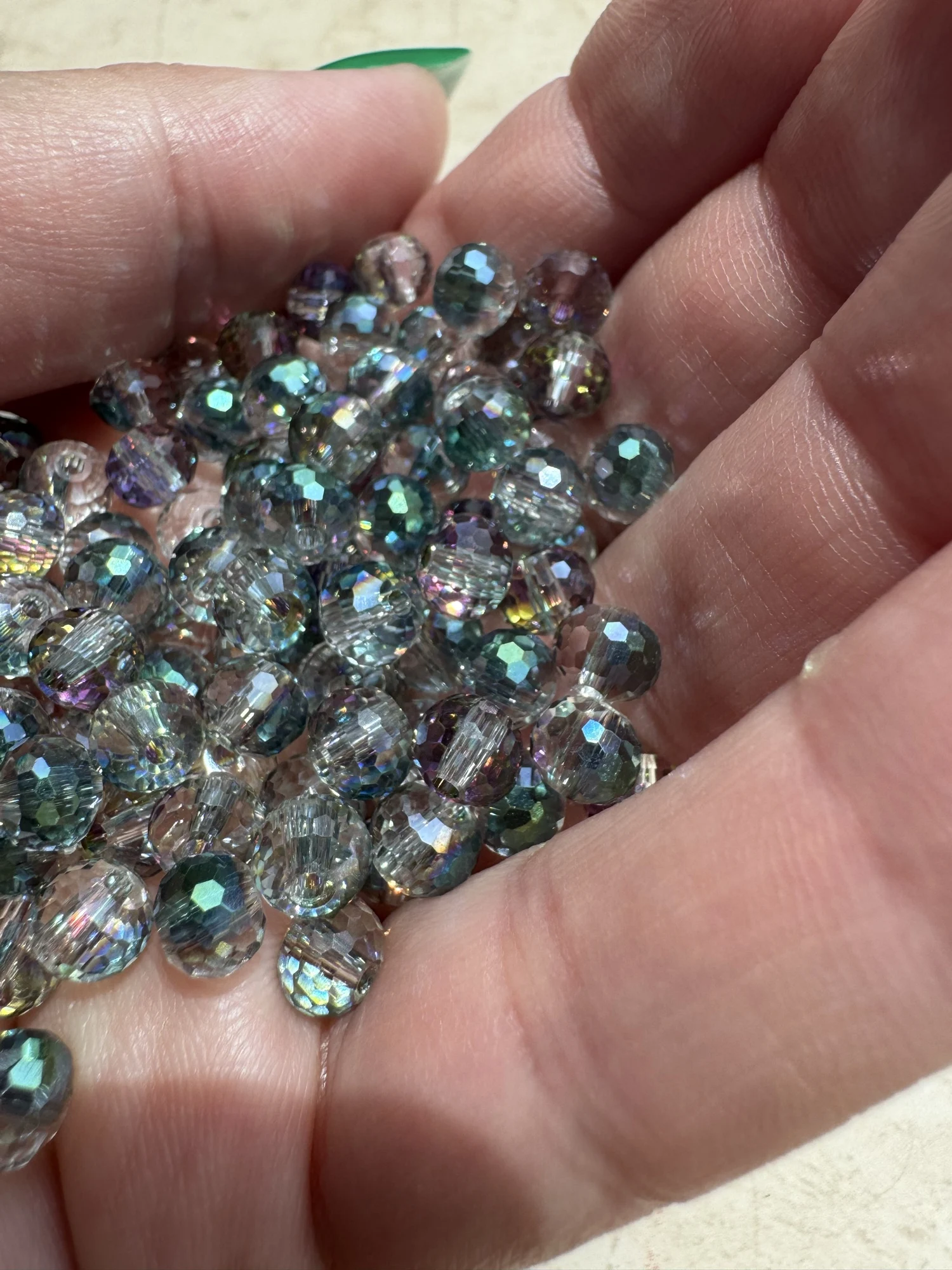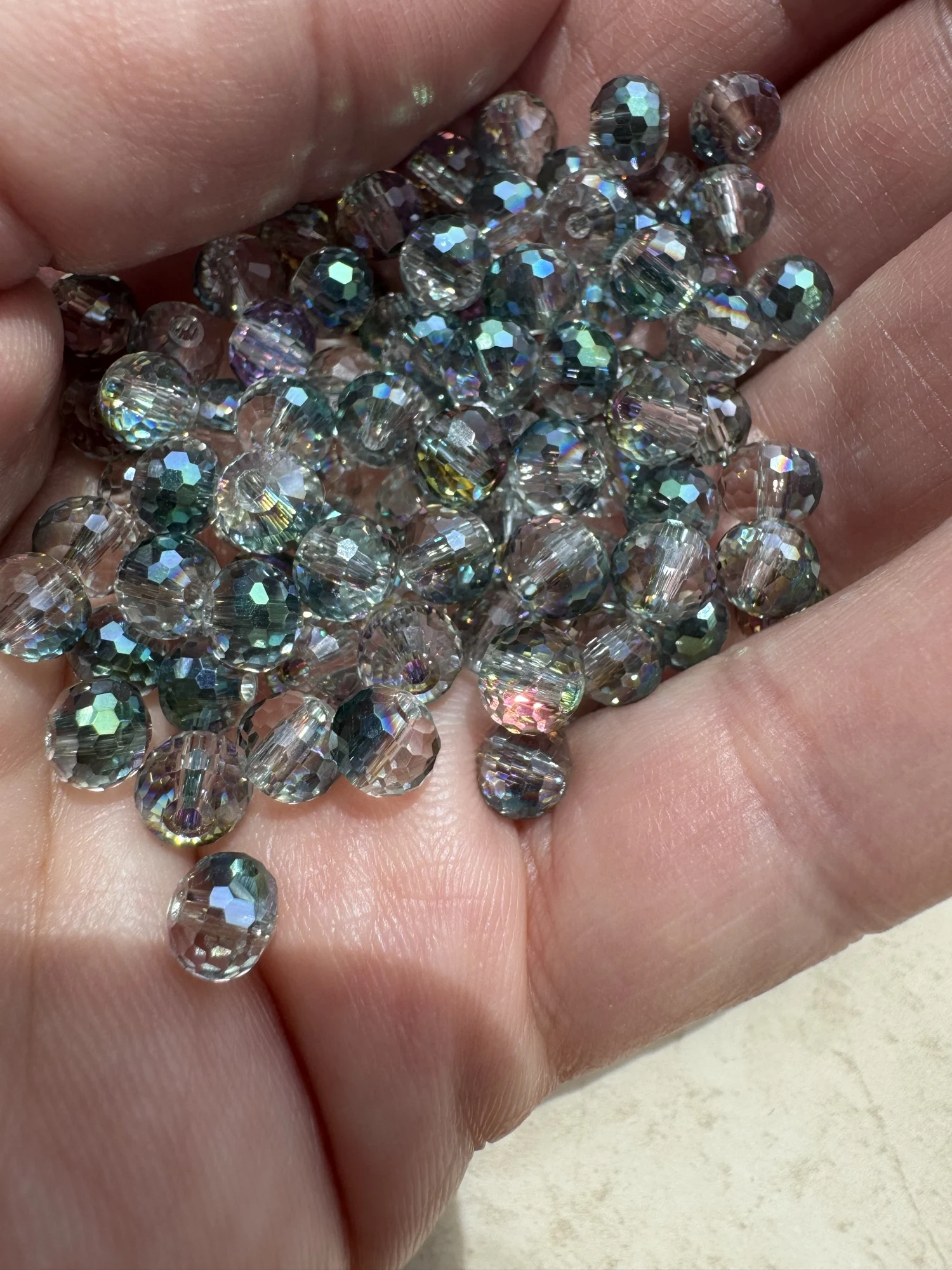 стеклянные бусины очень красивые, 8мм, 50 штук, на одном боку блёстки и из за этого сильно блестят, мне понравились.TATIANA V. 21 июня 2024