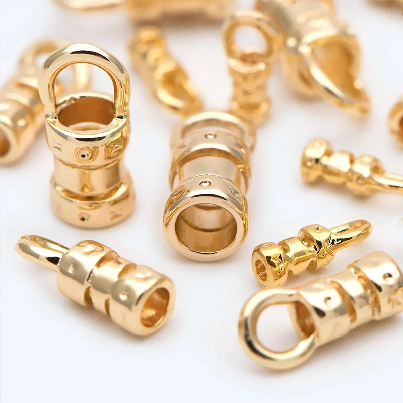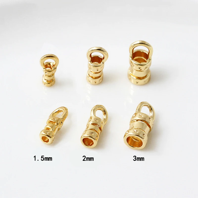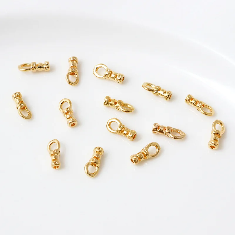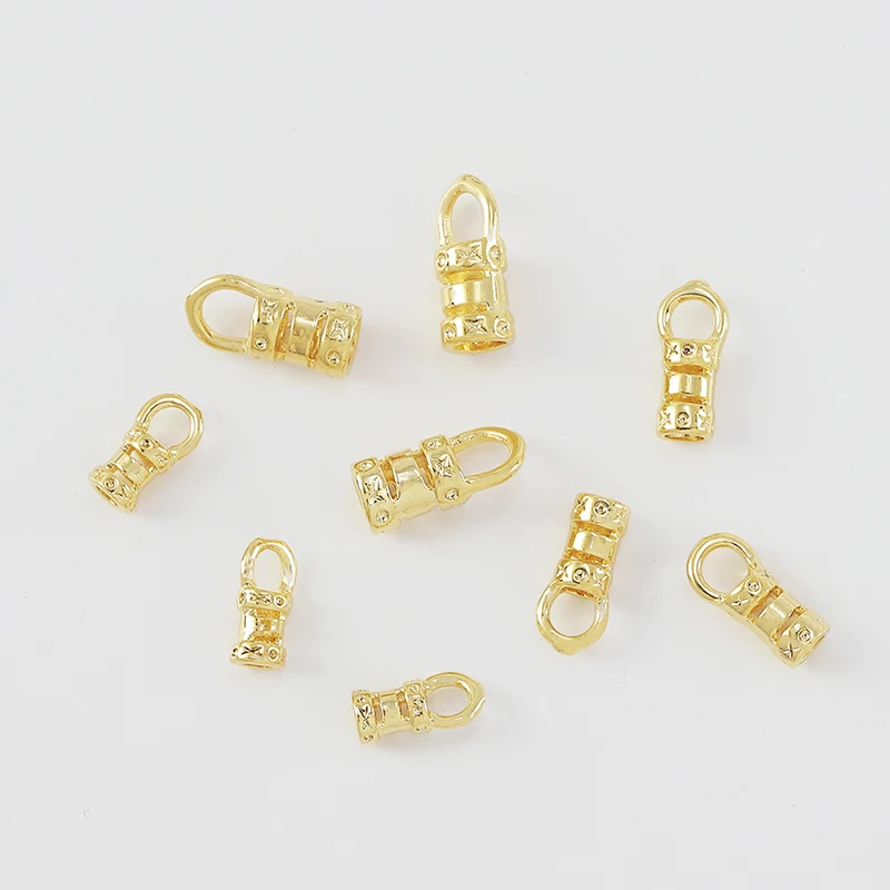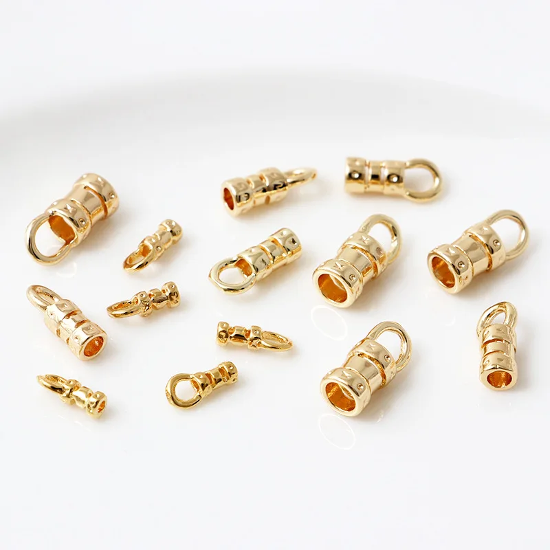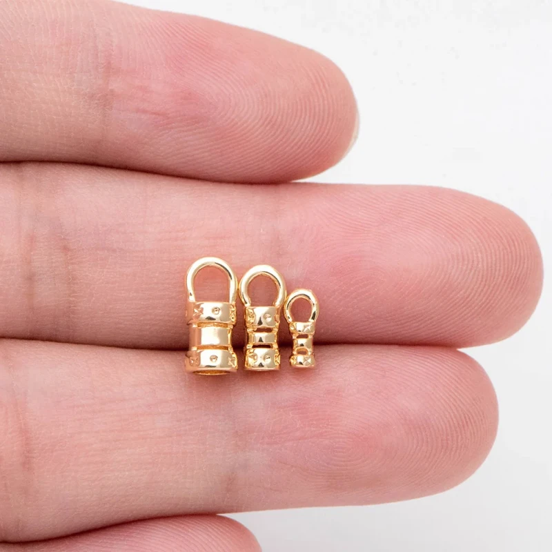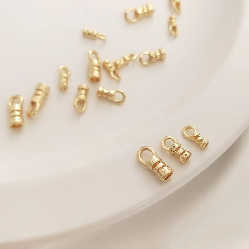 20 шт. латунные обжимные заглушки из 18-каратного золота с петлей для шнура, наконечники ствола, колпачки для кожаных шнуров и цепей, изготовление ювелирных изделий своими руками