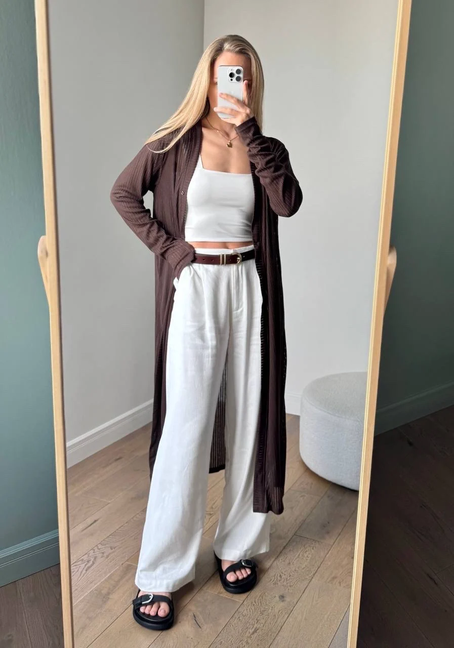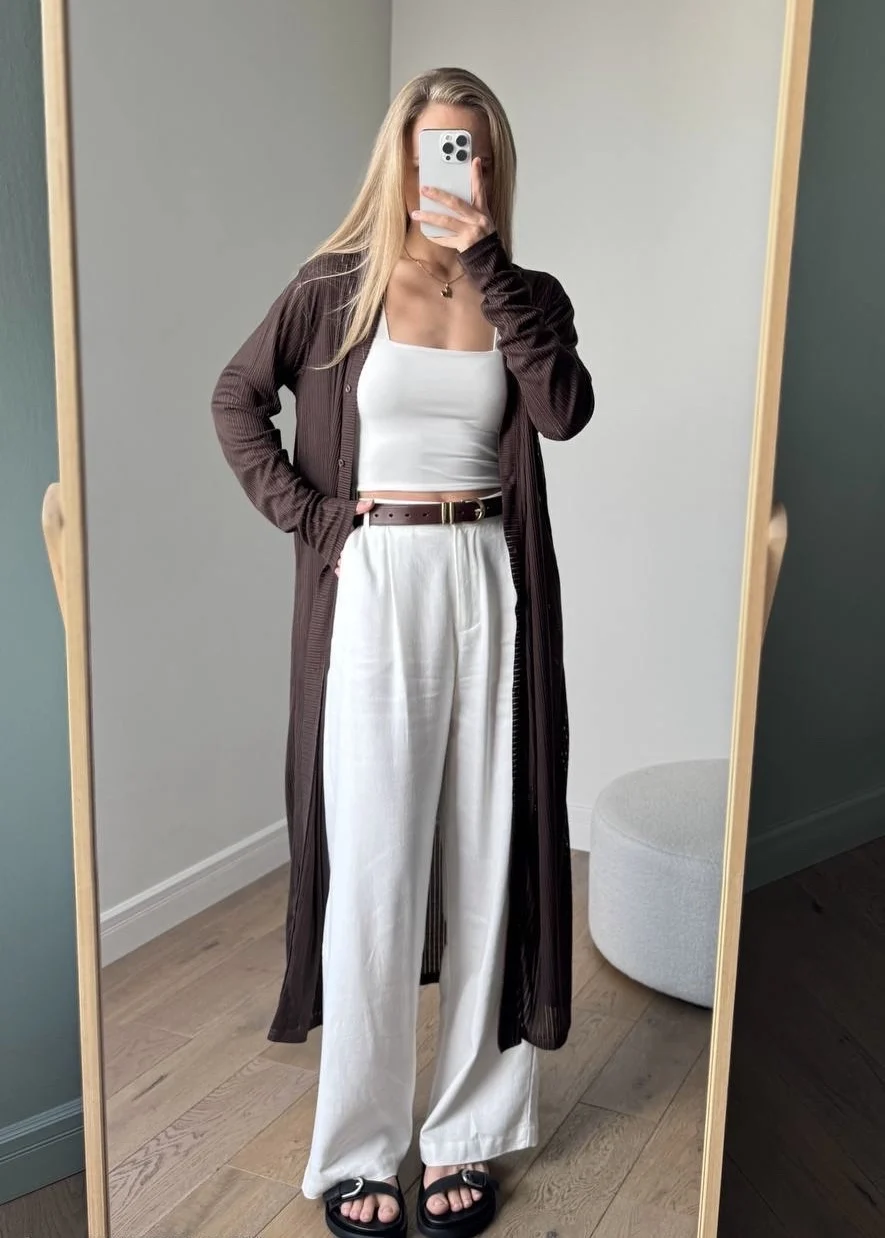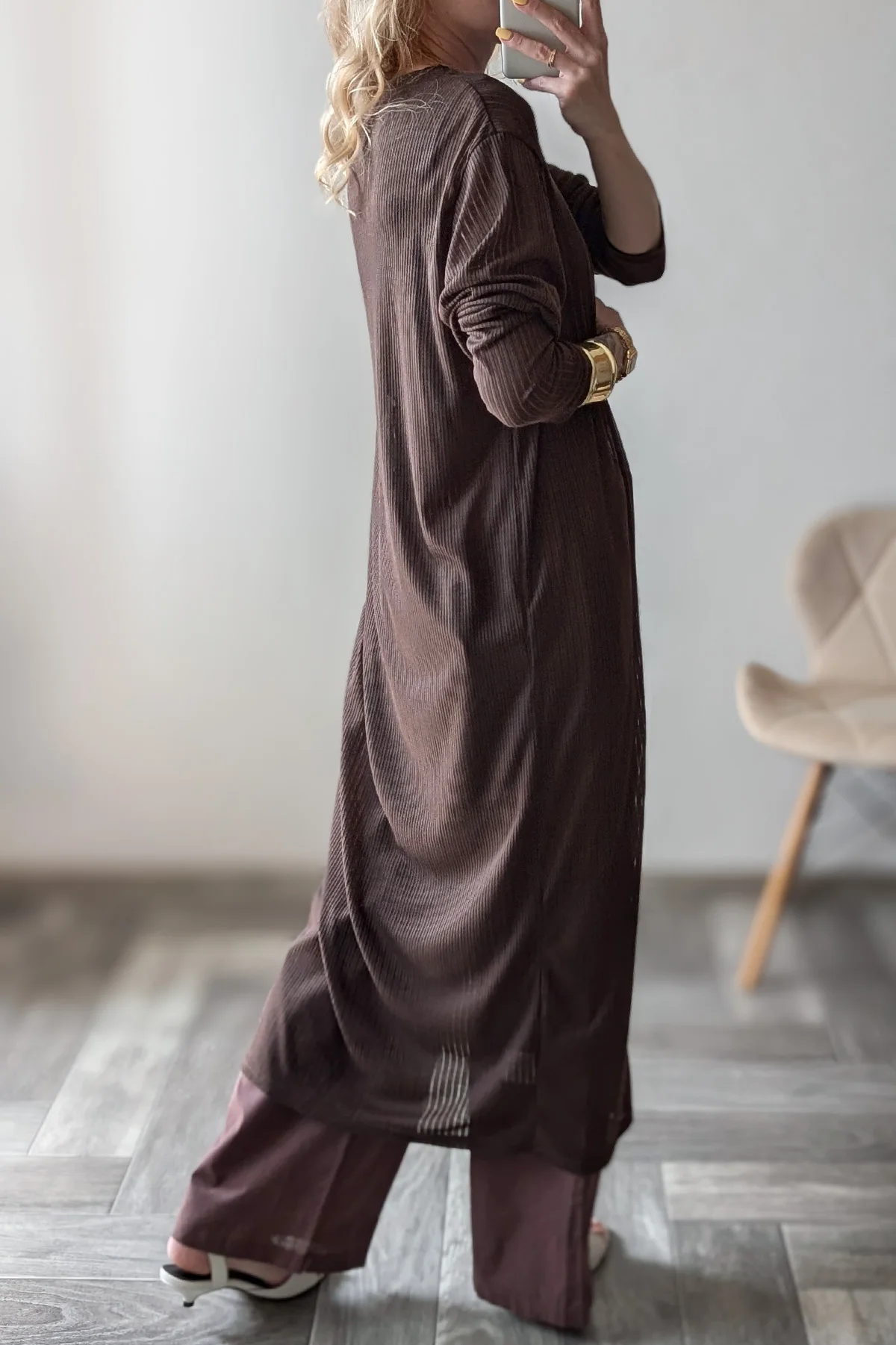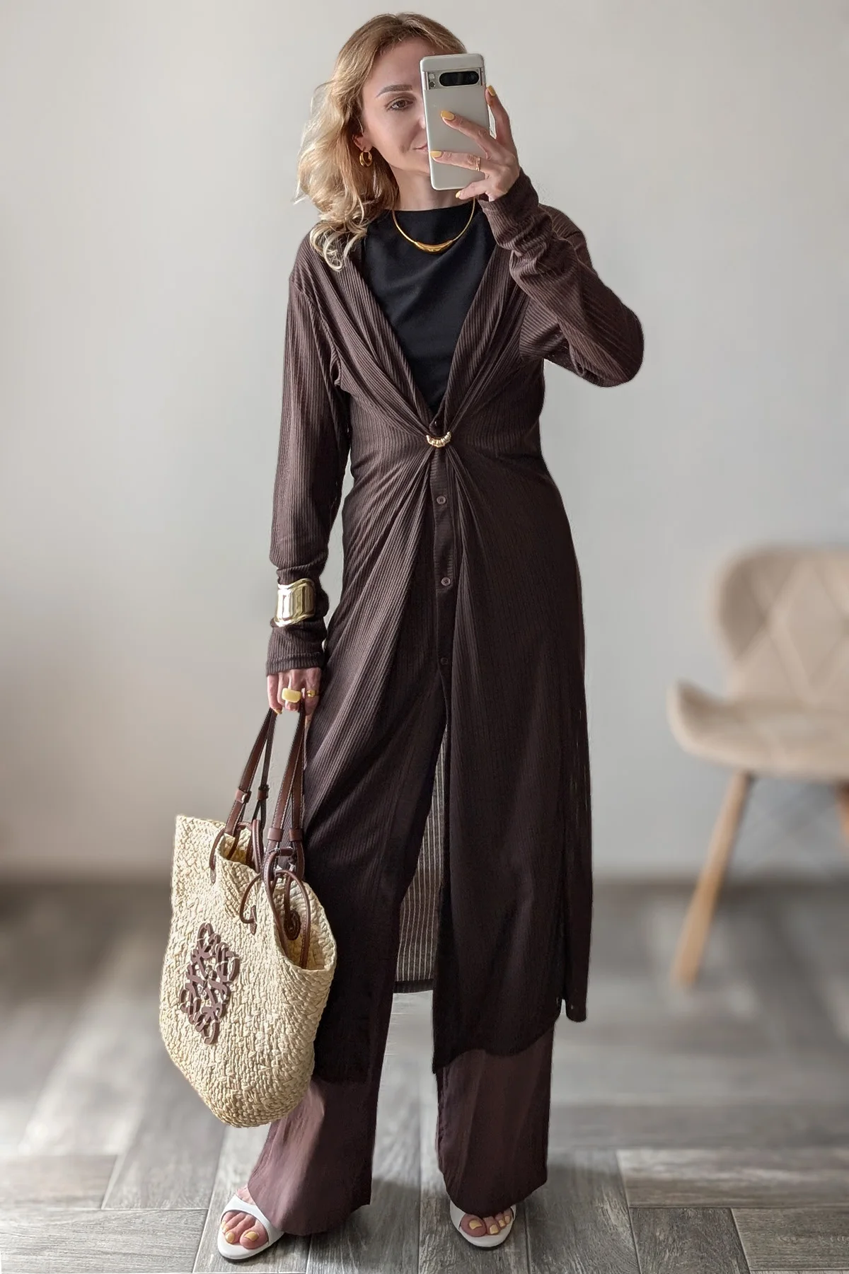 Больше обзоров и находок на моём канале Невесомое стильное дополнение к вечернему летнему образу Мне дико понравился и уже пару вечеров я с ним не расстаюсь, хоть и совсем недавно получила На свои параметры 86-57-86 см и рост 165 см я взяла кардиган в размере S На выбор у продавца три расцветки и, по сути, все базовые Мой вариант - шоколадный Приходит кардиган с бирками бренда + имеется запасная пуговка Материал - пэ-шка, тактильно очень мягкая и приятная на ощупь Шикарная текстура а-ля рубчик + полупрозрачность - вкупе смотрится интересно и неординарно Кардиган сразу вносит определённый "изюм" даже в самый обыденный аутфит На мой рост 165 см длина - миди Размер - полноценная S-ка, посадка свободная Моно по-разному его закалывать брошами, обыгрывать поясами и платками А можно использовать в качестве пляжной накидки в отпуске Вещь самобытная и при этом многофункциональная А исполнение, как всегда у этого бренда, на высоте Качество -ТОП Рекомендую к покупке❤️