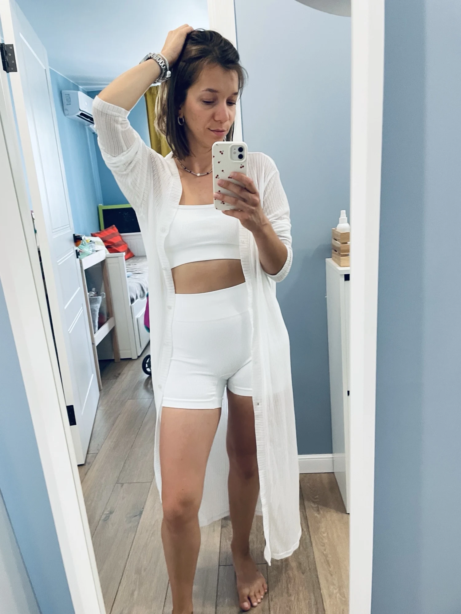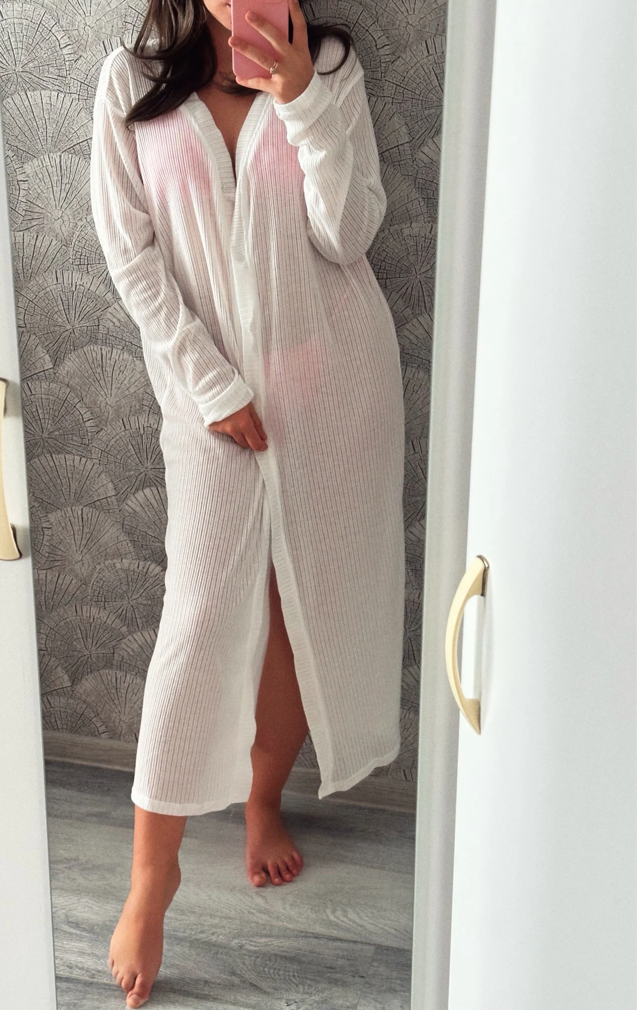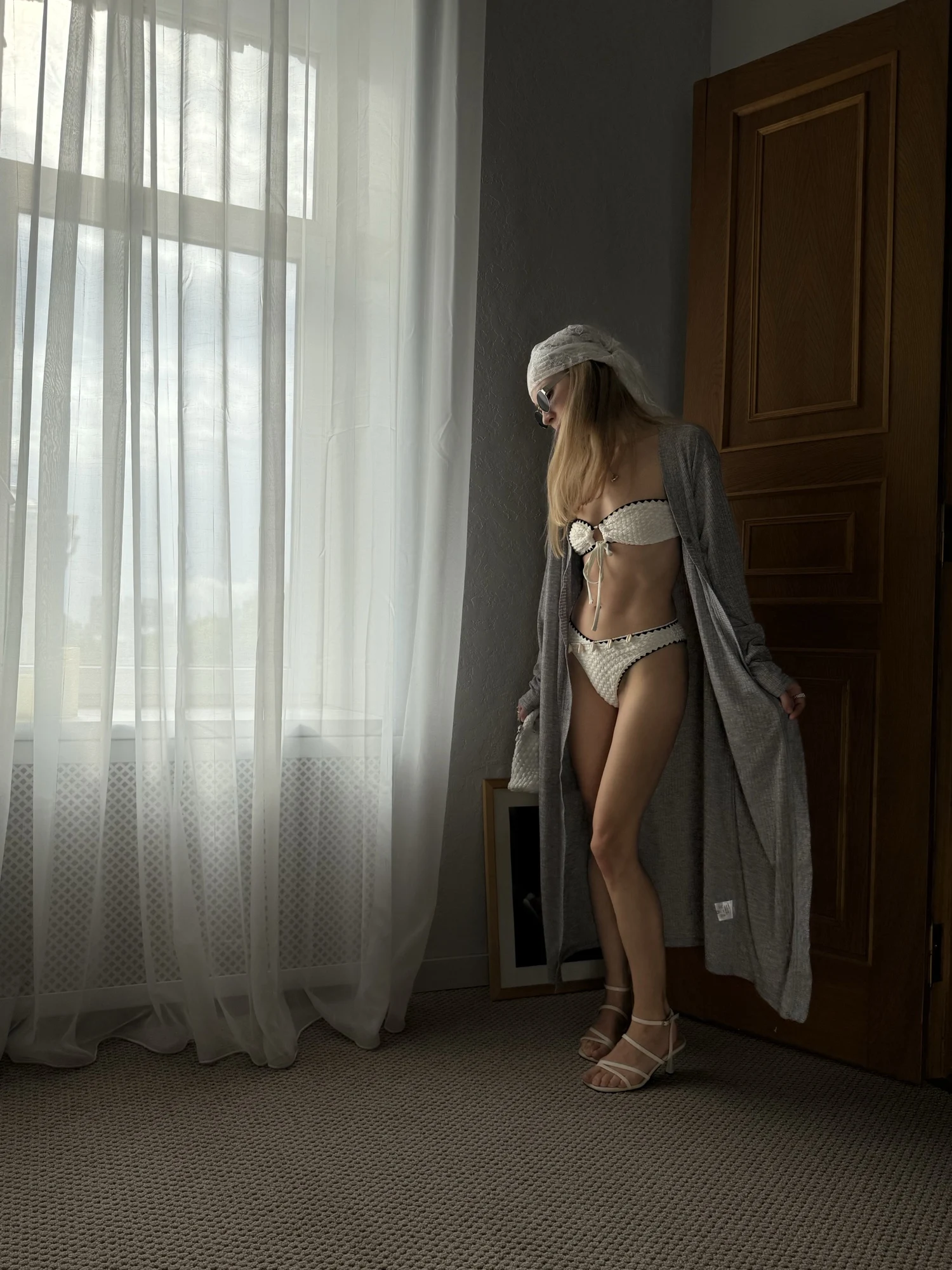 Очень классная находка на лето. Невесомый кардиган, у меня в белом цвете и размер L. Обычно я ношу размер S, но такие вещи люблю покупать на пару размеров больше, чтобы сидели более свободно. На пляже такая вещь просто незаменима, спасает от нежелательного загара. Мой рост 165 , кардиган сел отлично.
