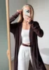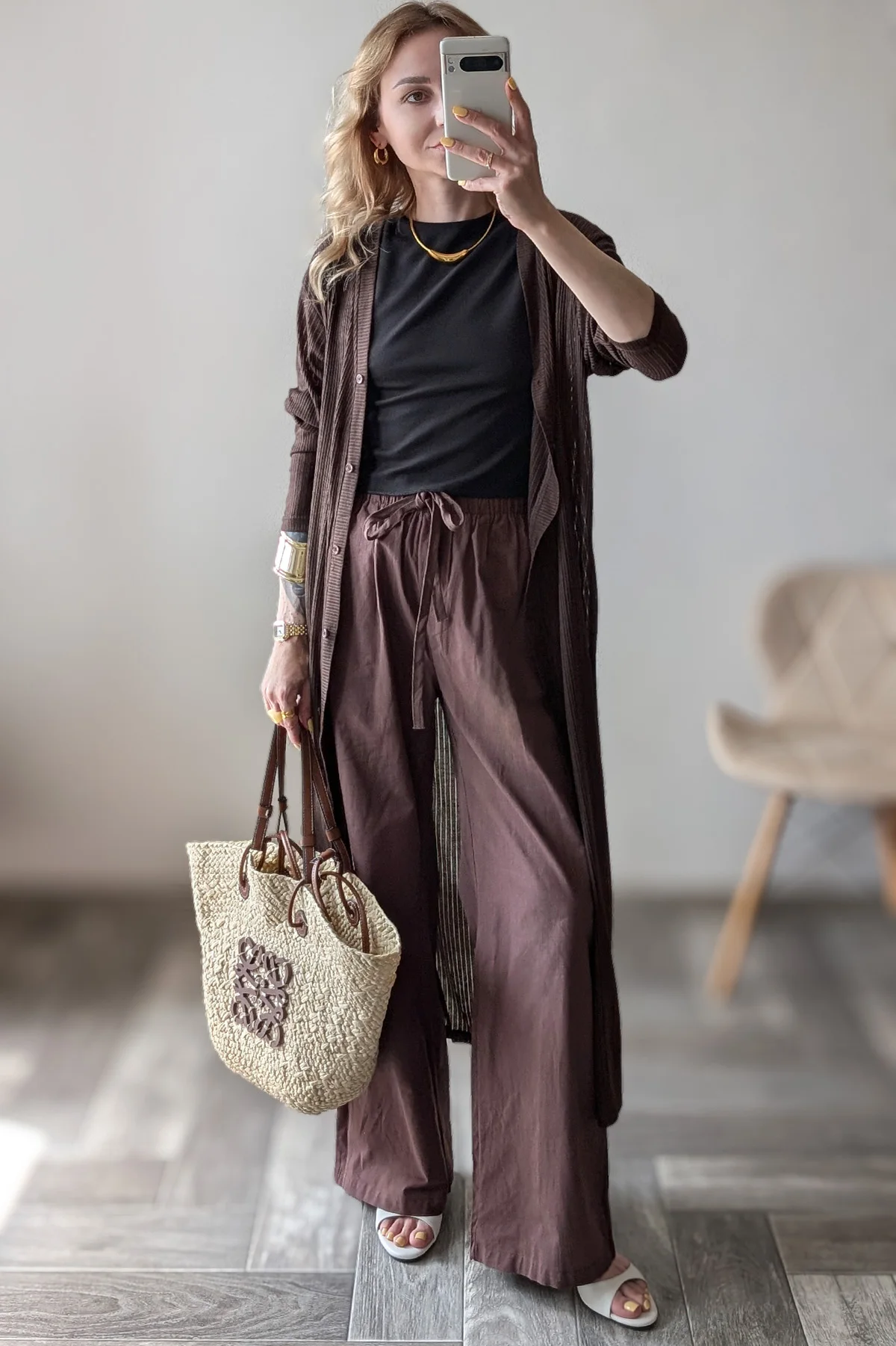 Классный кардиган коричневого цвета. Тонкий, летящий-идеальный вариант для лета как верхний, так и как нижний слой. Размер М идеально на 44 размер. У меня рост 173см, девочкам пониже будет вообще идеально, так как длина будет мега актуальная. На море или в городские образы отличная находка! Можно создать различные образы и по-разному замиксовать! Ткань комфротная и продуваемая. Однозначно рекомендую, супер модель. Продавец отличный: подскажет и расскажет! Доставка быстрая!