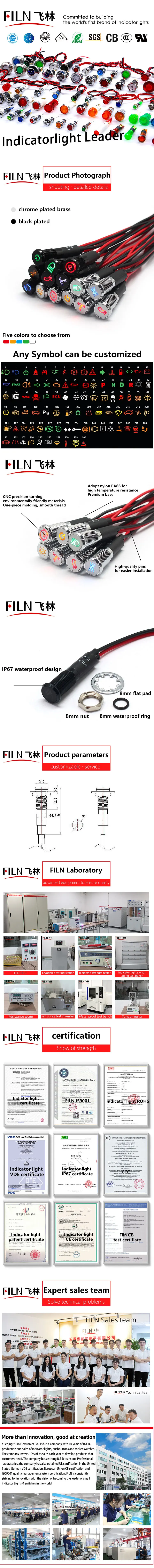 FILN 8 мм светодиодный индикатор 12 В металлический индикатор приборной панели пилотный светильник с проводом 20 см для приборной панели автомобиля морской грузовик машина