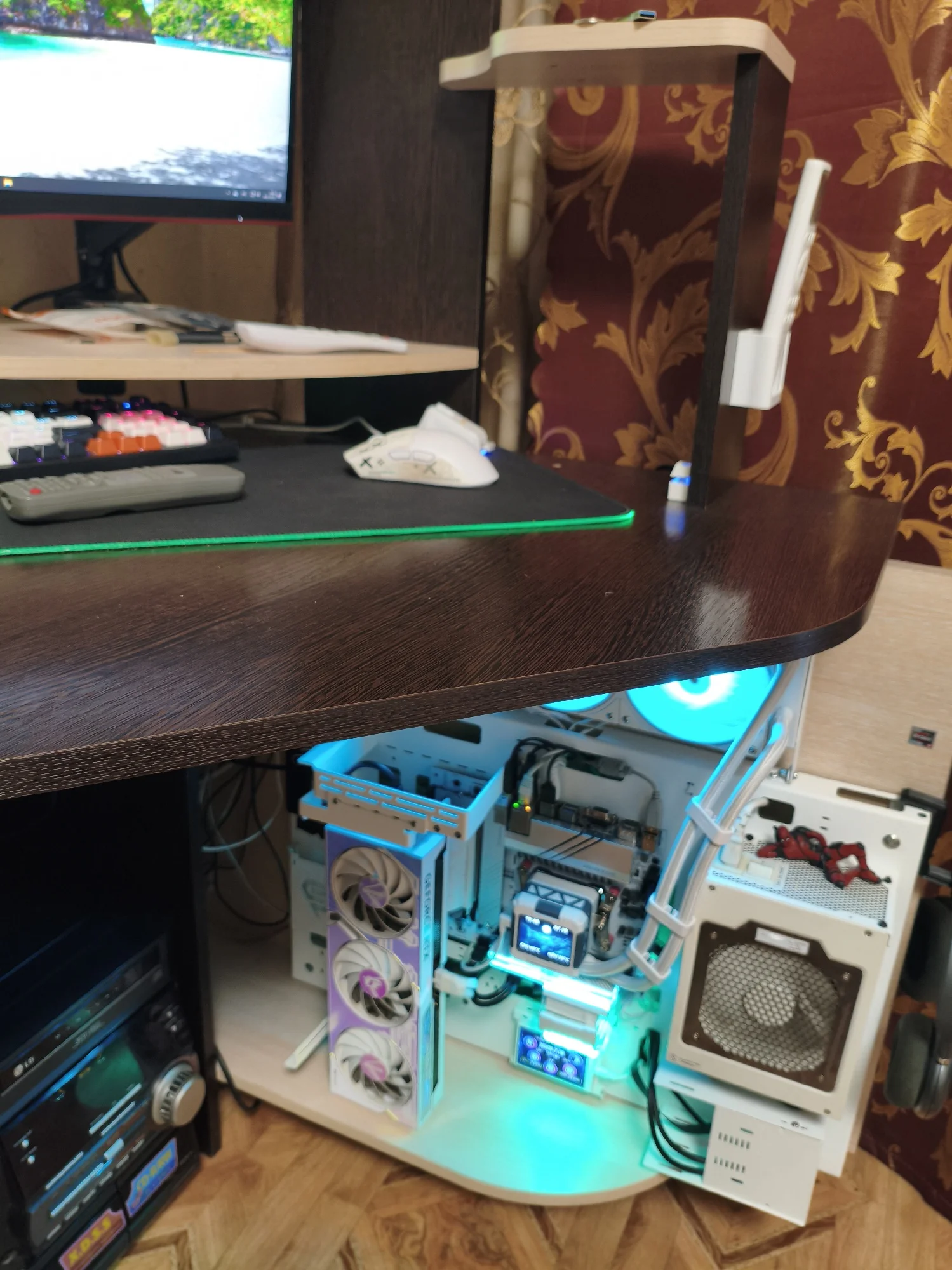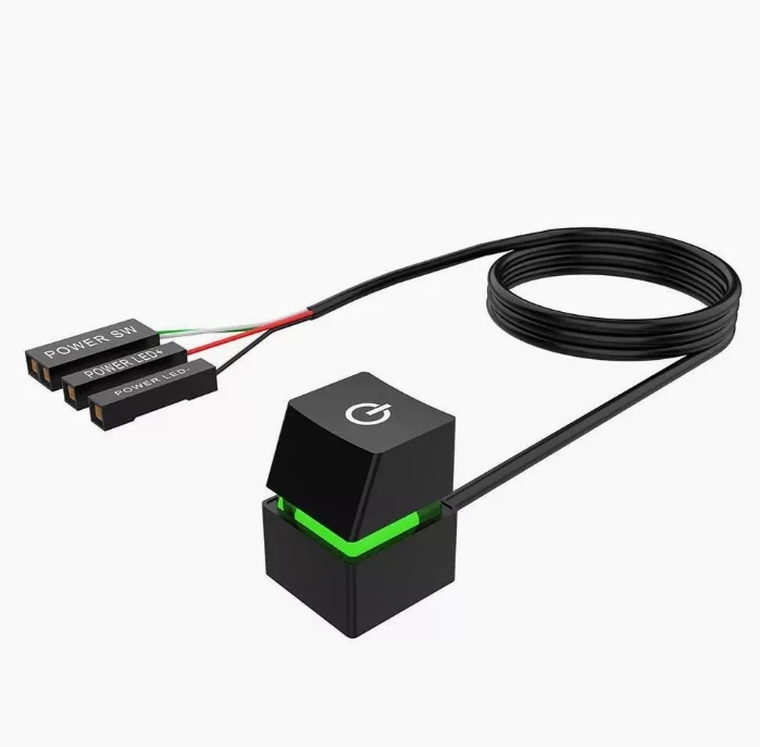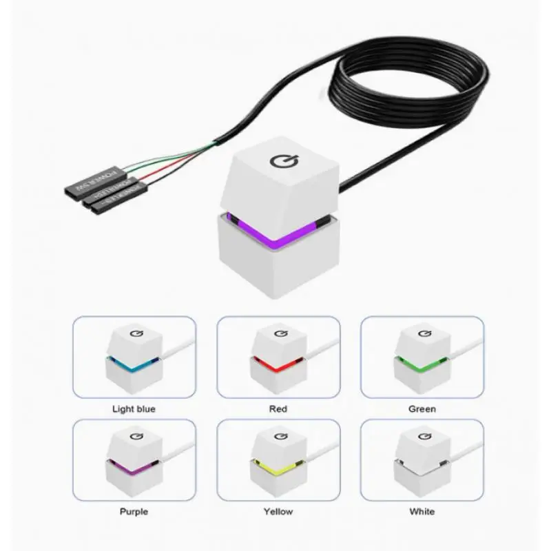 Полезная штука — не нужно тянуться железкой к контактам если ПК без корпуса Цвета кнопки переливаются - красный, зелёный, синий, салатовый, бирюзовый, фиолетовый и белый, доставка в мск 10 дней