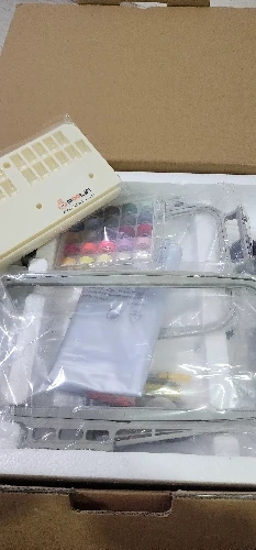 Доставлено очень быстро, дата назначена на сентябрь 23 получено сентября 09👍💯. Товар соответствует описанию. Все на английском, поэтому обязательный переводчик😊 Есть все: цветные катушки, банки и ящик для хранения, аксессуары, 2 рамки 1 большой и 1 маленький, квадраты специальной ткани для вышивки, usb-ключ, ножницы, проволочный удар и т. Д.verolec78100 u. 9 сентября 2023
