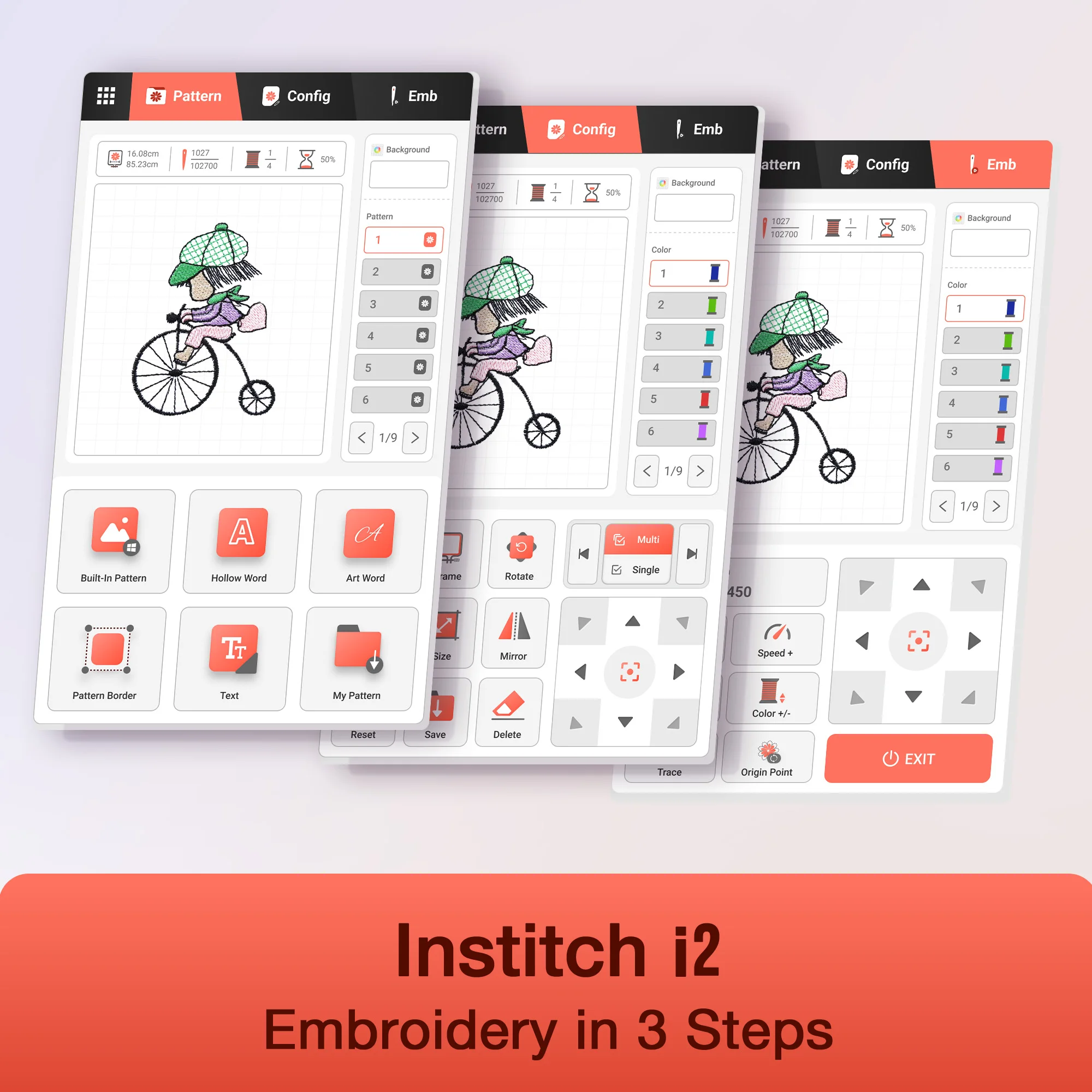В нашей системе 96 режимов.Вы можете создать свой собственный узор, просто преобразуйте рисунок в дизайн с помощью программного обеспечения для вышивания.Дизайн вышивки должен быть в формате DST или DSB, а затем импортировать его в вышивальную машину с USB.