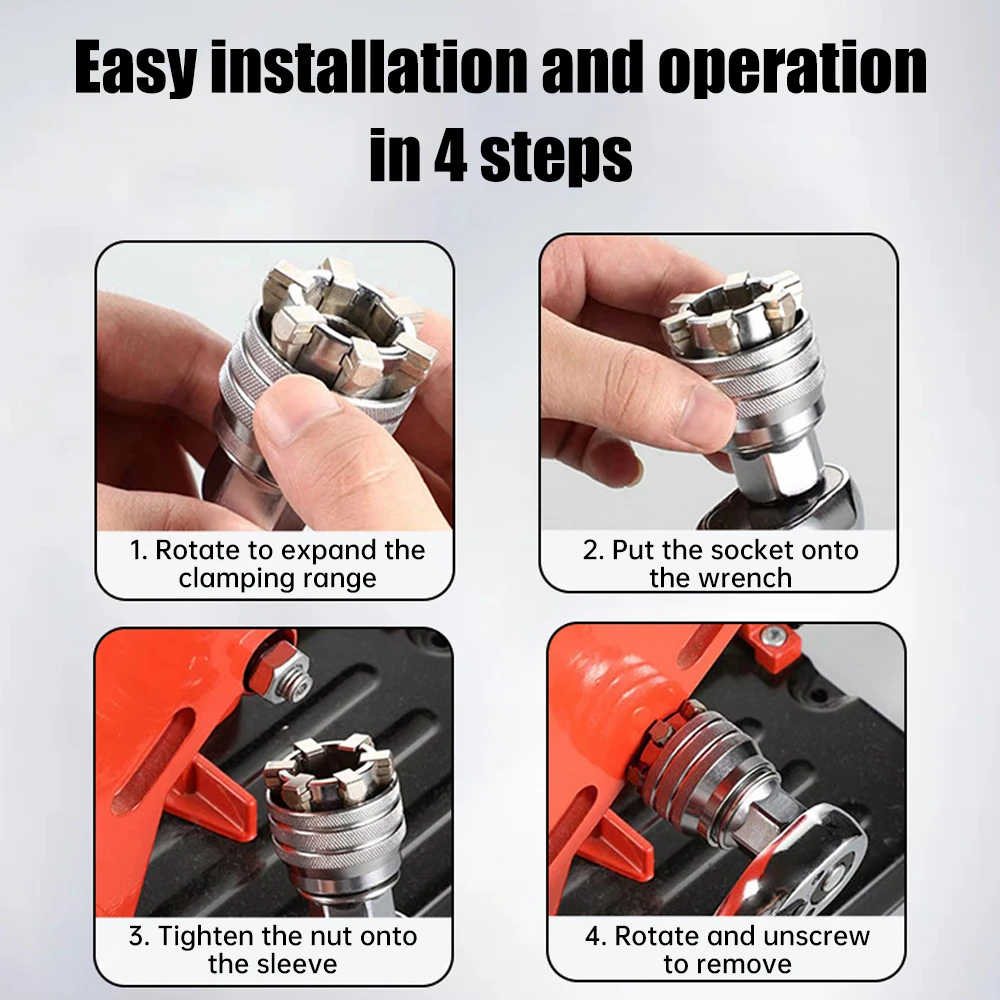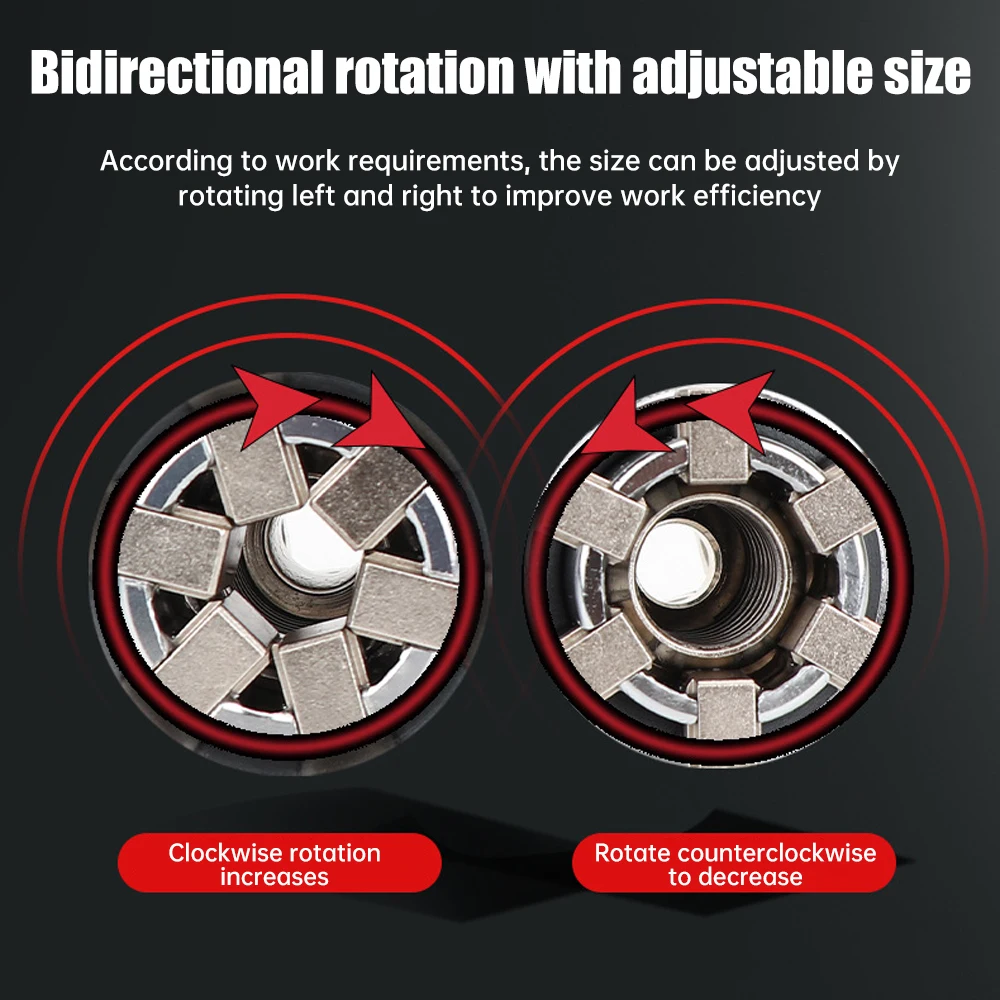 3. Можно отрегулировать до любого размера или формы, подходит для стандартных 3/8 до 3/4 дюймов и метрических винтов, гаек, болтов от 10 до 19 мм, И другие объекты различных форм и размеров с крутящим моментом не более 430 нм.