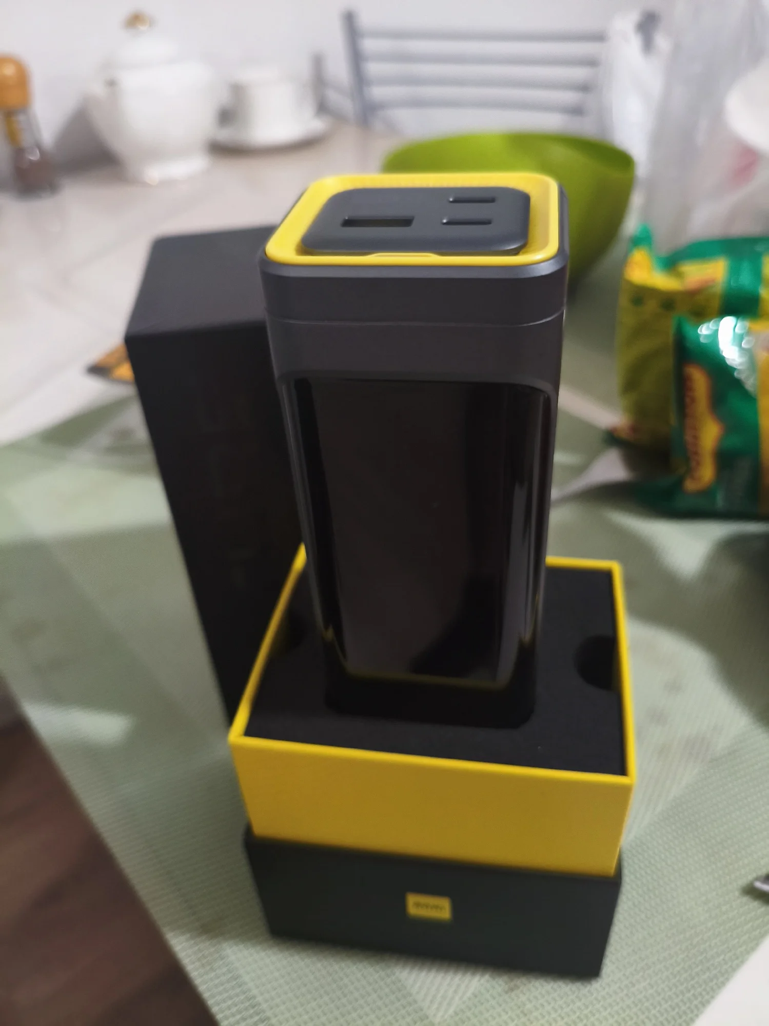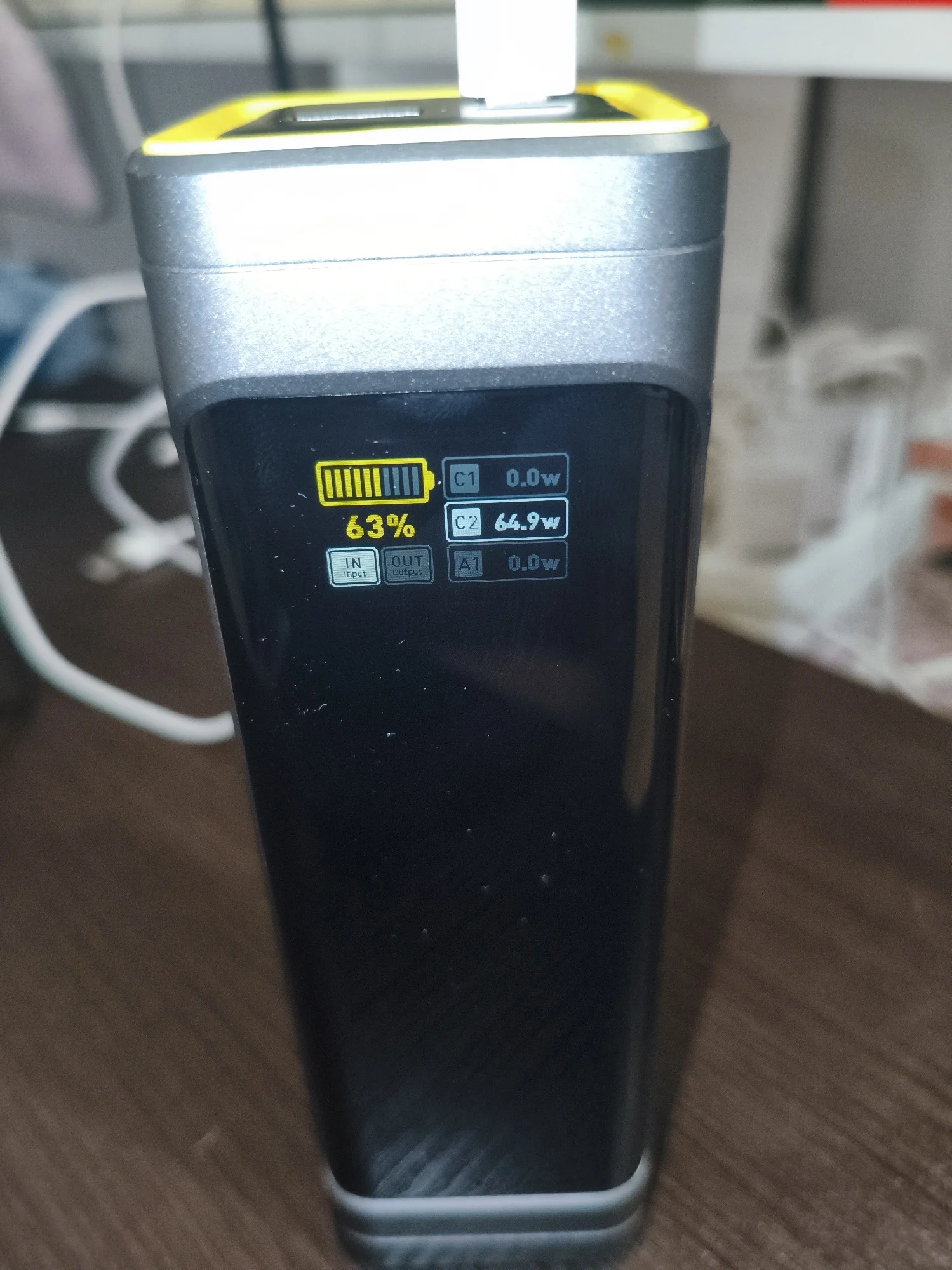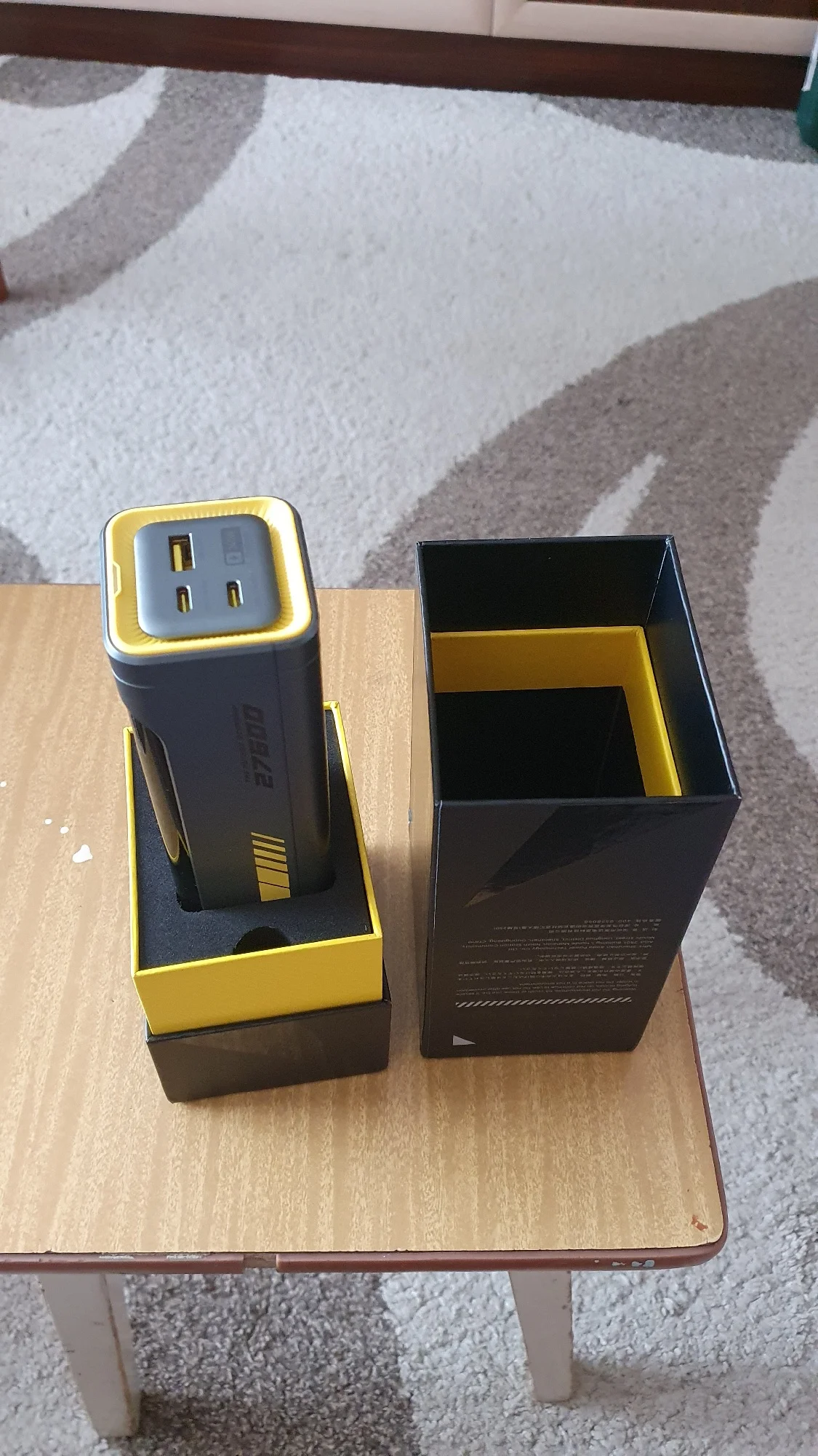 Для тех, кто любит хорошие вещи. Упаковка, комплектация удивили в хорошем смысле слова. Заряжен до 55%, в комплекте шнур 140вт, проверил PD3.1, 28в на выходе, паяльник TS101 взял 90вт. На зарядку от GaN блока взял первоначально 100вт, затем по мере увеличения уровня зарядки плавно уменьшается. Рекомендую! Спасибо продавцу!
