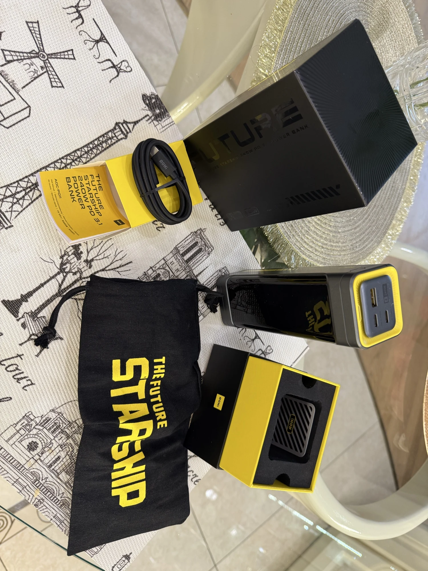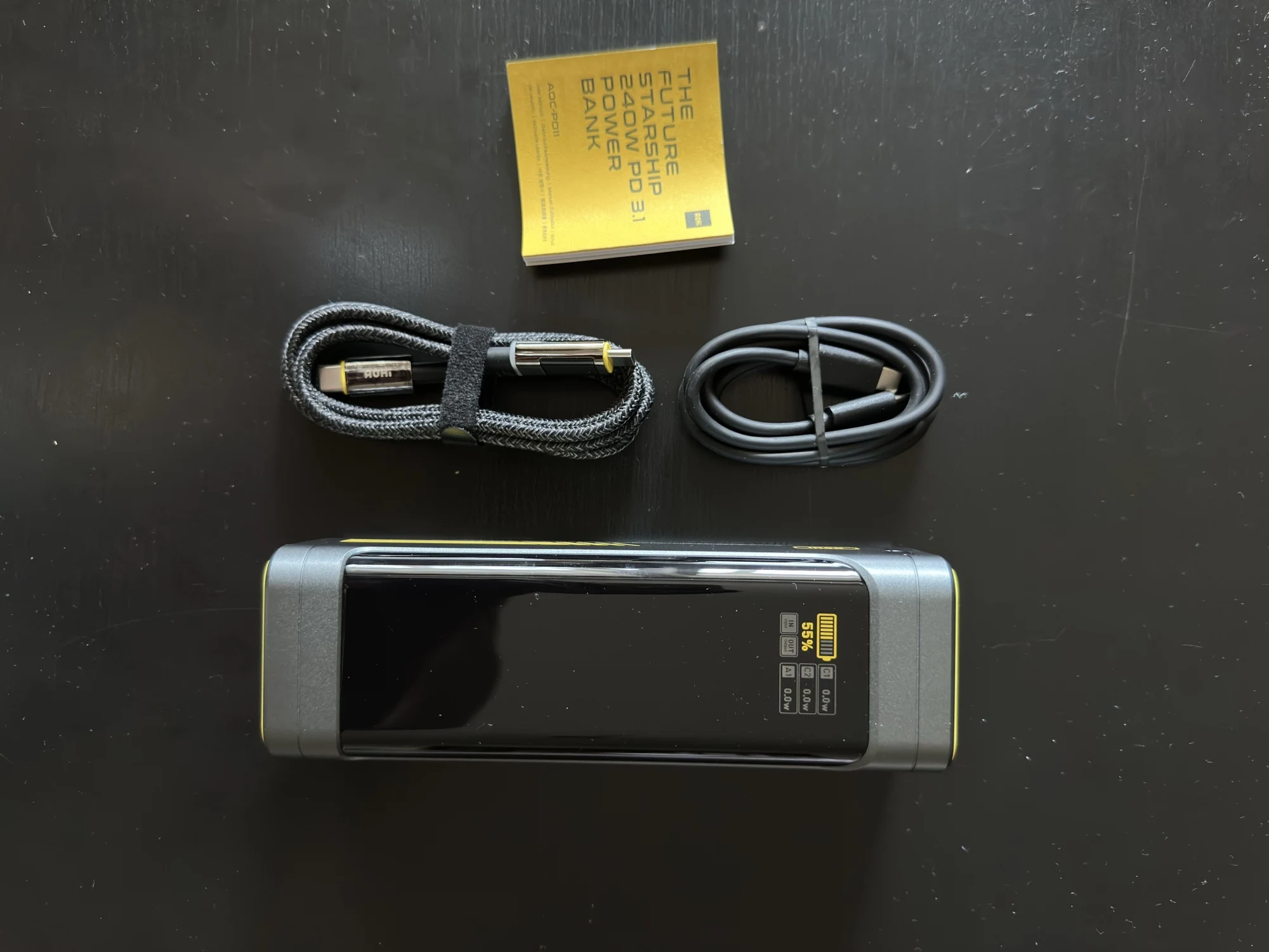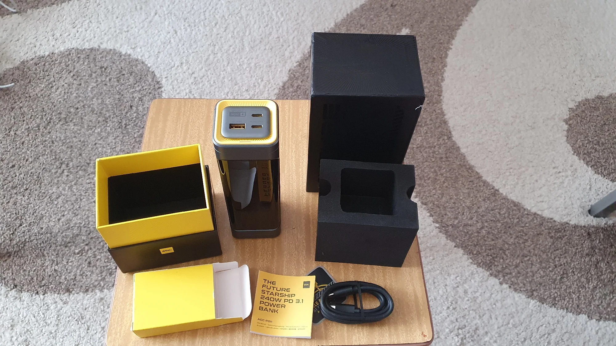 Аккумулятор очень интересный. Заявленная мощность - просто феноменальная. Разумеется он не сможет ее долго выдавать из за перегрева. Может 240 ватт минут 5-10 поработает. Коробка это отдельный момент. Очень толстый, качественный, плотный светлый картон. Пожалуй никогда в жизни я не видел такой качественной упаковки Pawerbank как у этого. Даже именитые бренды на коробке всегда экономят и делают дешман, а тут прям надежно. В комплекте мешочек для Powerbank и черный провод (в днище коробки). Я думал будет желтый фирменный провод AOHI, но там черный дешевый и немного расстроен. Но это мелочи. Этот Powerbank лучше всяких дорогих брендов, которые стоят в 1.5-2 раза дороже. Дизайн, сборка на высоте. С протоколами быстрой зарядки есть вопросы. Ноут отказался заряжать вообще. Возможно дело в ноутбуке. Все остальное заряжает быстро и без проблем. Powerbank поддерживает сквозную зарядку. Можно подсоединить блок из розетки и в сам Powerbank воткнуть телефон и он будет заряжаться и еще заряжать телефон. Зарядку самого Powerbank сразу от двух блоков питания розетки он не поддерживает. Но это редкая функция. Ничего страшного. измеритель ватт - полная чушь. Показатели рисует как попало. Ему верить нельзя. Это сильно расстроило. Но тем не менее устройство вышло очень классным и качественным. В Москву приехало за месяц. Служба доставки - плохо работают.