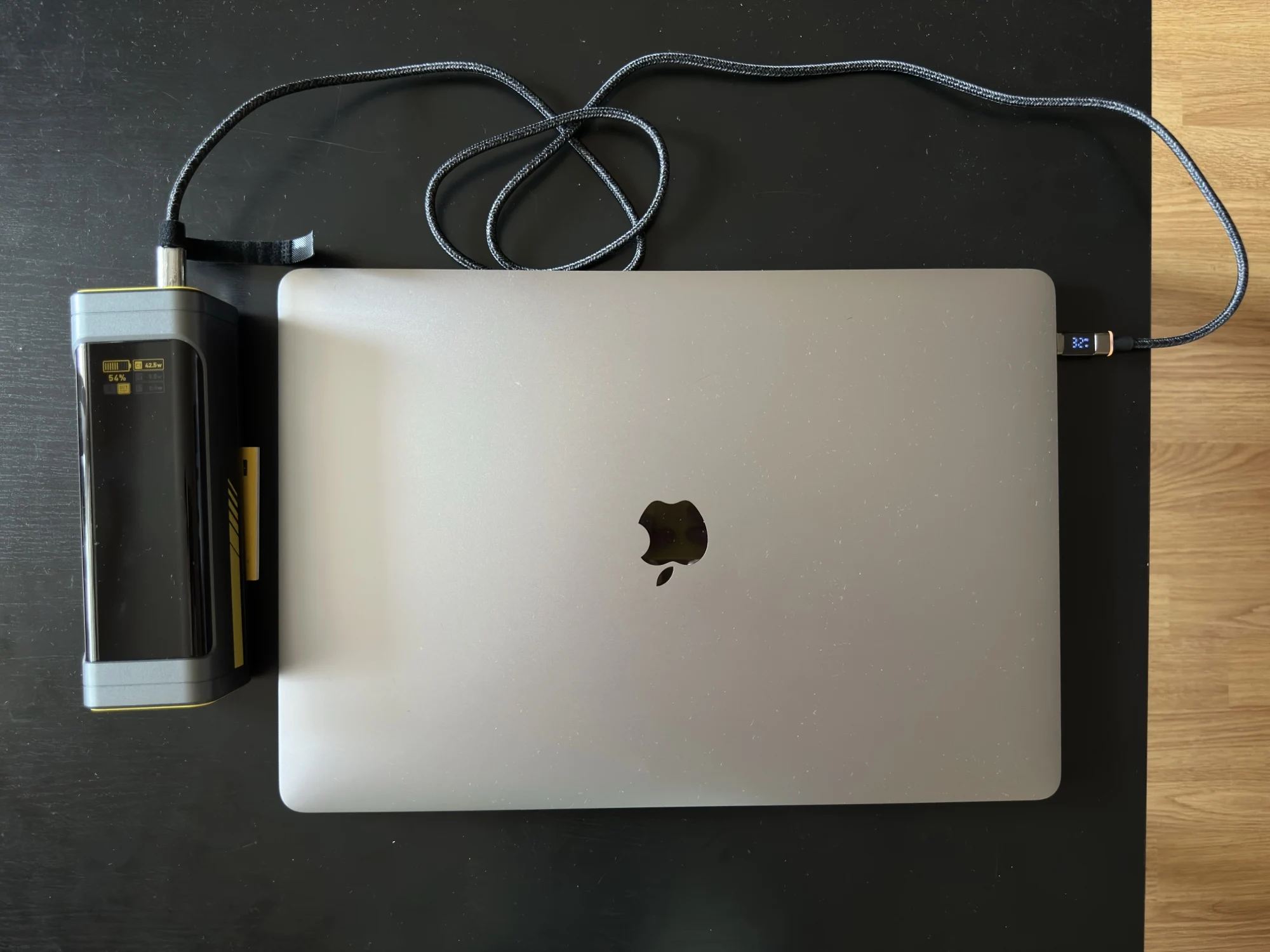 Классный дизайн, мощный, удобный, незаменимый, полезный! в сочетании с оригинальным блоком питания на 140 Вт просто пушка - заряжает быстро! купил по акции дополнительно прислали провод из нейлона и экранчиком мощности. Благодарю продавца!