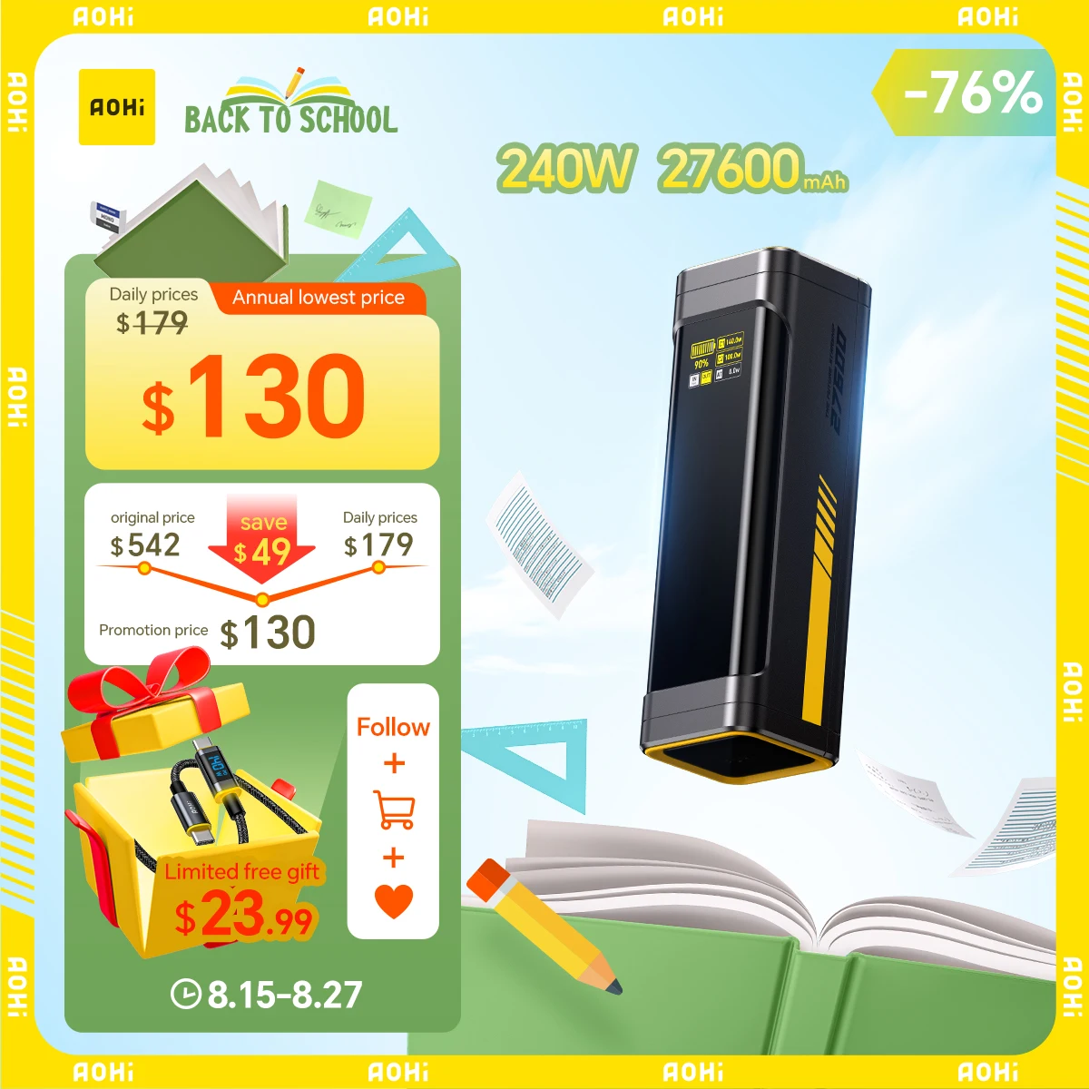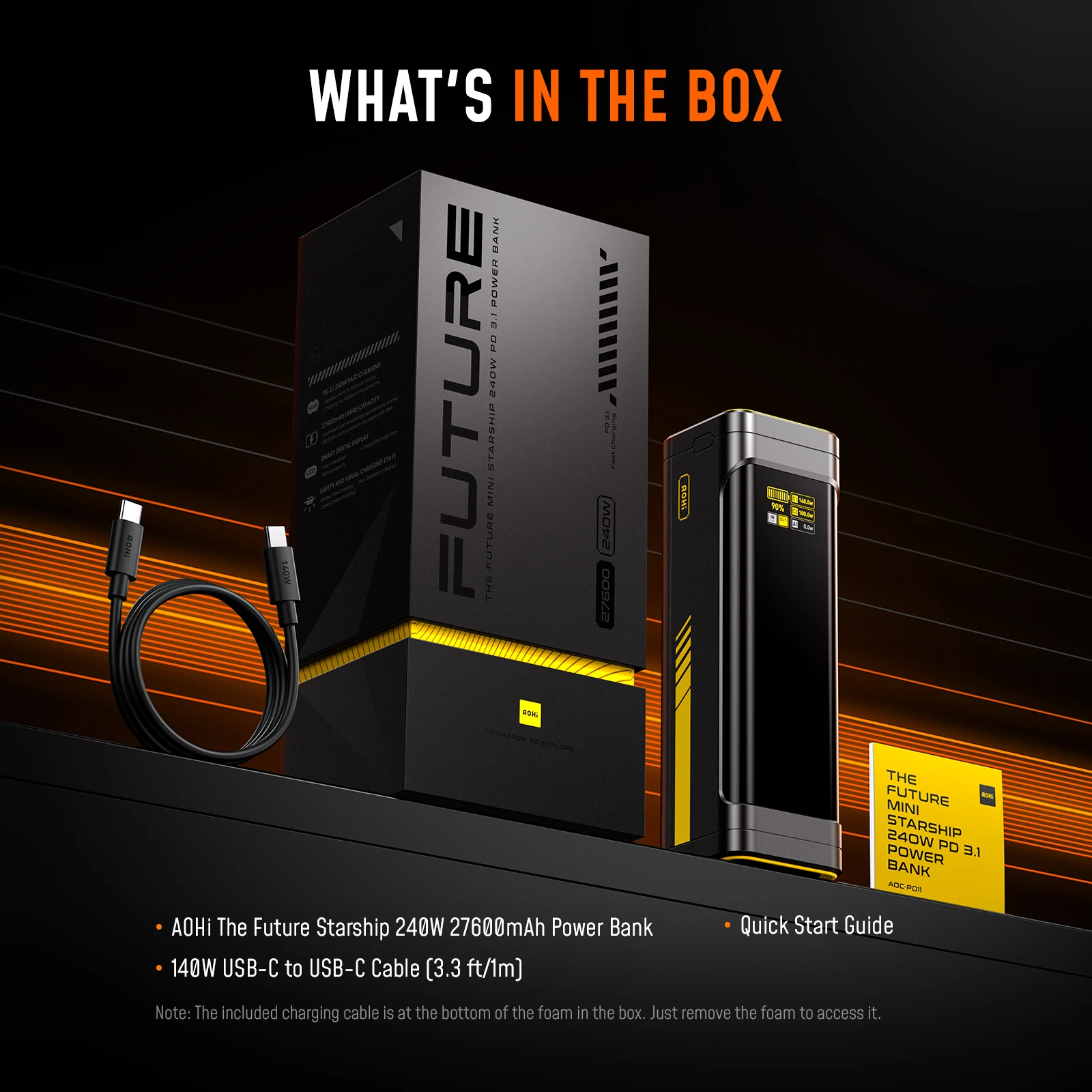AOHI The Future Starship 240 Вт, 27,600 мАч, внешний аккумулятор со светодиодным дисплеем и кабелем C-C длиной 3 фута