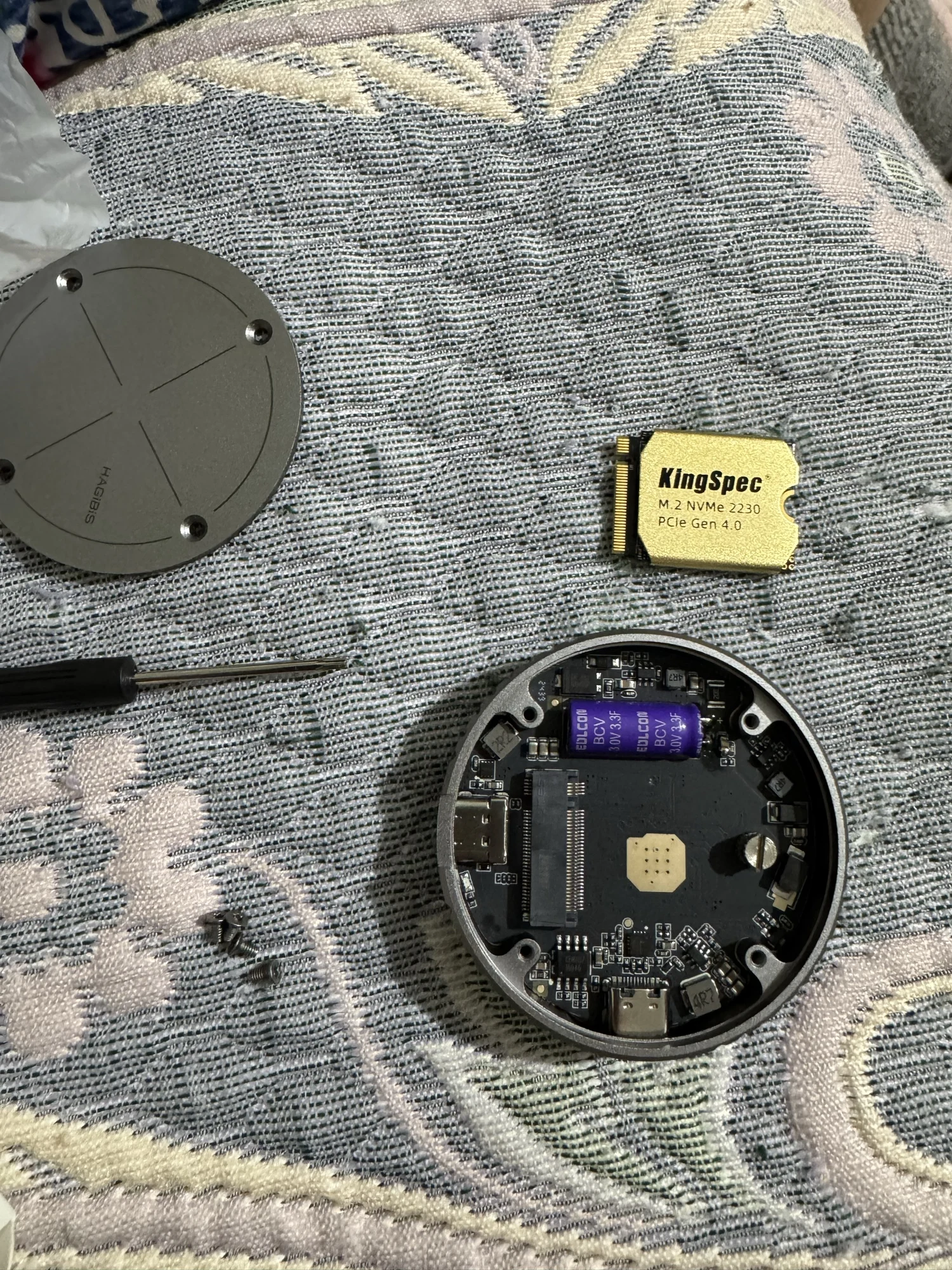 Решил сестре в подарок собрать внешний ssd в этом корпусе, чтобы она могла его крепить к своему 15 Pro Max. Решил и на своём гаджете попробовать, и мне понравилось. На Pixel 9 Pro корпус вполне себе держится, хоть у него и нет этой системы магнитов. Попробовал и на компьютерный корпус прикрепить, но у него стенки слабо магнитятся, хотя тоже можно использовать. Сделал замеры скорости в разъеме Type C, и в принципе стандартные 1000 МБ/сек корпус в бенчмарке выдает. При записи игры на ~100 ГБ скорость держалась 720-730 МБ/сек, нагрев моего SSD был не выше 50 градусов. На телефоне тоже проверил скорости, где-то 450 МБ/сек получилось. В итоге, мне корпус нравится, скорее всего себе такой же возьму.
