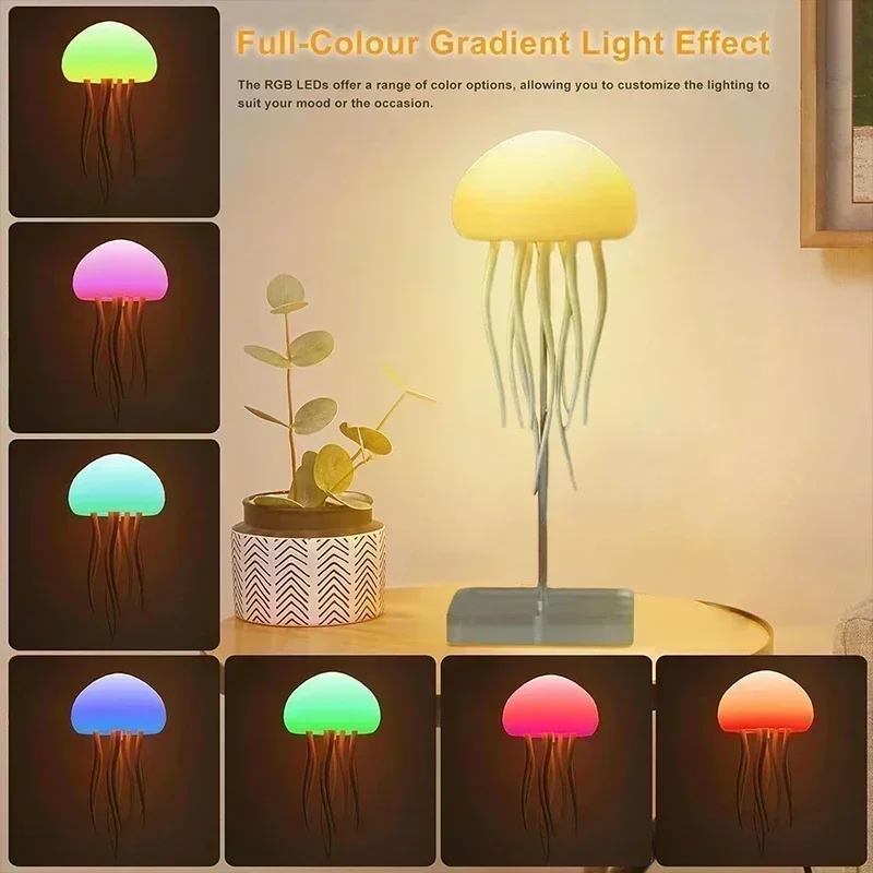 Симпатичная лампа в виде медузы : эта лампа в виде желеобразной рыбки приносит спокойствие океана в ваш дом благодаря реалистичному плавательному движению и полноцветным градиентным световым эффектам автоматического езды на велосипеде, создавая спокойную подводную атмосферу в любой комнате.