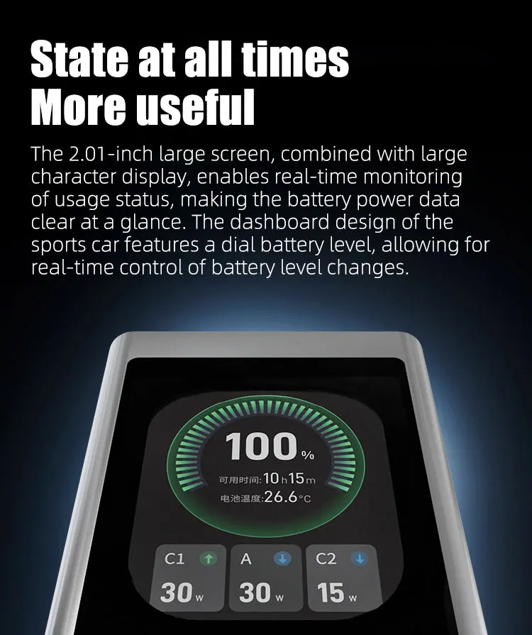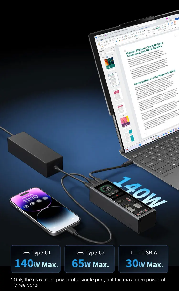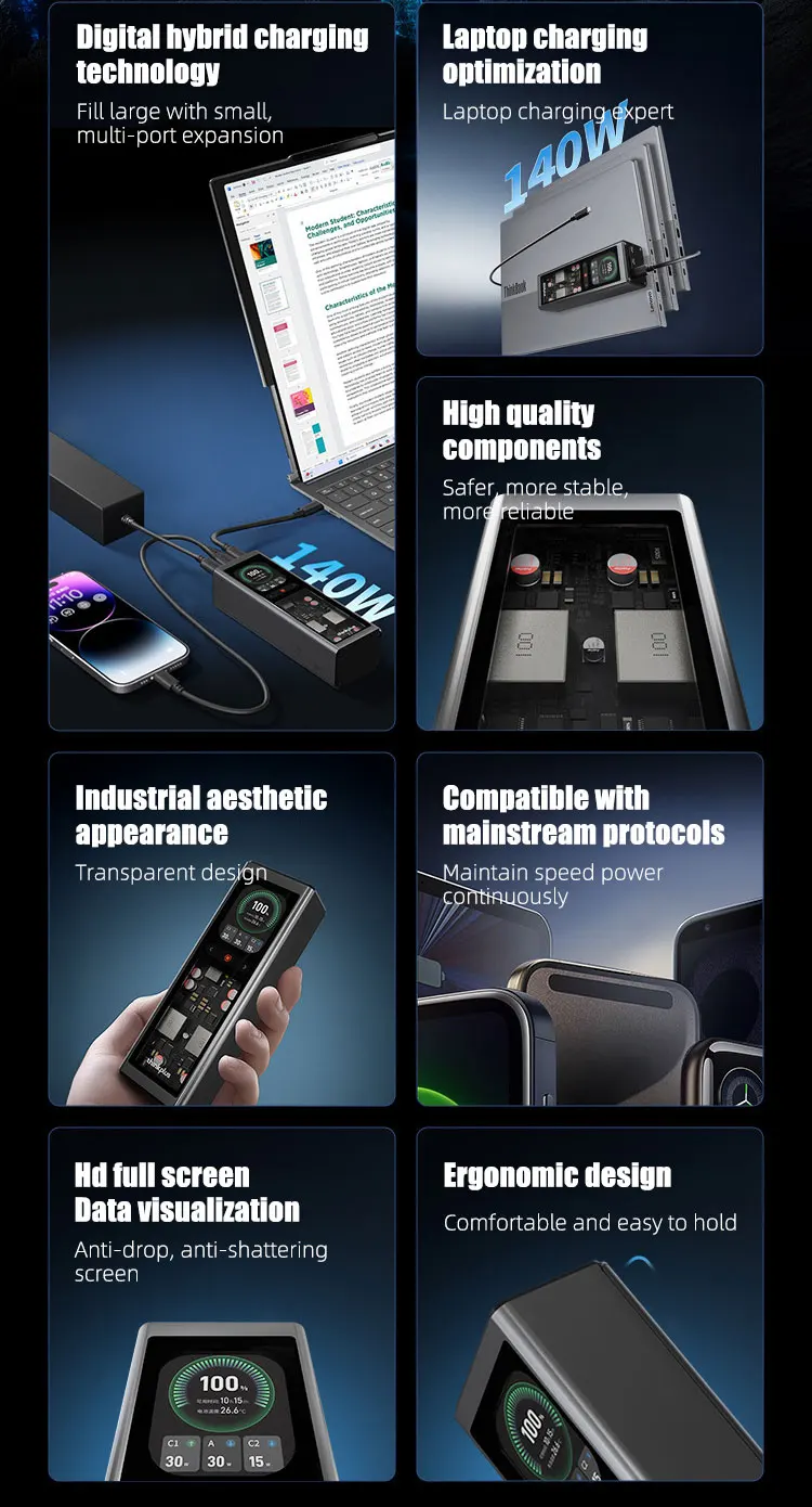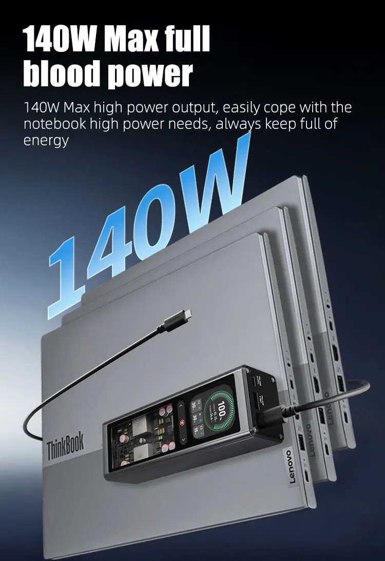 Продукт мощностью 140 Вт составляет 20 В7 А, а не PD3.1 28 В 5 А.Применимые модели описаны на странице сведений.Оснащен 2,1-дюймовым цветным TFT-дисплеем с портом 2 Type-C и портом USB-A, совместимым с PD100W, PPS moto QC и другими протоколами быстрой зарядки.Обладая емкостью 20000 мАч, его можно использовать для транспортировки, например, самолетов, метро и т. д.Он очень портативен с точки зрения веса и размера.
