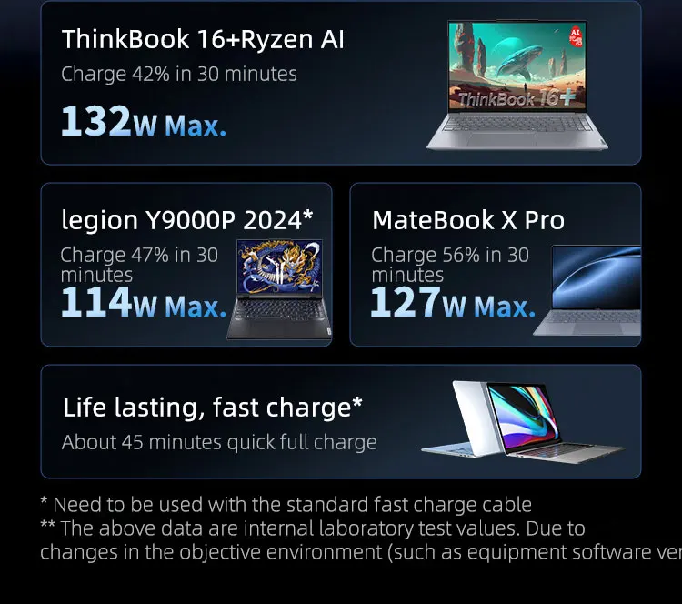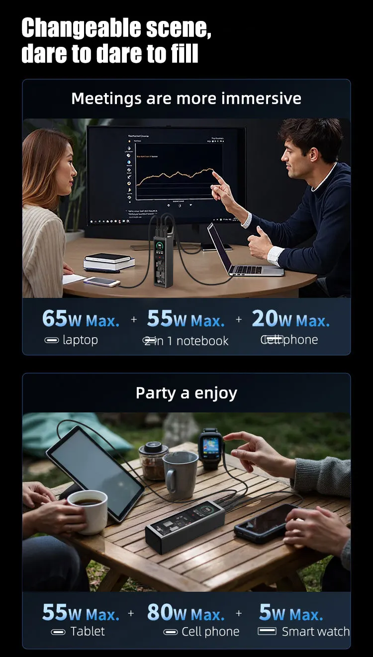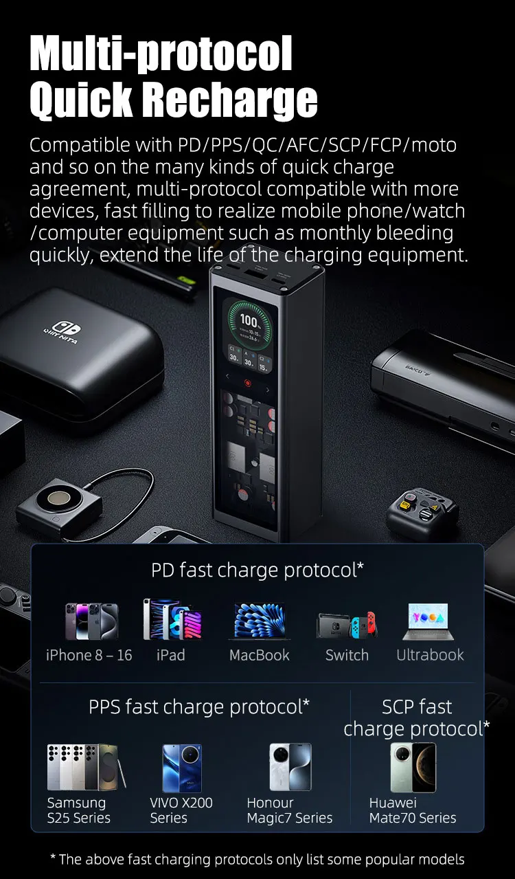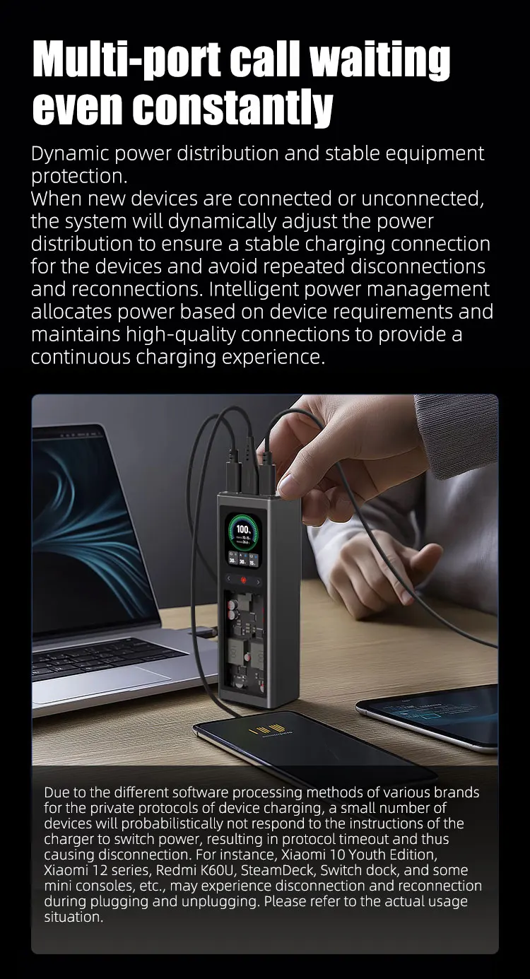 Продукт мощностью 140 Вт составляет 20 В7 А, а не PD3.1 28 В 5 А.Применимые модели описаны на странице сведений.Оснащен 2,1-дюймовым цветным TFT-дисплеем с портом 2 Type-C и портом USB-A, совместимым с PD100W, PPS moto QC и другими протоколами быстрой зарядки.Обладая емкостью 20000 мАч, его можно использовать для транспортировки, например, самолетов, метро и т. д.Он очень портативен с точки зрения веса и размера.