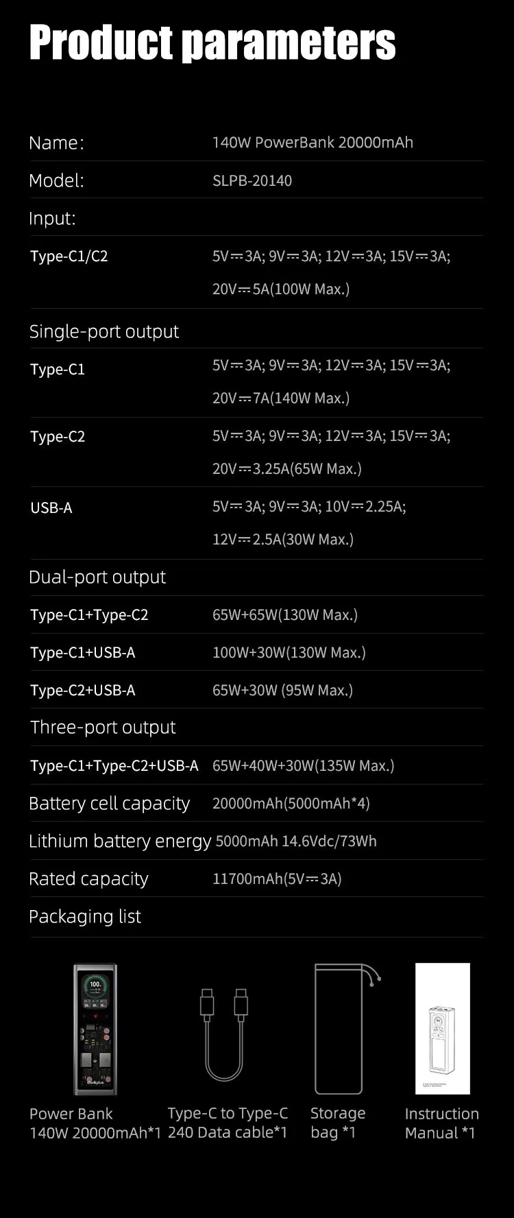 - power:140W/20V7A