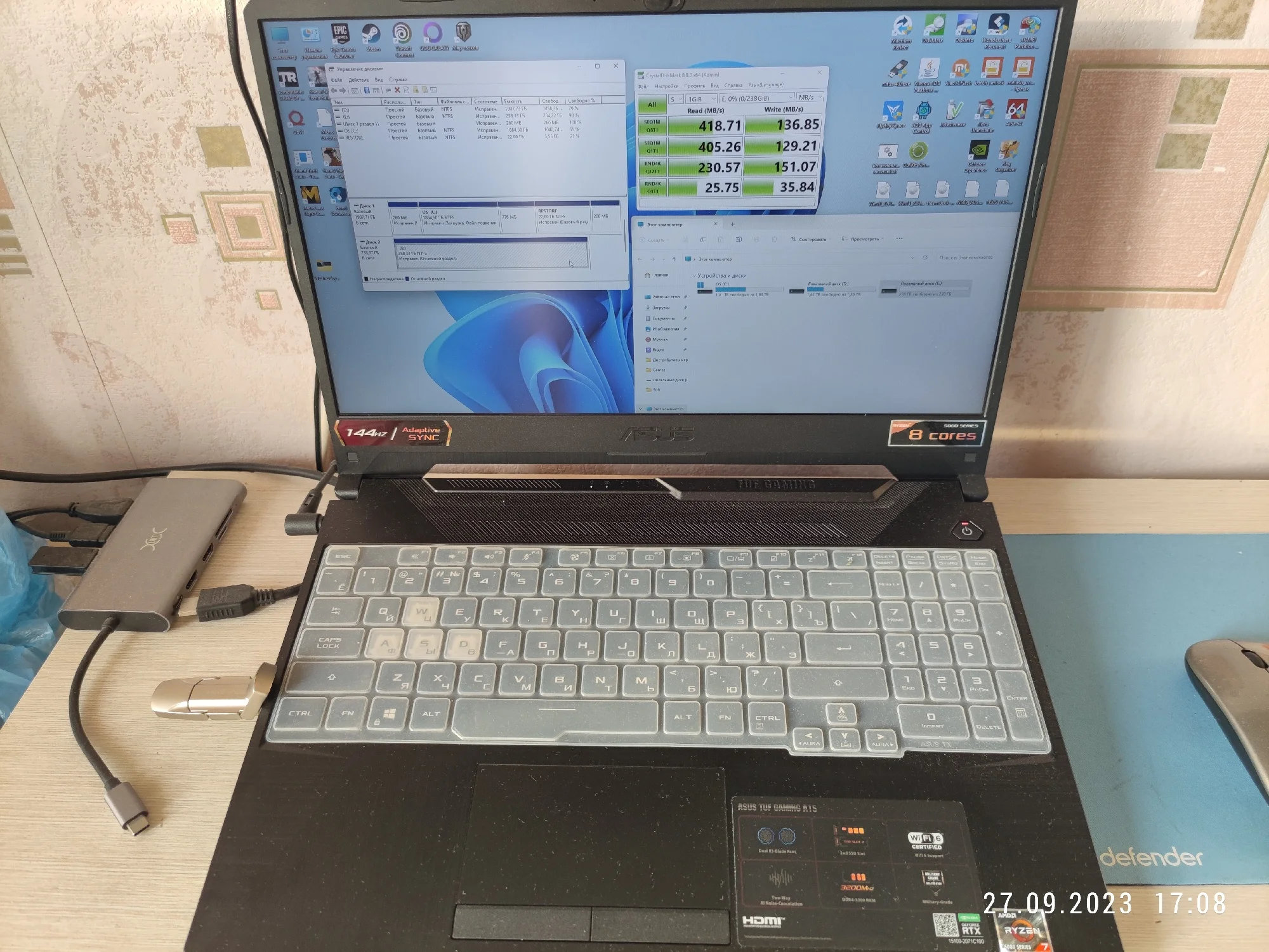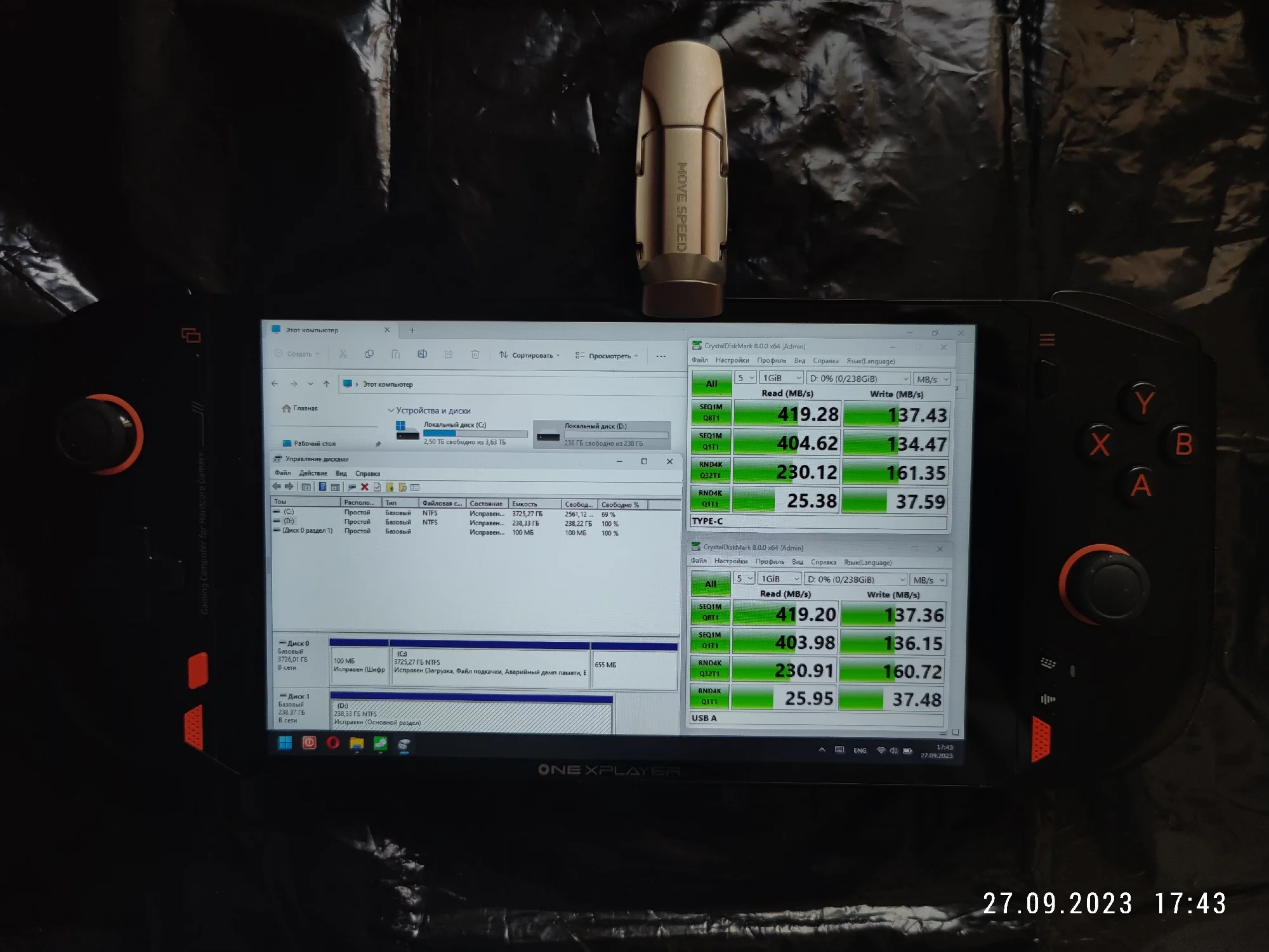 враньё со скоростями, максимум запись 136 (хотя разъём 100% поддерживает 3.2 и внешние ссд чтение 980, запись 960), все тесты переделал что советовал продавец, на разных устройствах , замеры как под копирку один в один, и вот если вам попадётся такой неудачный экспонат, вам не помогут тут как это заверяют, блогерам просто меняют без обратной отправки даже (про ссд) а мне 4 дня мозги компансировали, надоело, хотите лотерею покупайте, я точно больше не куплю тутKonstantin L. 29 сентября 2023