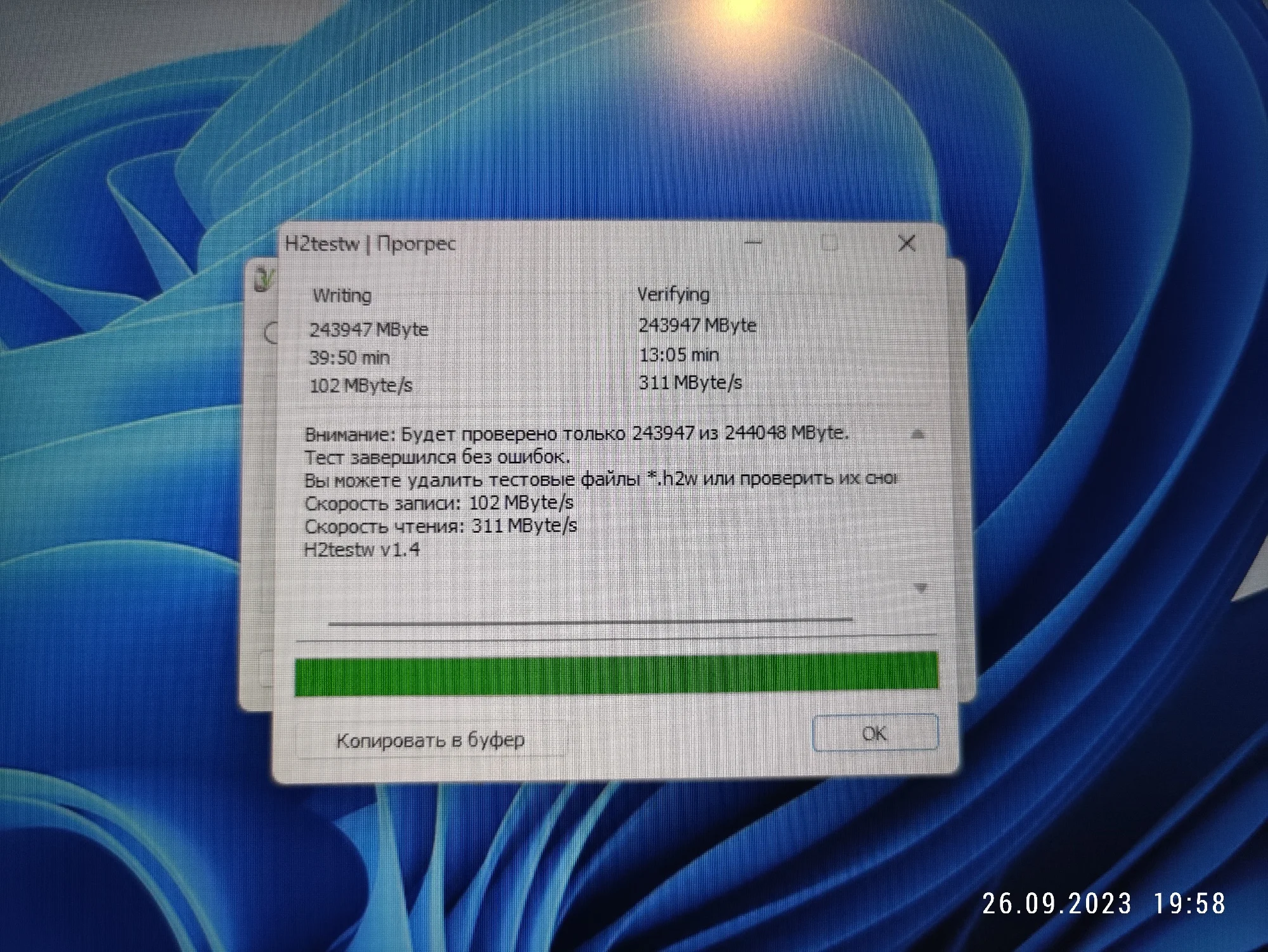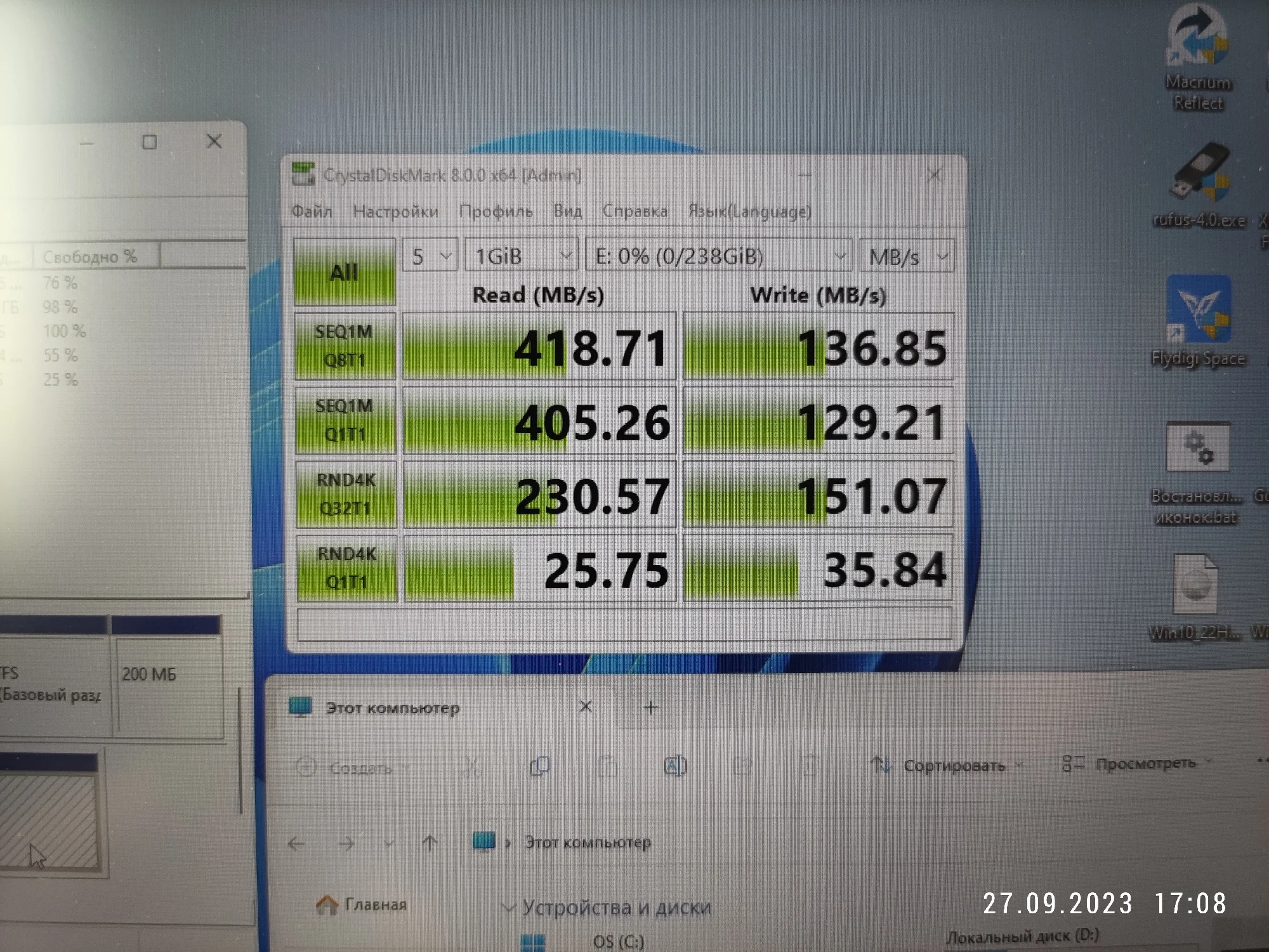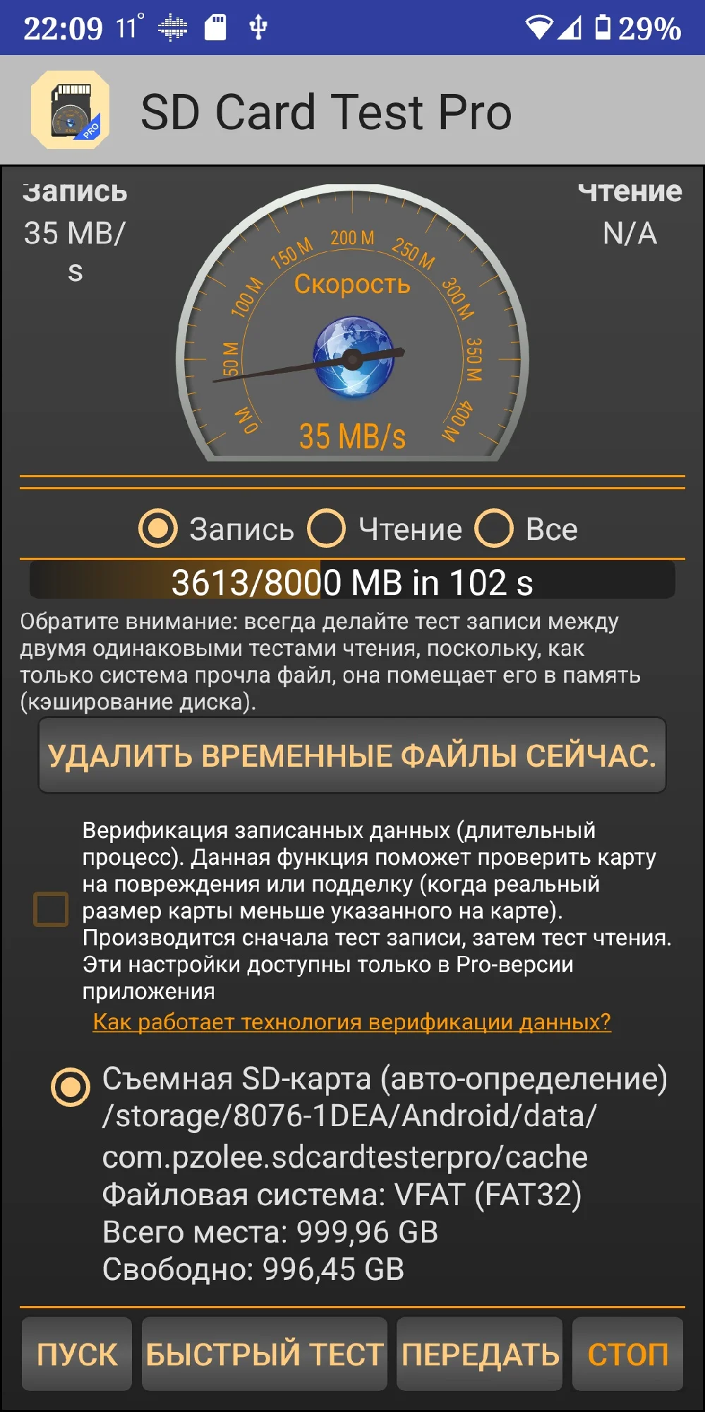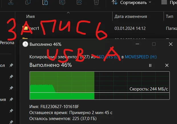 Скорость записи:400-450 МБ/с Макс
