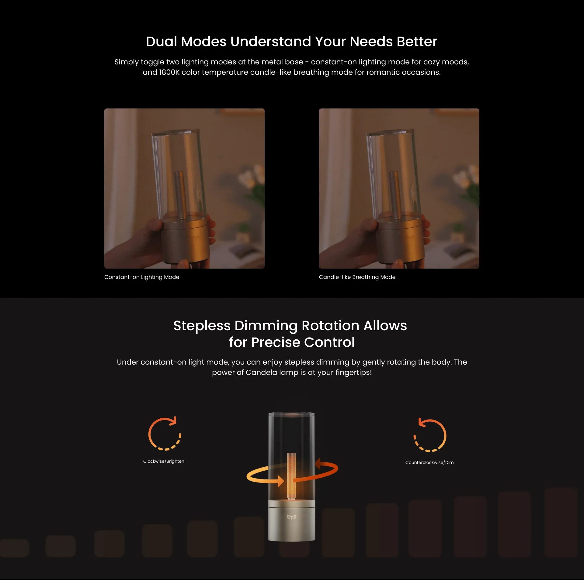 Перезаряжаемый светильник в форме свечи: лампа-тумбочка Yeelight-это перезаряжаемый светильник в форме свечи, создающая теплую и уютную атмосферу без необходимости постоянного питания.