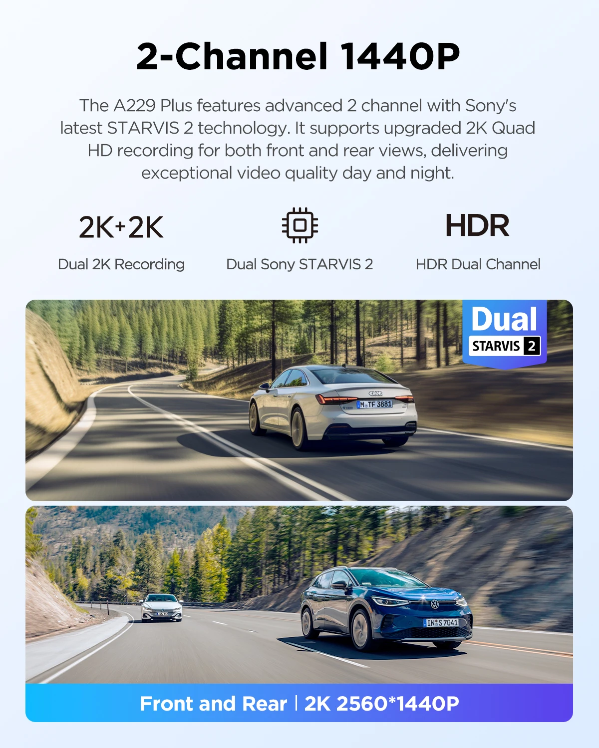 2-канальная запись 1440P Видеорегистратор A229 Plus предлагает обновленные возможности записи спереди и сзади 2K + 2K с разрешением 1440P для эффектов записи высокой четкости.Эта инновационная видеорегистратор обеспечивает исключительную четкость и насыщенность цвета, обеспечивая истинное воспроизведение деталей 1440P и повышенную точность цветопередачи.Фронтальная камера имеет высокую частоту кадров до 60 кадров в секунду, что обеспечивает кристально чистое изображение, точное цветопередачу и идеально сбалансированные уровни экспозиции.