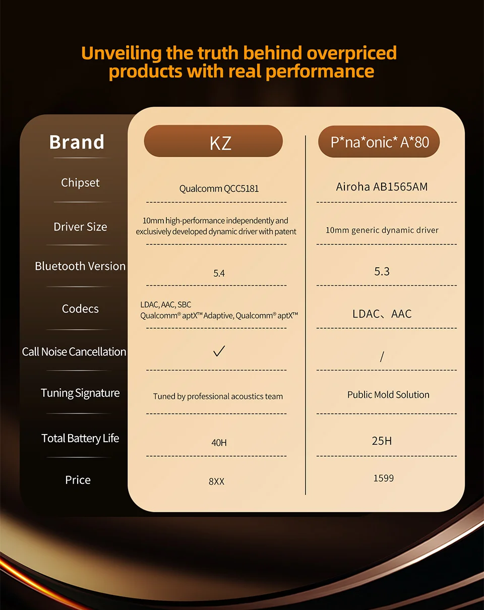 Из плюсов: 1-оооооочень хорошее качество и мощность. У меня было несколько пар наушников, от iqoo, oneplus и redmi, в ценовом диапазоне от 3 до 7 тысяч рублей. НО ни одно из них не сравнятся по качеству и мощности с этими KZ. 2- у этих наушников хорошая эргономика, они кажутся огромными, нот сидят в ушах как влитые. 3- кодек LDAC и Bluetooth 5.4 делают их ещё лучше, у меня связь на улице в пределах 15 метров от телефона работала стабильно, так же в хрущевке во всех частях квартиры без перебоев. Управление сенсорное, есть режимы прозрачности и шумоподавления, но они "средненькие", я их включил, потестил, но пользоваться не собираюсь больше. Есть приложение, qr-код на которое есть только в мануале, но мой realme gt6t не хочет его качать, пишет все время, что сайт не отвечает. Минусы: 1-кроме наушников в кейсе, мануала по управлению и двух доп.пар амбушюр больше нет ничего. 2-качество и размеры кейса жирный минус. Кейс громоздкой, с окошком из тонкого прозрачного пластика. Крышка кейса люфтит, а качество материалов самого кейса очень дешёвое. Сами же наушниуи собраны достойно, не тяжелые. Заниматься в них спортом, будет не очень удобно, в особенности из за кейса. Они расчитаны скорее для прослушивания в спокойном положении. Звук: он массивный, детальный, бассы не перебивают другие частоты и звуки, запаса громкости прям с избытком(мне не хватало этого в других tws ках) Вытягивает 24 bit Flac неплохо так. Итог: Наушники за 2,5к рублей, уделывают по качеству звука 90% нынешних tws наушников в целом. p. s. у меня Android и чип как и в наушниках от Qualcomm, если у вас "apple", то берите на своё усмотрение, ldac у вам нет, поэтому как они будут работать на кодаках AAC и SBC я не знаю. Отзыв как и фото дополнительные ещё чуть позже прекриплю. ВСЕМ МИРА! 🙏