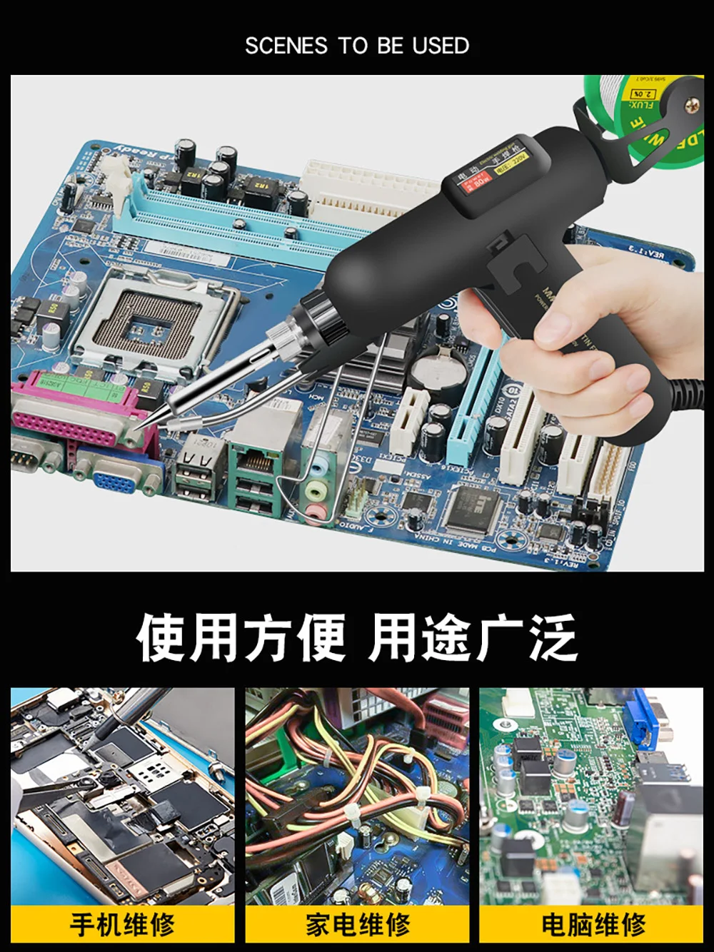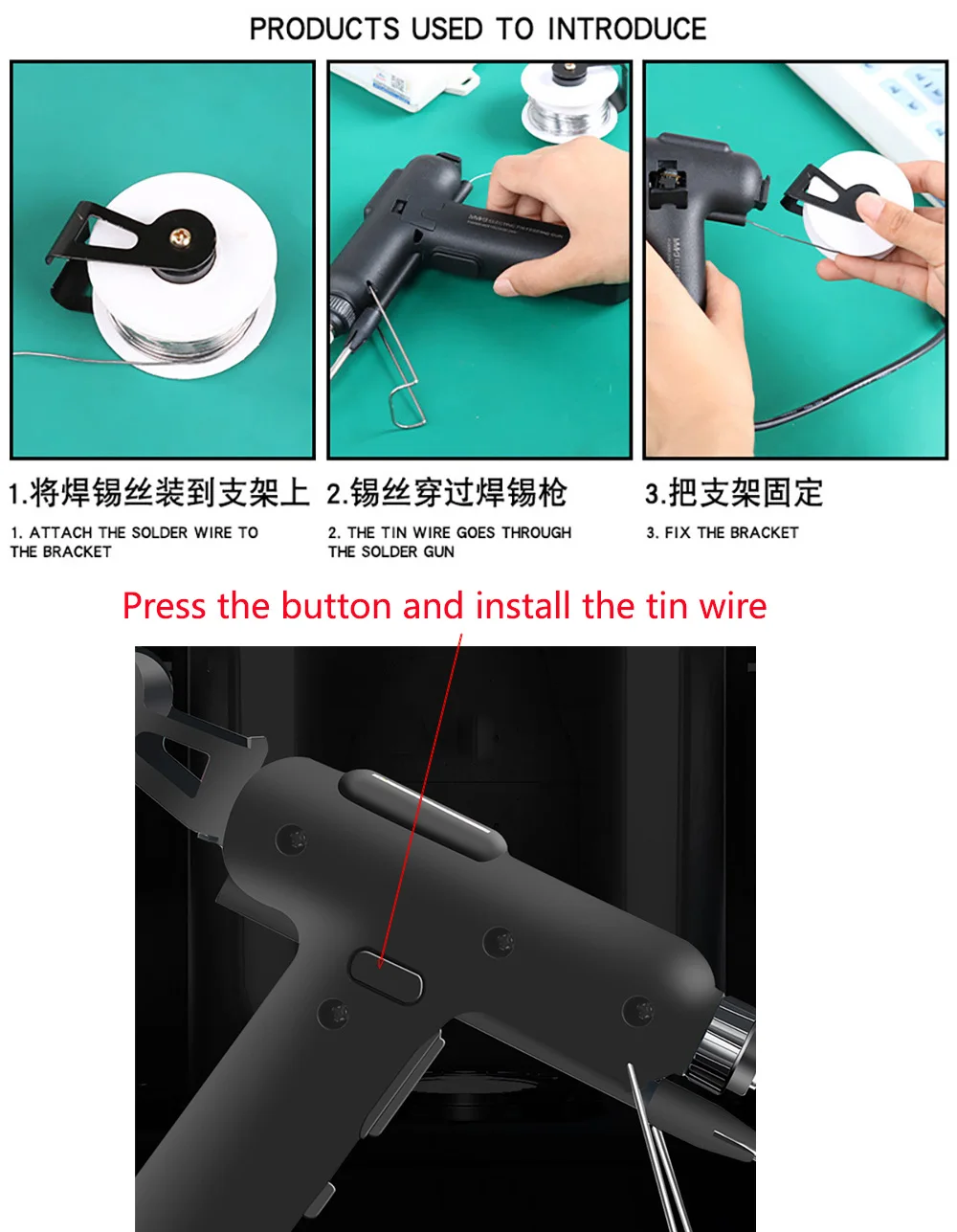 Применимый размер оловянной проволоки: 0,5 ~ 1,2 мм.
