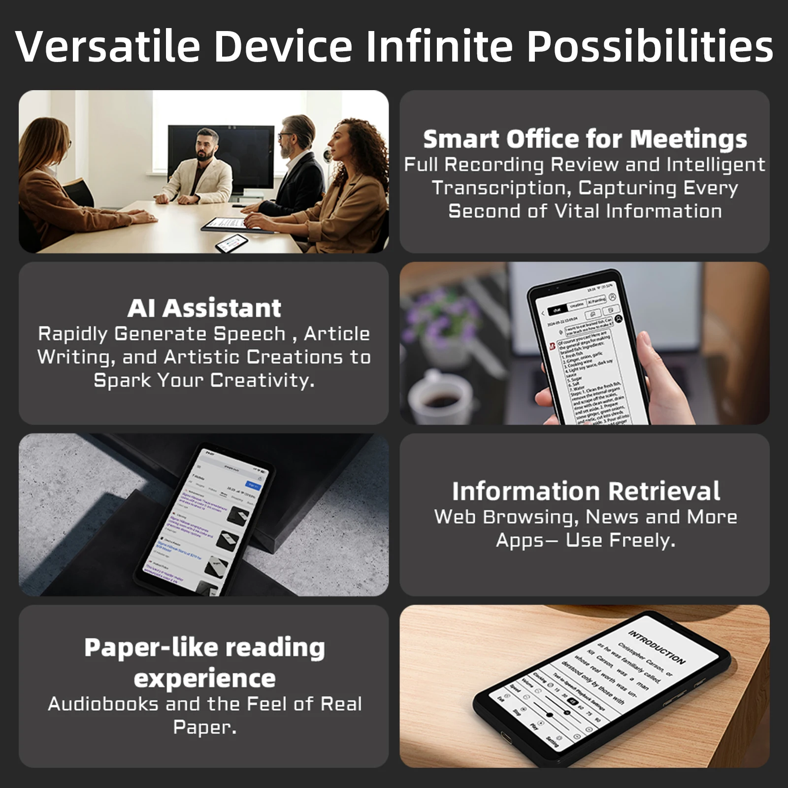 3.Раскройте силу умной работы с Hibreak, включая бесплатный голос к тексту, OCR, помощник AI и открытую систему Android, которая легко адаптируется к любому сценарию.