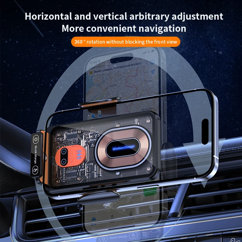 Упростите движение Сочетает в себе беспроводное зарядное устройство и автомобильное крепление для телефона, обеспечивает быструю зарядку и избавляет вас от необходимости возиться с кабелями во время вождения.А 360°Вращающаяся сфера поможет вам получить максимально удобную и безопасную GPS-навигацию и угол обзора без напряжения шеи или глаз во время зарядки телефона.