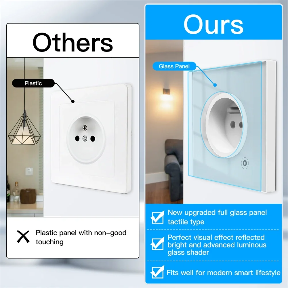 ZigBee Smart Wall Socket Glass Panel Outlet Power Monitor tuya Wireless Control...