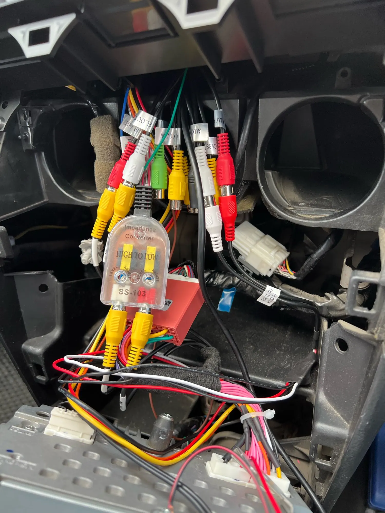 - Audio/Video inputs:AUX-L/R/V Back camera