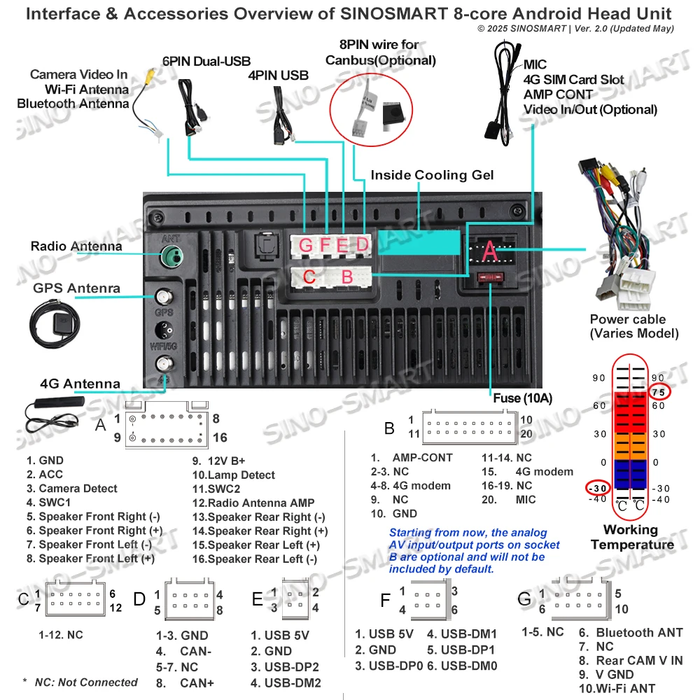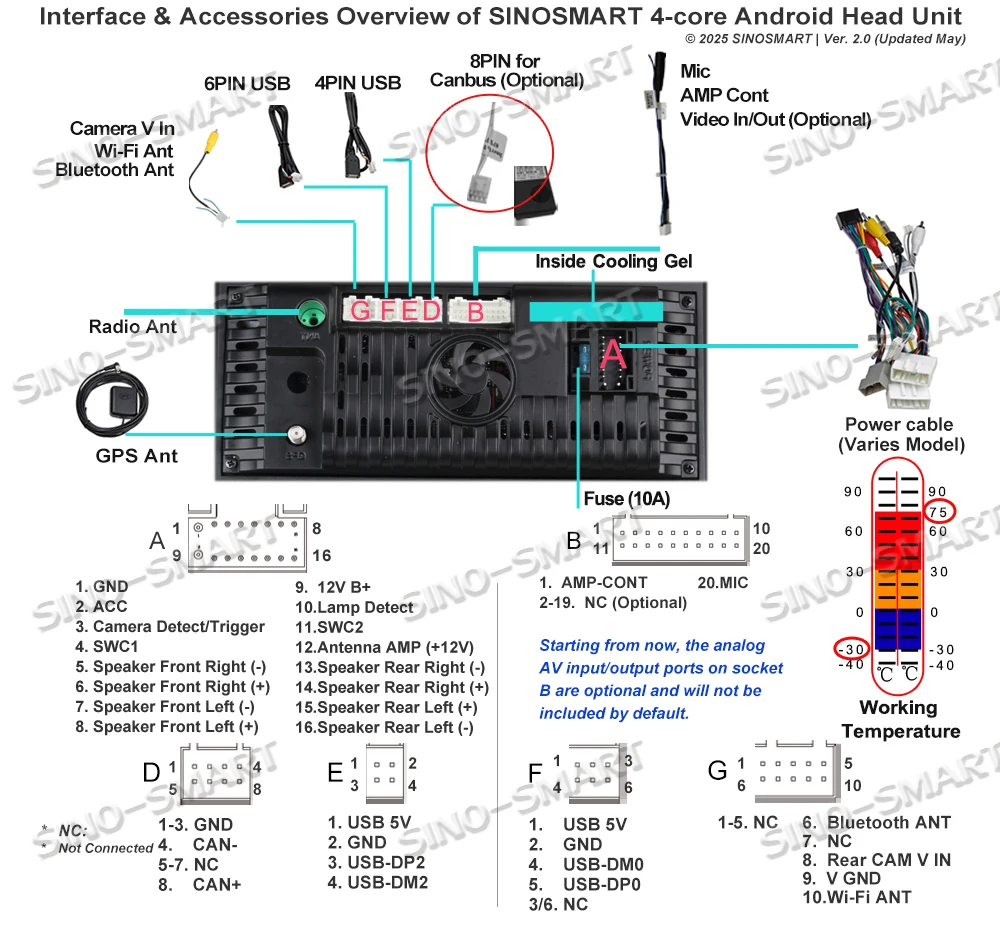 * Начиная с этого момента, аналоговые AV-порты входа/вывода на розетке B являются дополнительными и не будут включены по умолчанию, поскольку большинство пользователей не требуют этих соединений.Удаление неиспользованных кабелей помогает упростить установку и избежать ненужной проводки.Однако сам головной блок по-прежнему поддерживает функцию ввода и вывода видео.Если вам нужны эти дополнительные AV-кабели, пожалуйста, оставьте сообщение при размещении заказа.